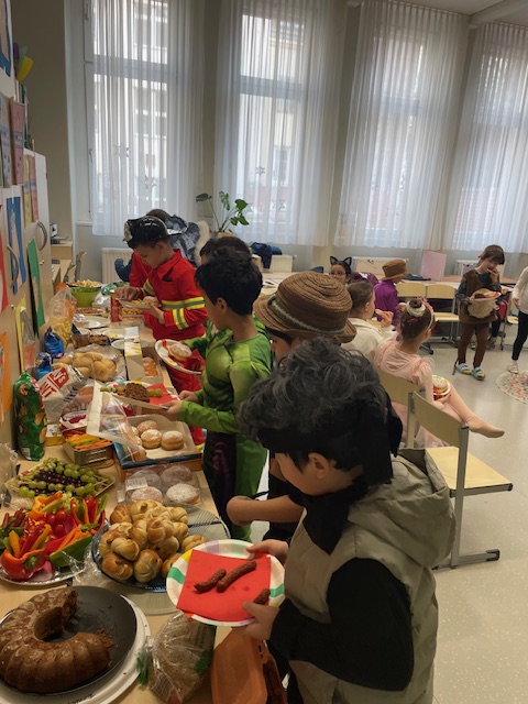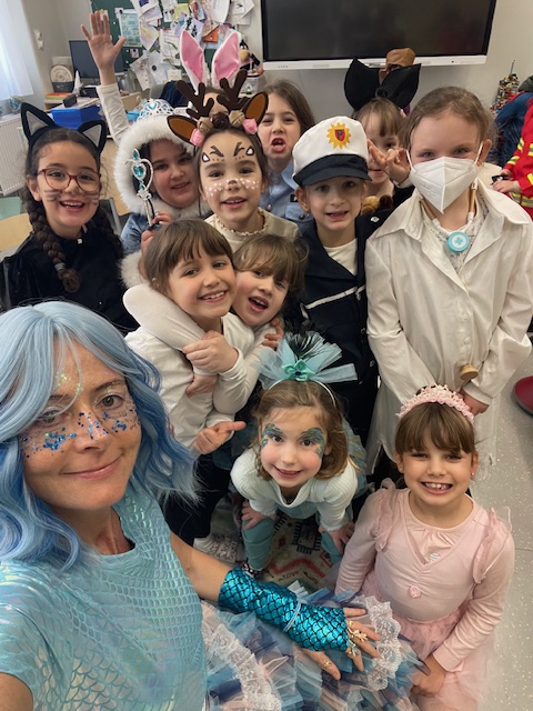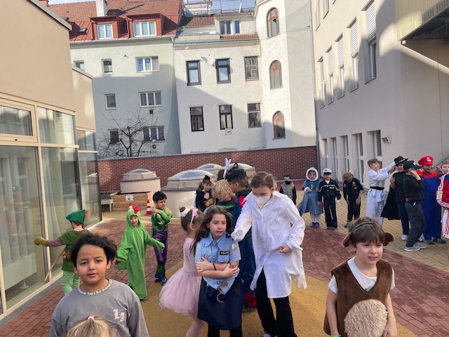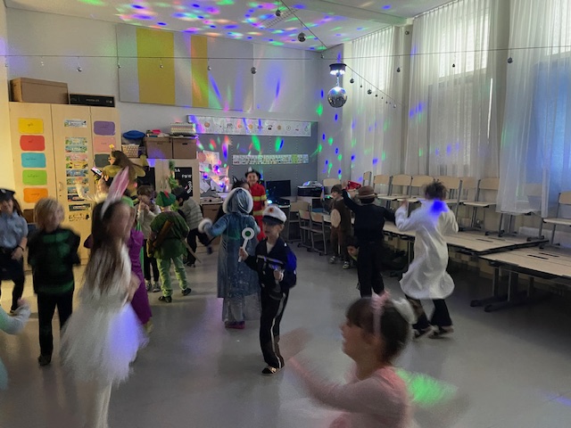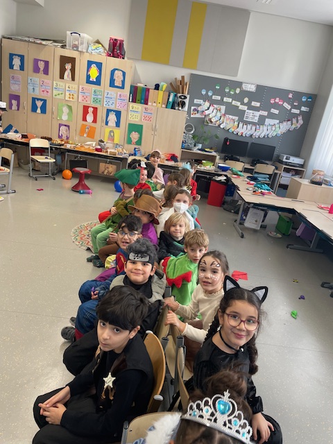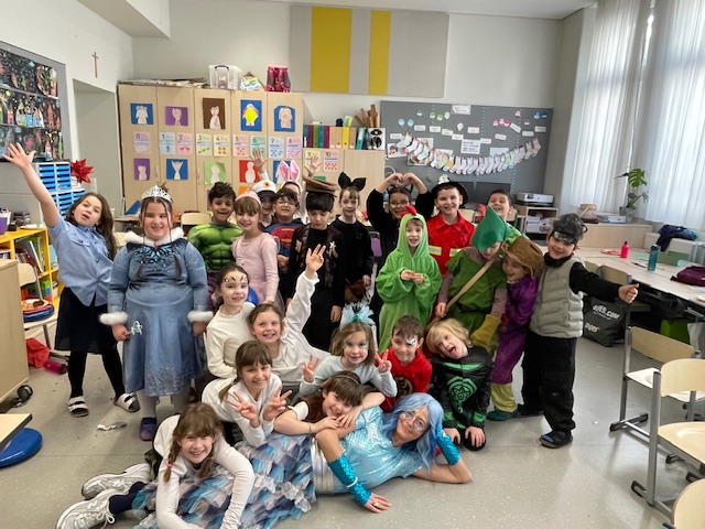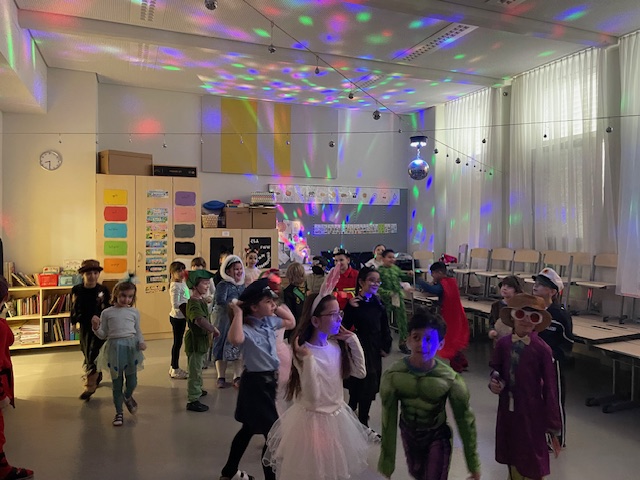 Diese Woche feierten wir unser erstes gemeinsames Faschingsfest und es war ein voller Erfolg. Schon am Morgen staunten wir über die vielen kreativen Verkleidungen. Prinzessinnen, Polizisten, Tiere, Superhelden und viele weitere fantasievolle Figuren zogen in die Klasse ein. Die Kinder präsentierten ihre Kostüme mit großem Stolz.