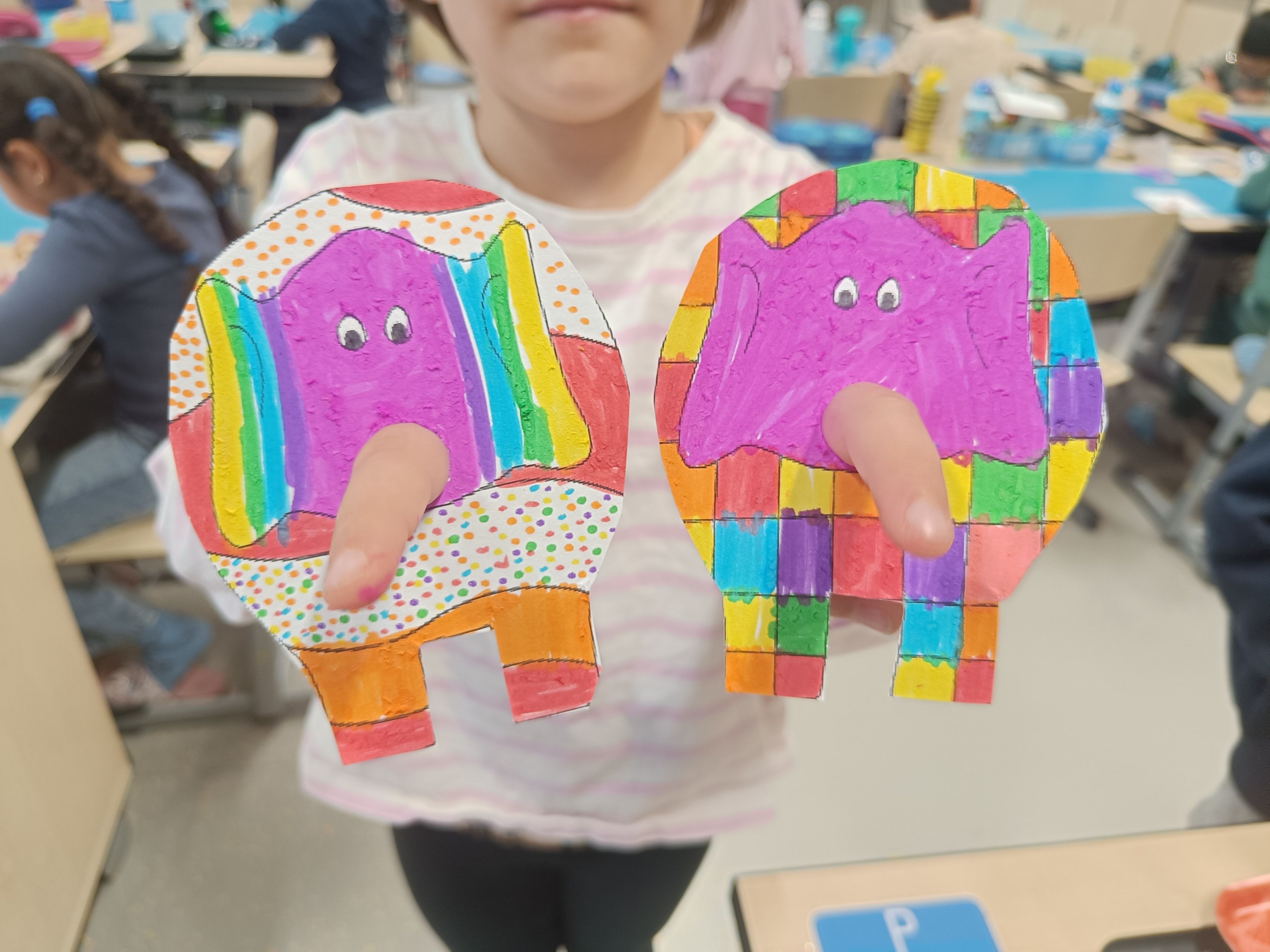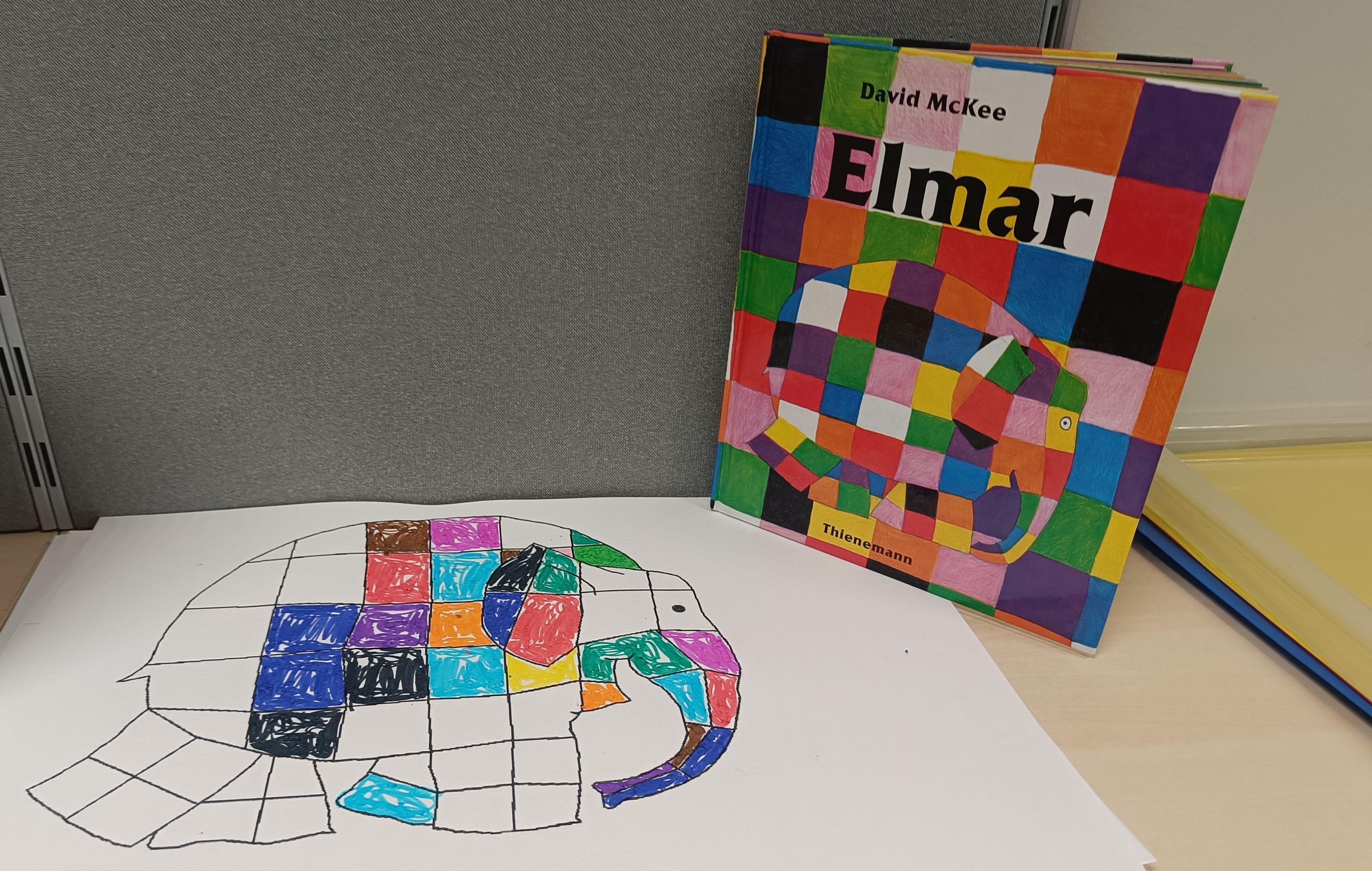Als das E an der Reihe war, haben wir Elmar kennengelernt. Elmar ist kein Elefant wie jeder andere. Er ist buntkariert und immer zu Streichen aufgelegt. Elmar ist besonders und einmalig, so wie jede/r von uns!