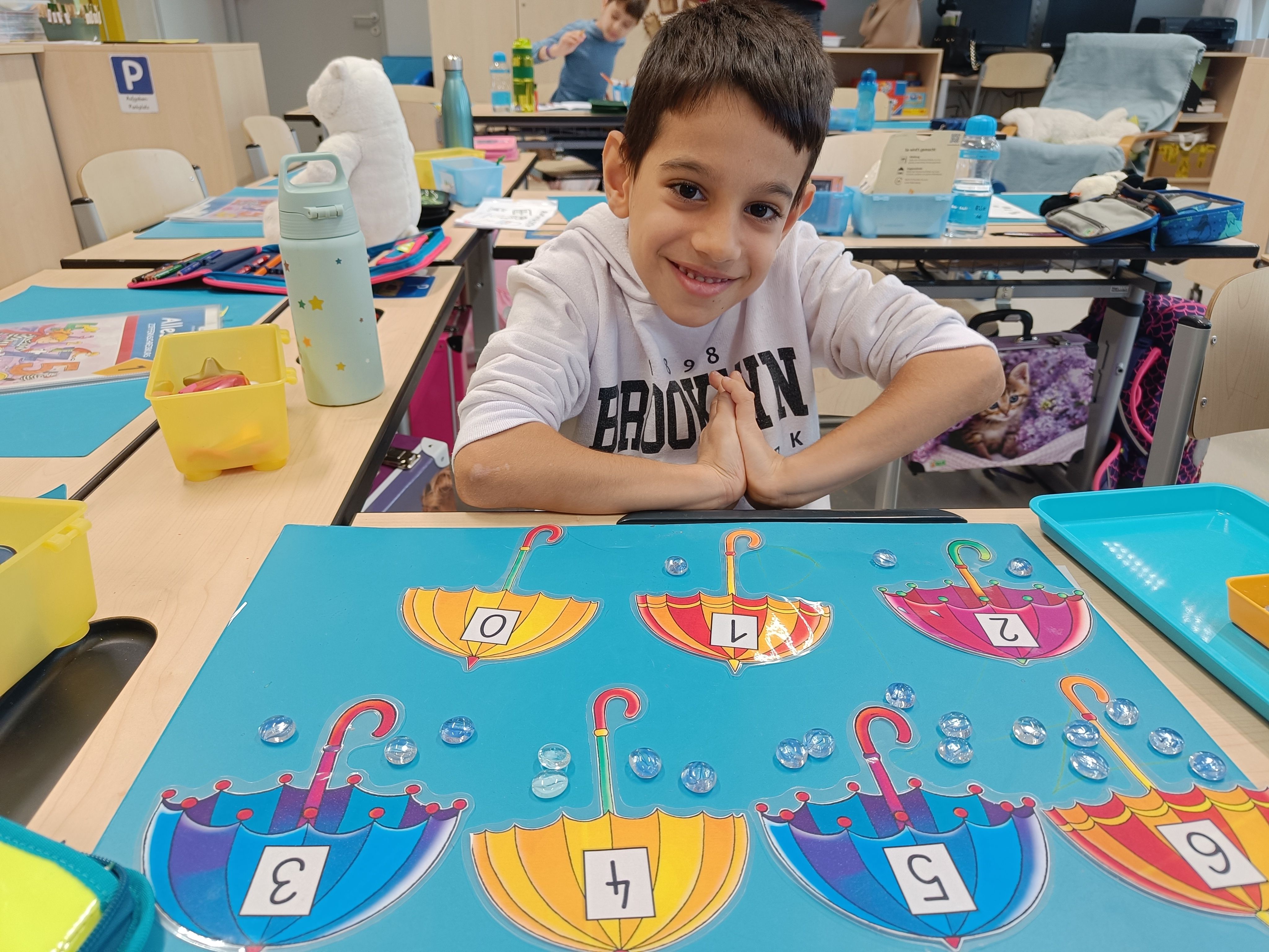 Mathematik macht uns Spaß! Wir erforschen die Zahlen, trainieren ihre Formen, ordnen sie, spielen mit ihnen und zaubern auch mit Würfeln.