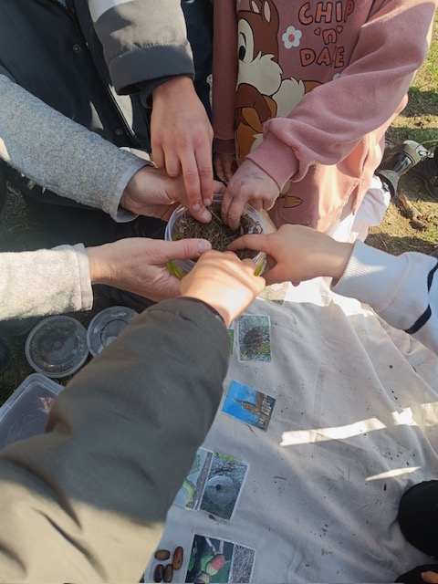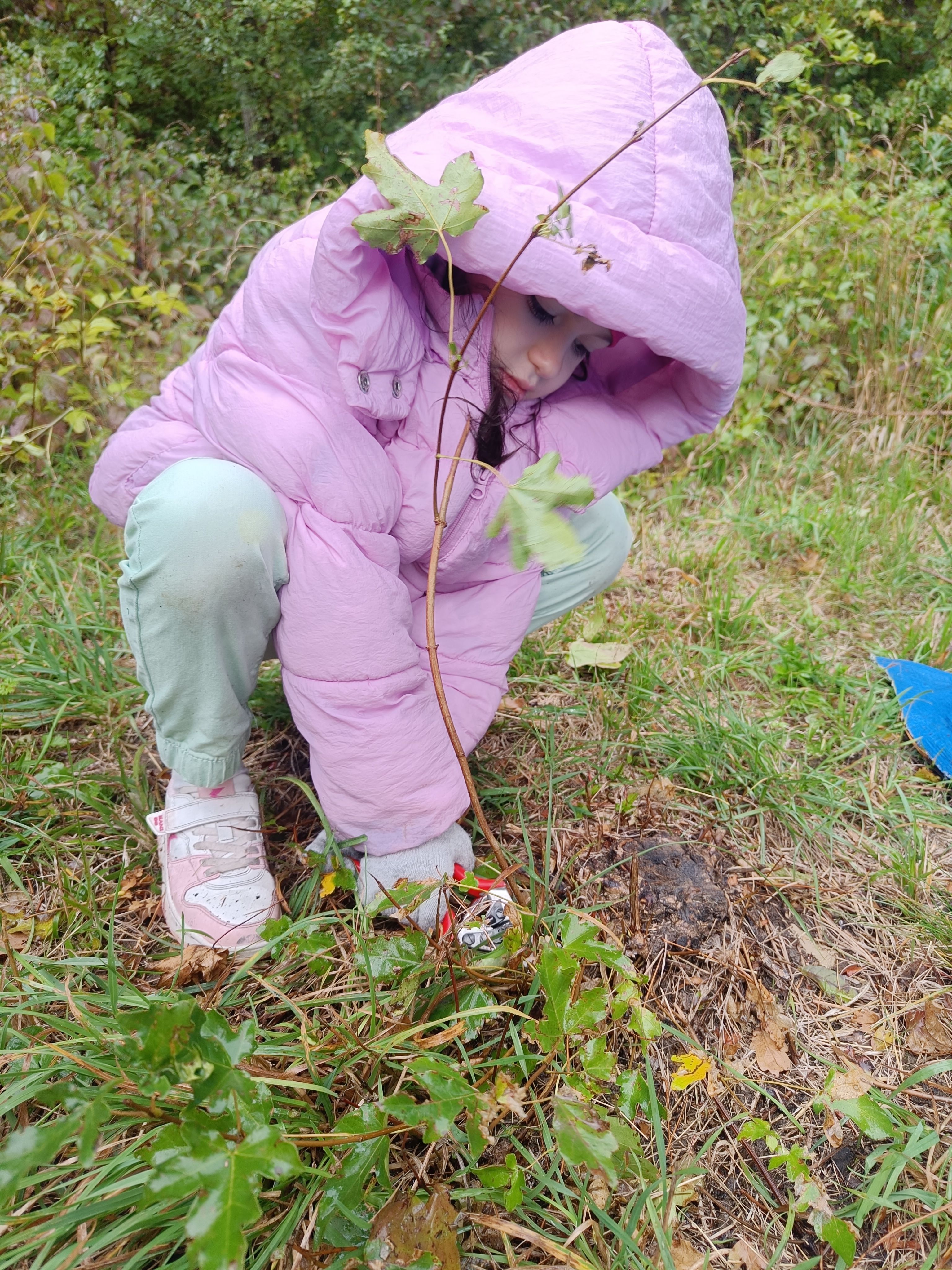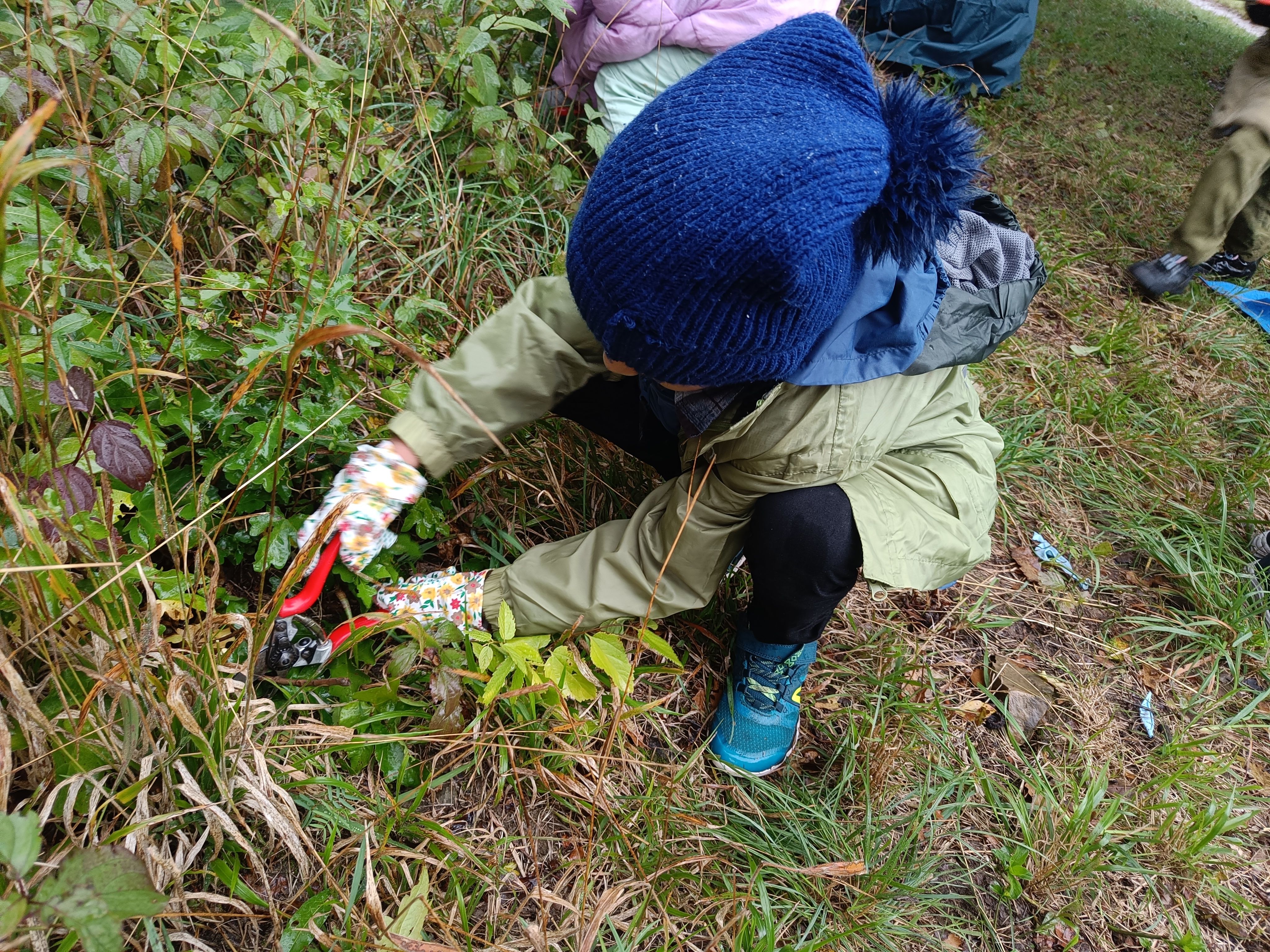 Ausgerüstet mit Arbeitshandschuhen und Gartenscheren sind wir heute mit dem Bus auf den Schafberg gefahren. Dort haben wir der Wiese geholfen eine Wiese zu bleiben. Das Wetter ist nass gewesen, aber wir haben uns nicht aufhalten lassen. Wir haben sämtliche holzige Pflanzen rund um die dort wachsenden Sträucher und Bäume vorsichtig abgeschnitten. Das Holz haben wir auf einer Plane ganz stolz in den Wald transportiert und dort ein Winterquartier für Igel, Mäuse, Blindschleichen und Käfer gebaut. So viel Arbeit an der frischen Luft ist sehr anstrengend gewesen!
