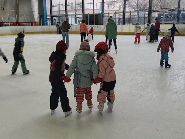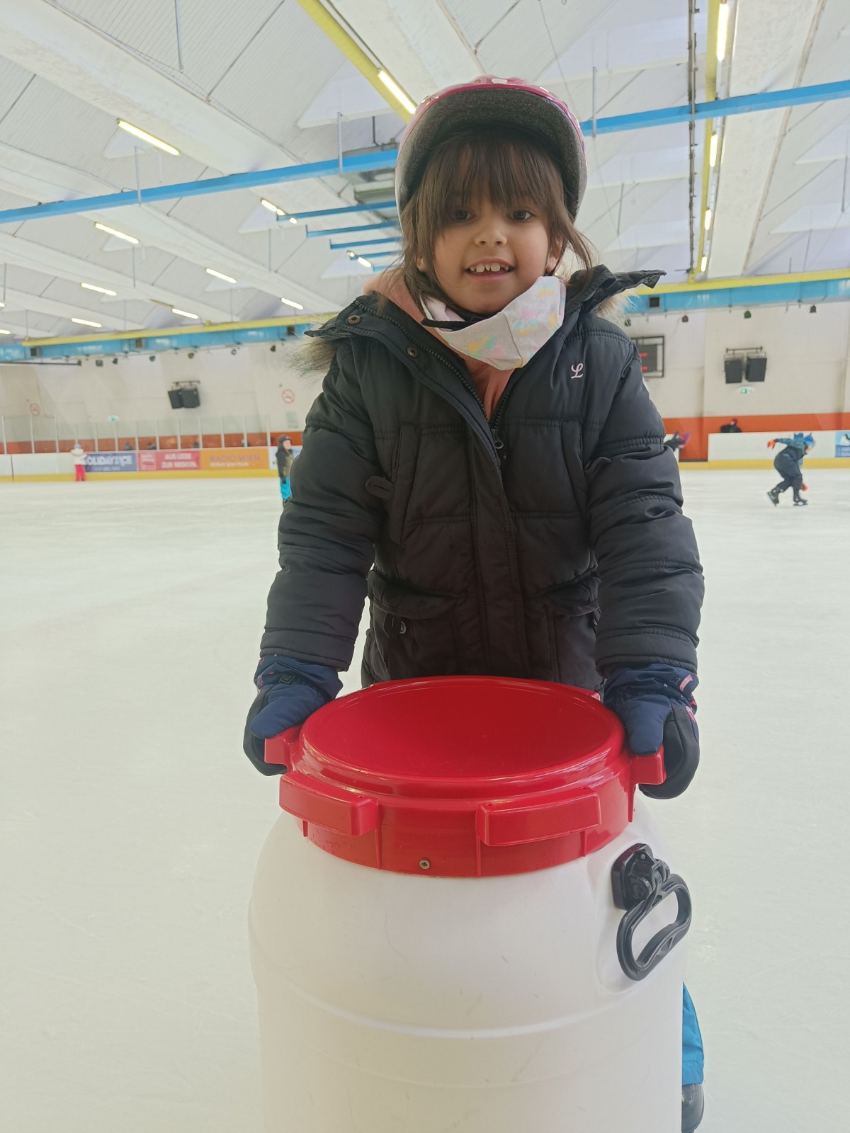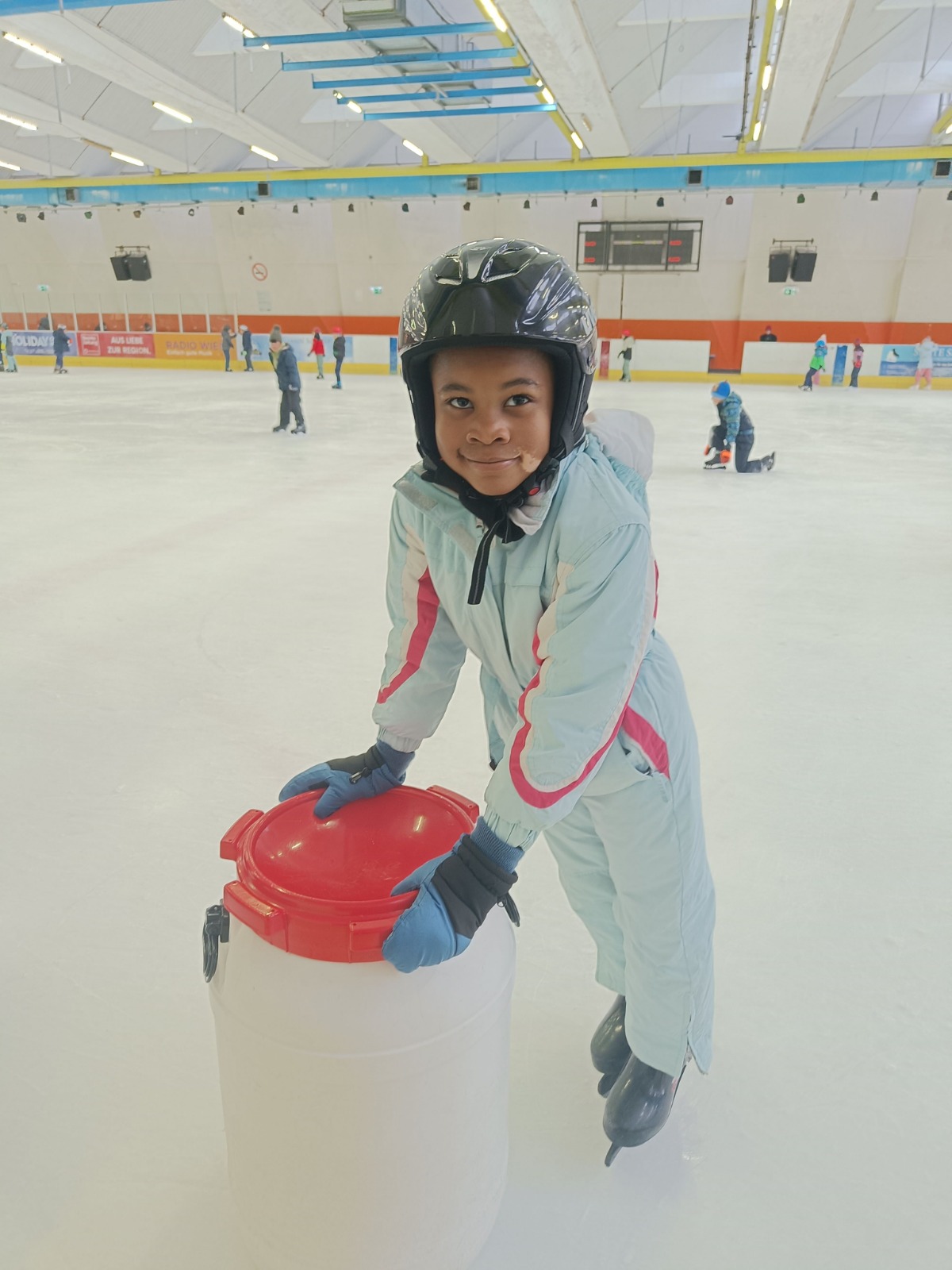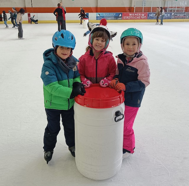 Endlich war es soweit. Wir sind – perfekt ausgerüstet – in die Eisstadthalle gefahren, um dort einen Vormittag auf dem Eis zu verbringen. Für viele Kinder war es das erste Mal auf dem Eis, ein paar Mädchen und Buben konnten schon richtig gut Eislaufen. „Aufstehen und noch einmal probieren“ – das war das Motto des Tages.
