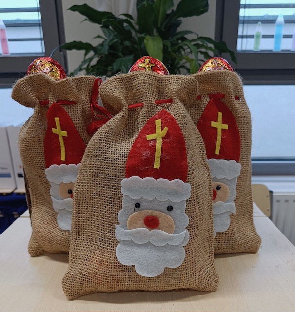 Er hat uns nicht vergessen! Außerdem hat er unsere selbst gebastelten Nikolaussackerl mit Lebkuchen, Mandarinen, Nüssen und Schokolade gefüllt. Mmm, diese Jause hat besonders gut geschmeckt!