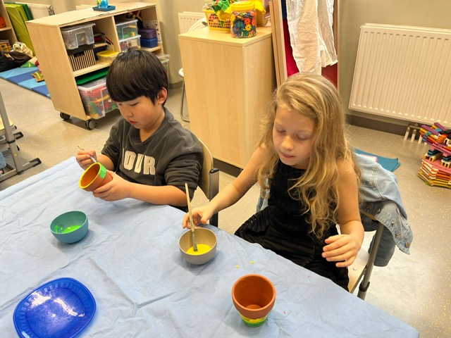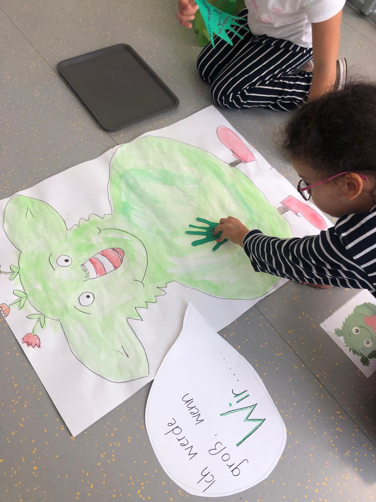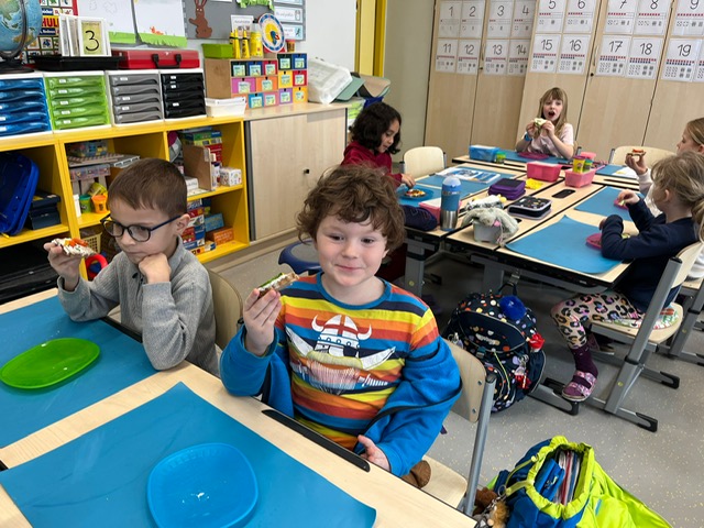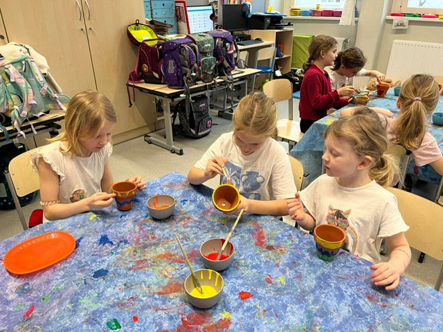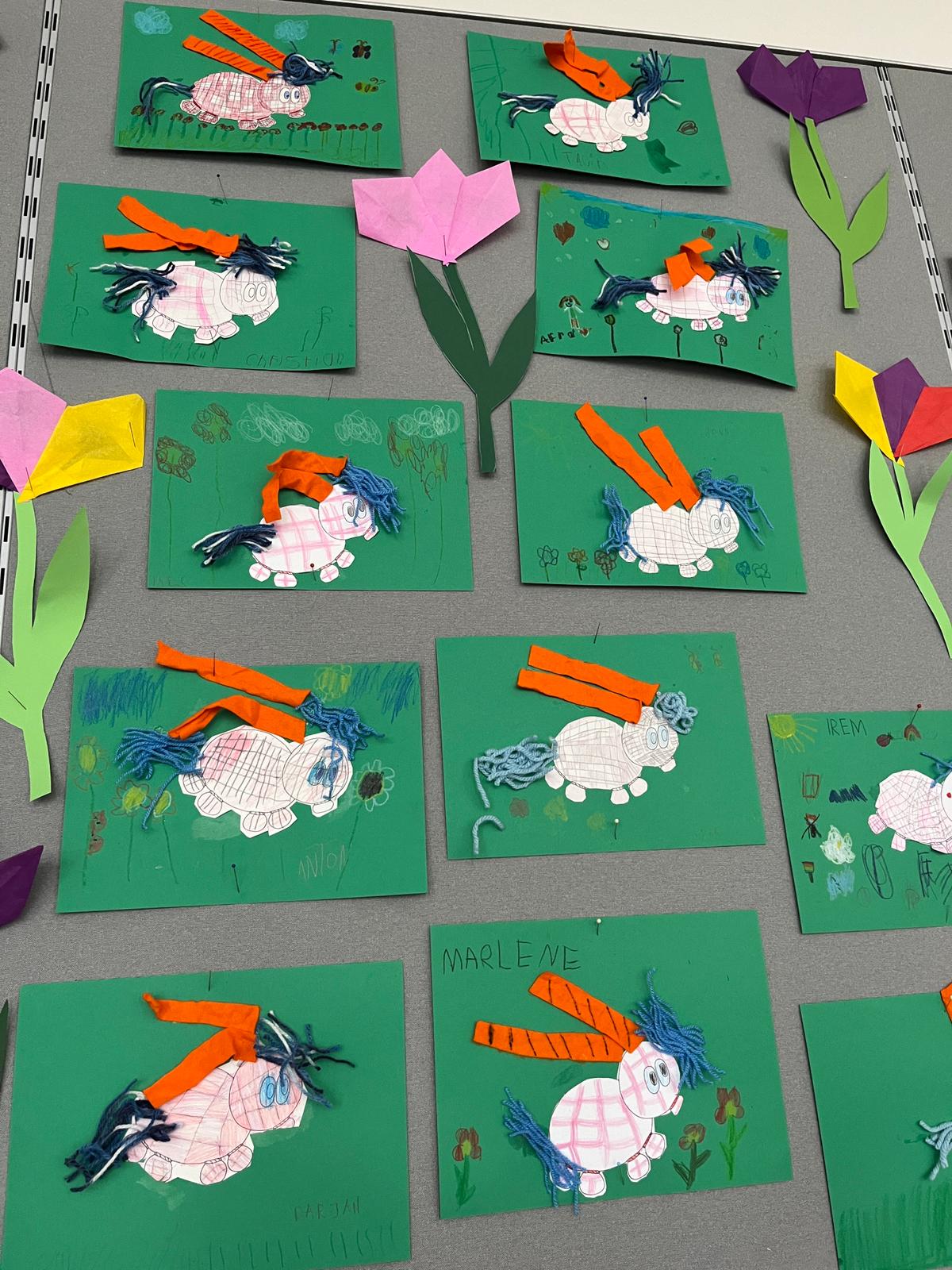 Am Vorlesetag waren wir sehr kreativ. Jeder hat sein eigenes Lieblingsbuch mitgebracht und der Klasse im Morgenkreis kurz vorgestellt. Eine kleine Szene aus dem Buch wurde anschließend gemalt und dann haben sich die Kinder gegenseitig aus den Büchern vorgelesen.