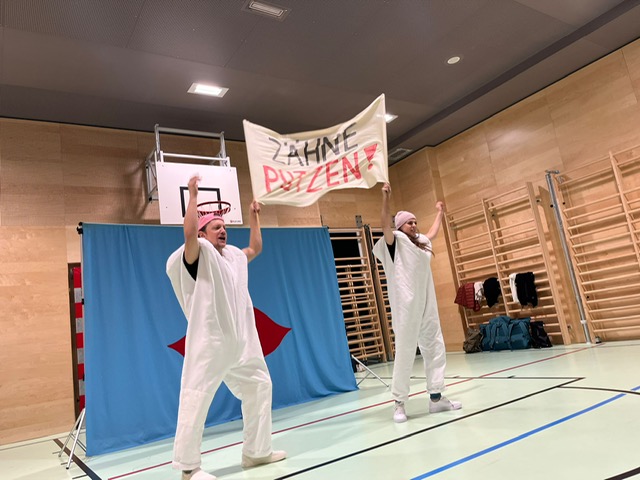 Das Zahntheater war zu Besuch bei uns in der Schule – passend dazu kam auch, wie jedes Jahr, die Claudia wieder zu uns!