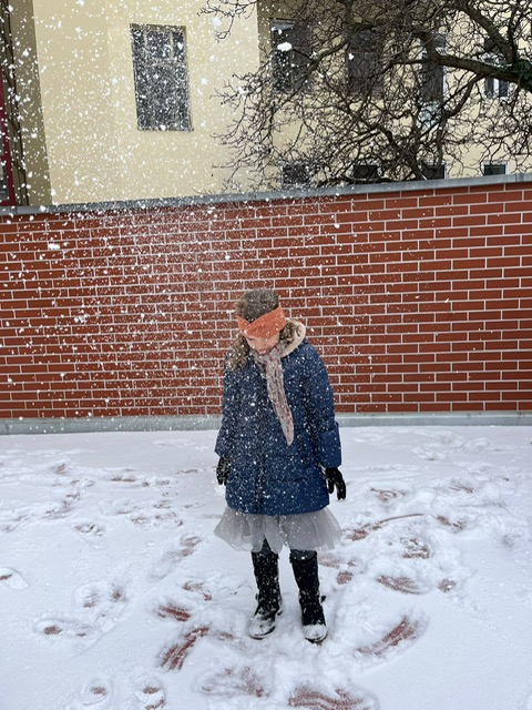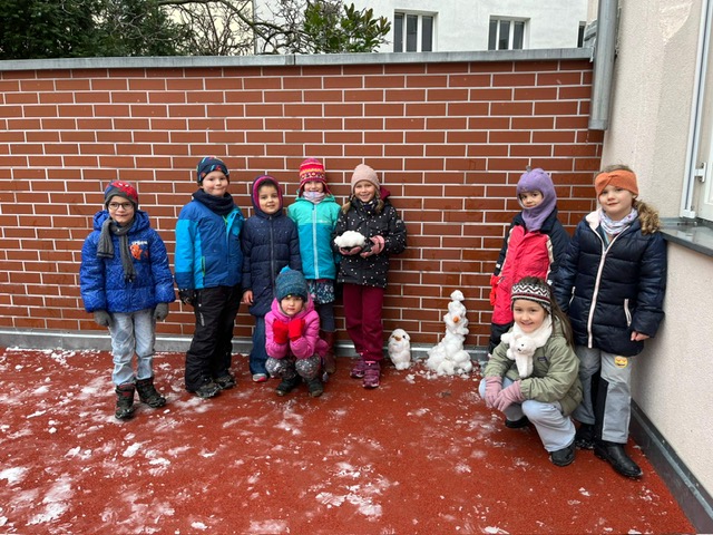 Endlich hat es auch in Wien ein wenig geschneit. Natürlich mussten wir sofort die Gelegenheit nutzen, um im Hof einen Schneemann zu bauen.