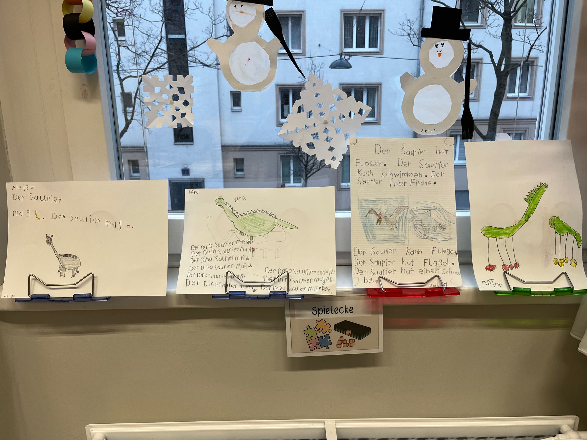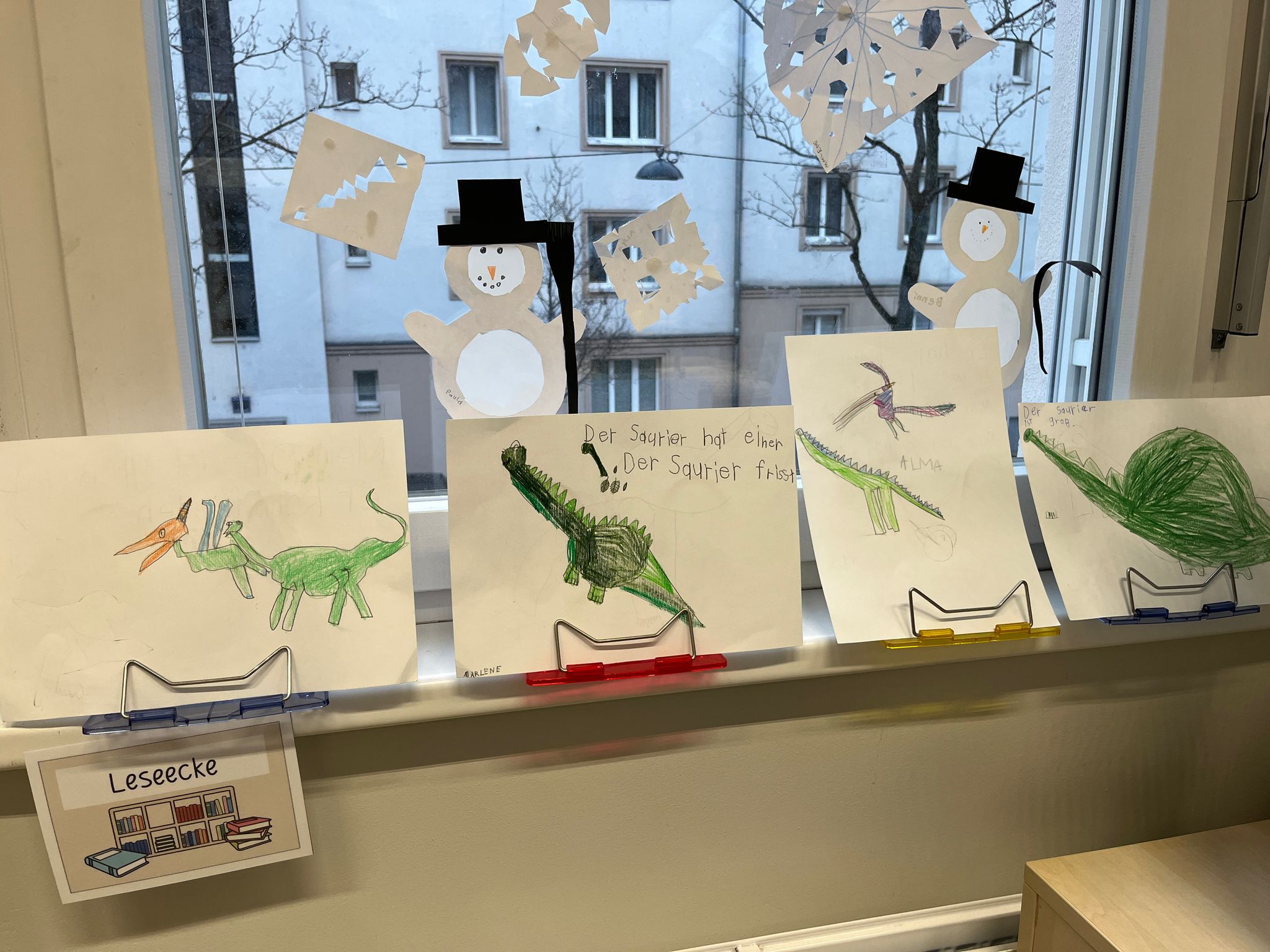 Nachdem wir uns eine ganze Woche lang mit dem Leben der Dinosaurier beschäftigt haben, hat jedes Kind zum Abschluss seinen Lieblingsdinosaurier gezeichnet und beschrieben. Die fertigen Bilder und Geschichten stehen jetzt zum Bestaunen in unserer Klasse.