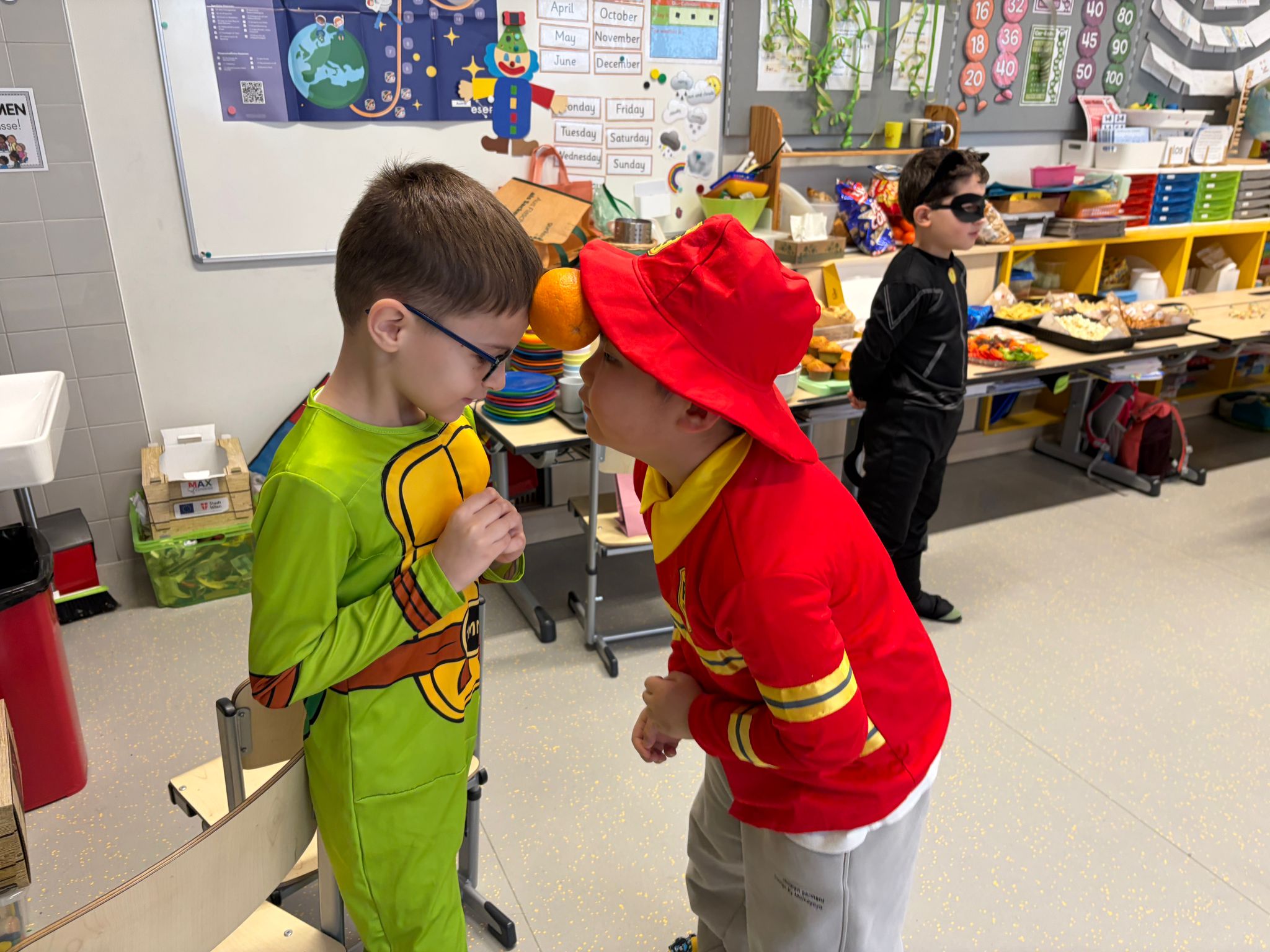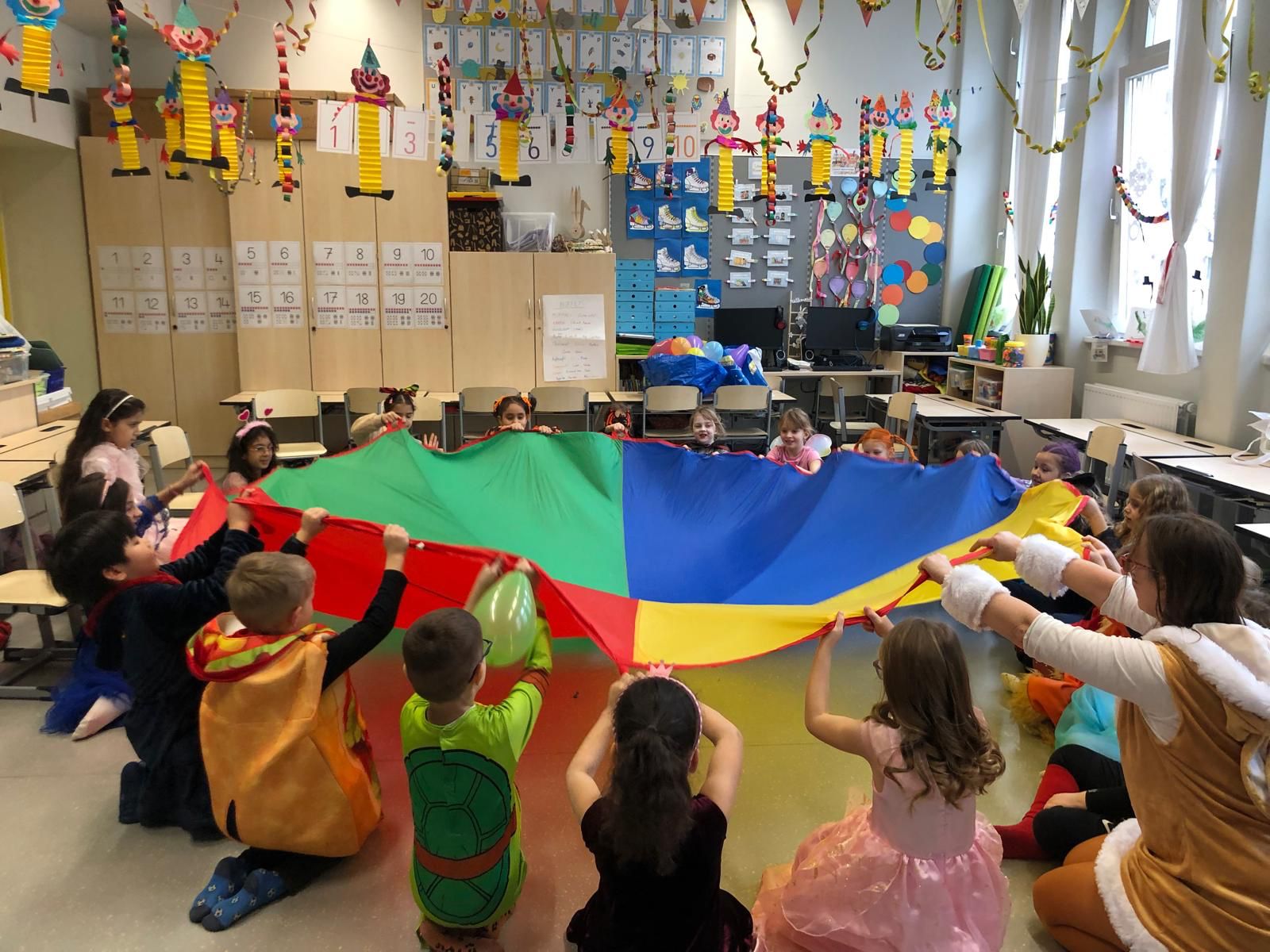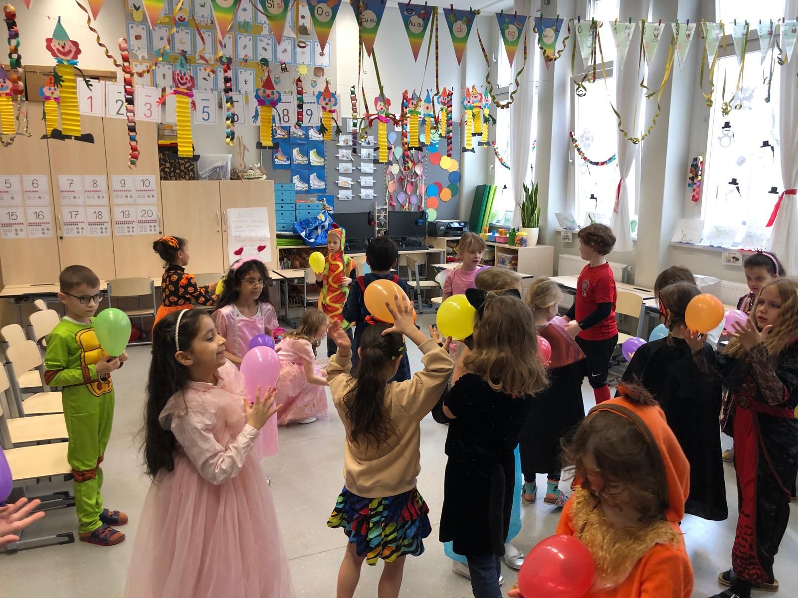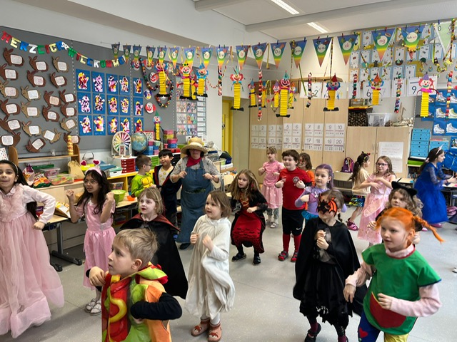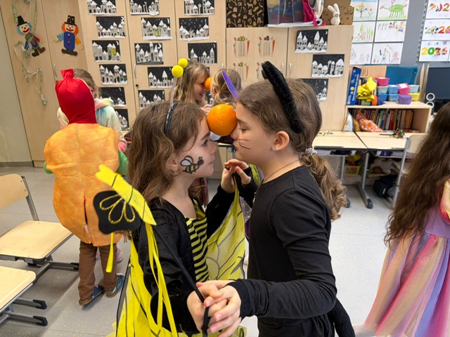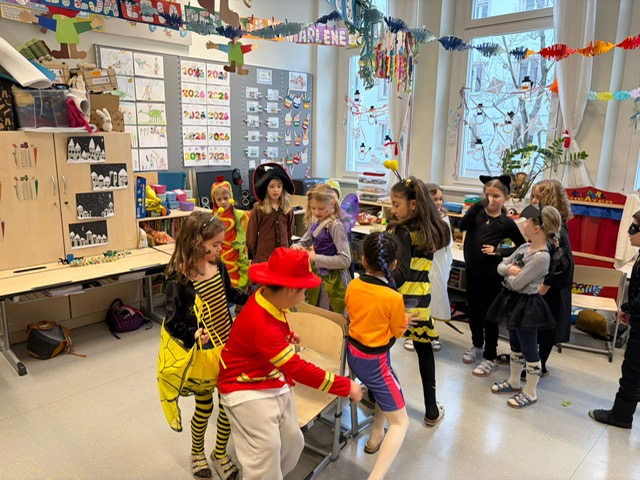 Unser Faschingsfest war ein voller Erfolg. Es begann u. a. mit Spielen, die die Kinder immer wieder begeistern: Stopptanz, Sesseltanz, Orangentanz und Topfklopfen.