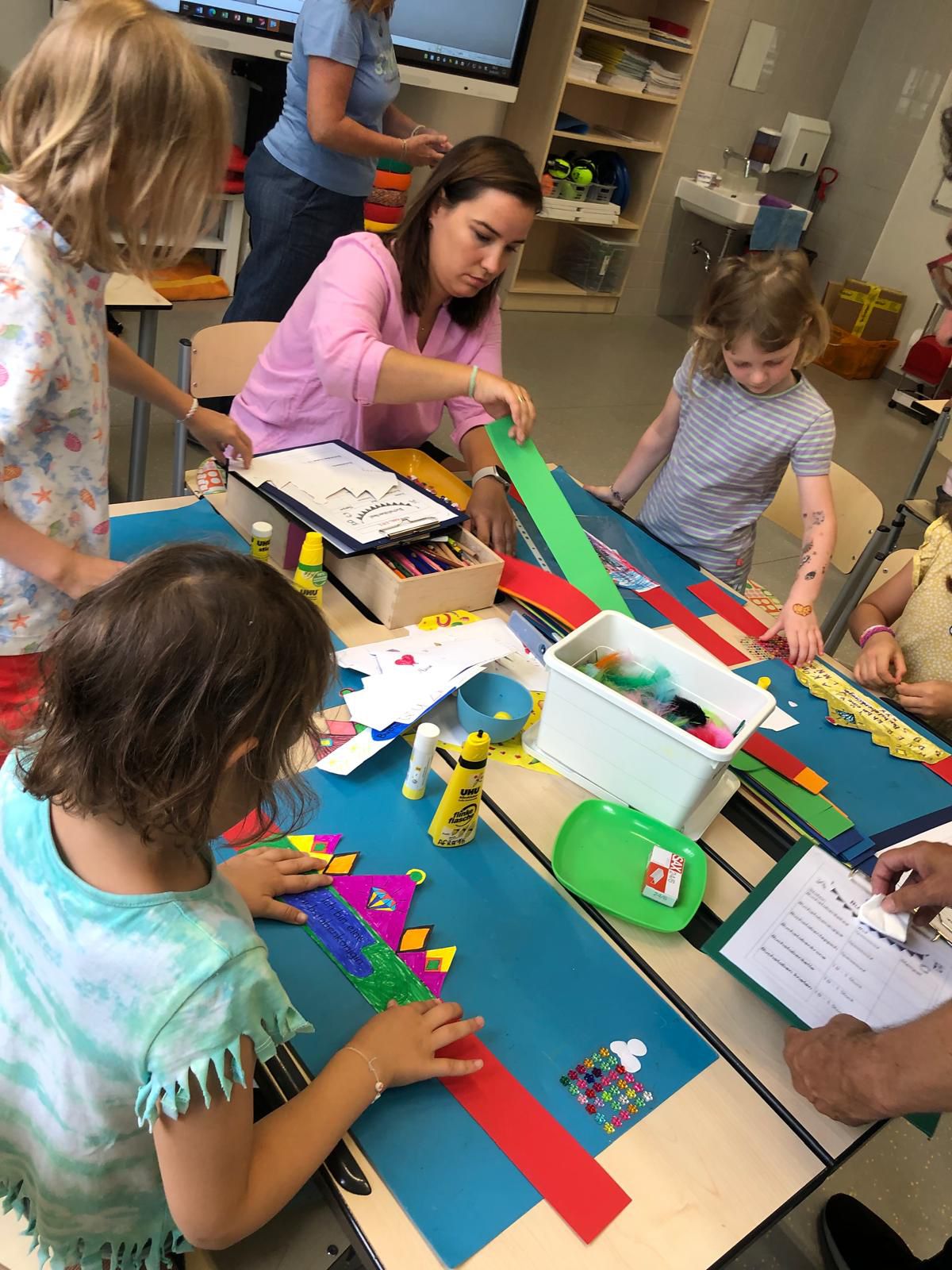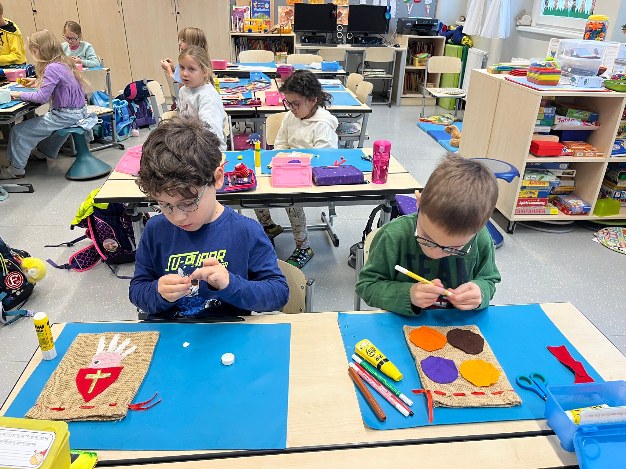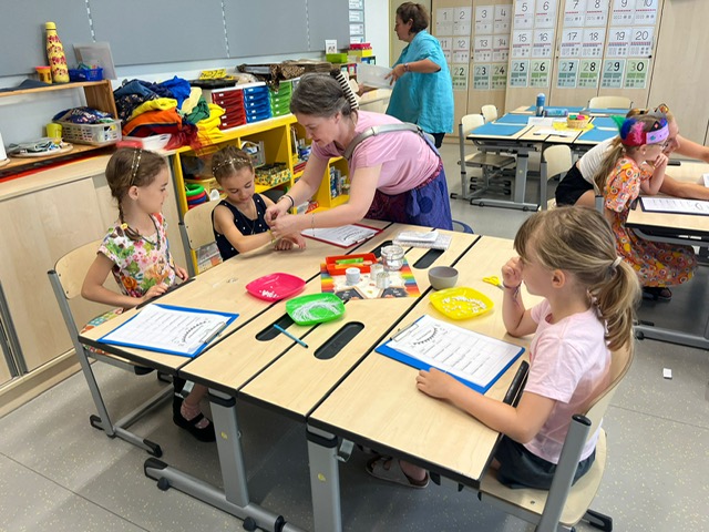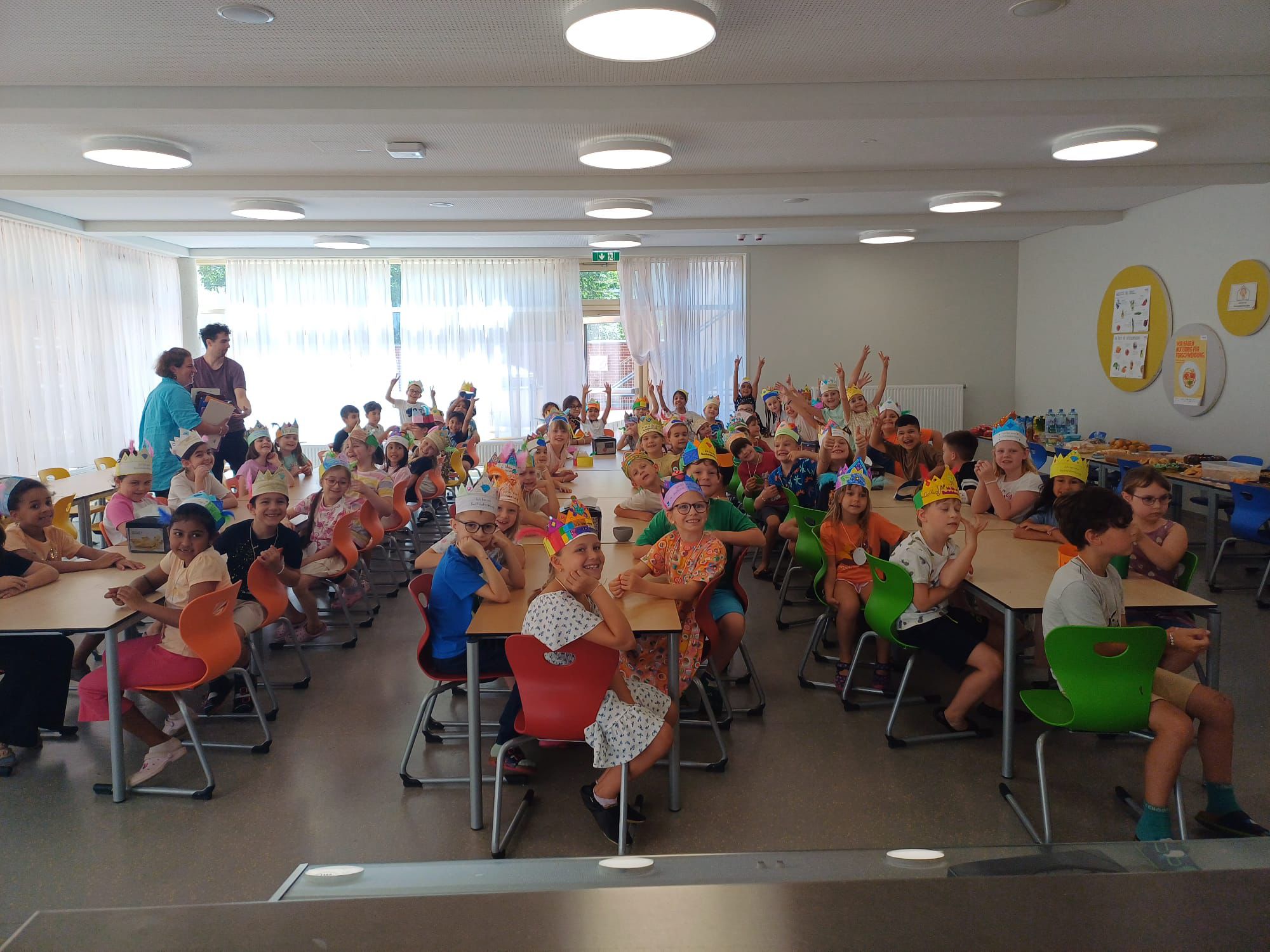 Das erste Schuljahr ist nun fast vorbei und das haben wir natürlich gebührend gefeiert. Es wurden T – Shirts bedruckt, Buchstabenkronen, Ketten und Medaillen gebastelt, eine Buchstabensuppe gegessen, Wörter erraten und vieles mehr.