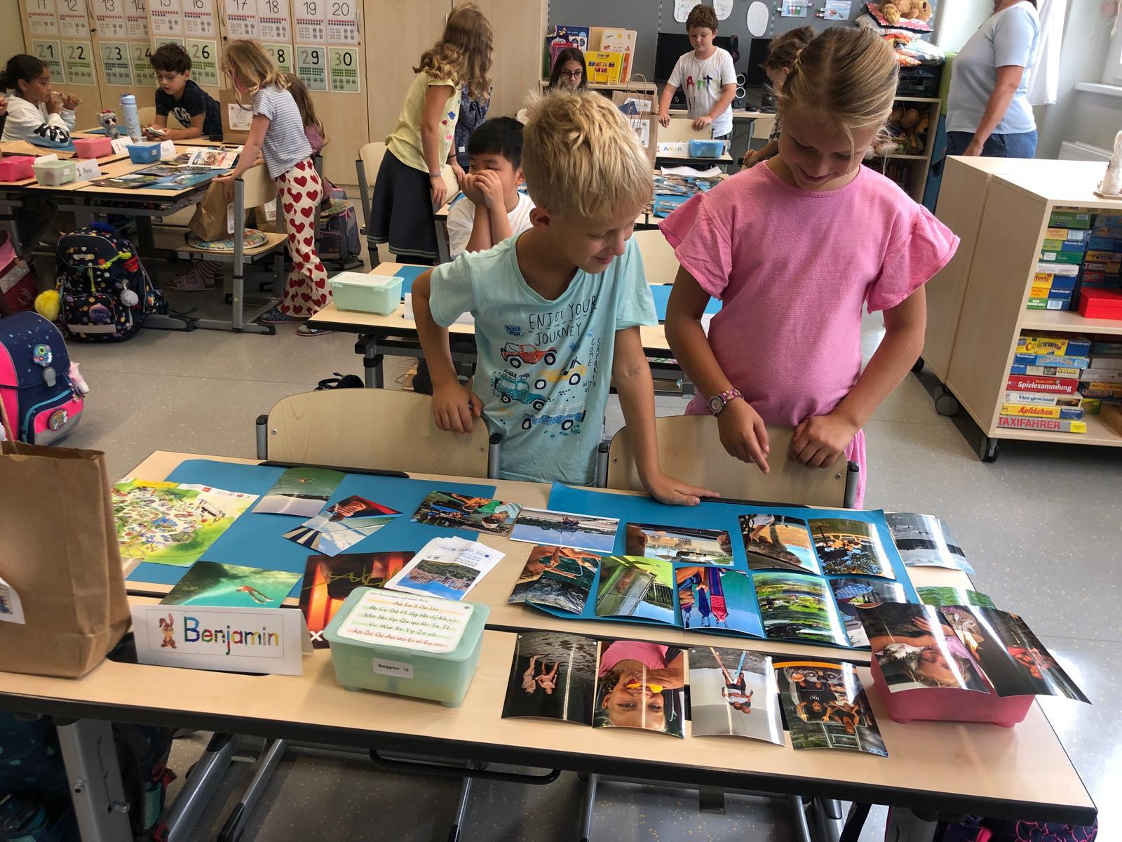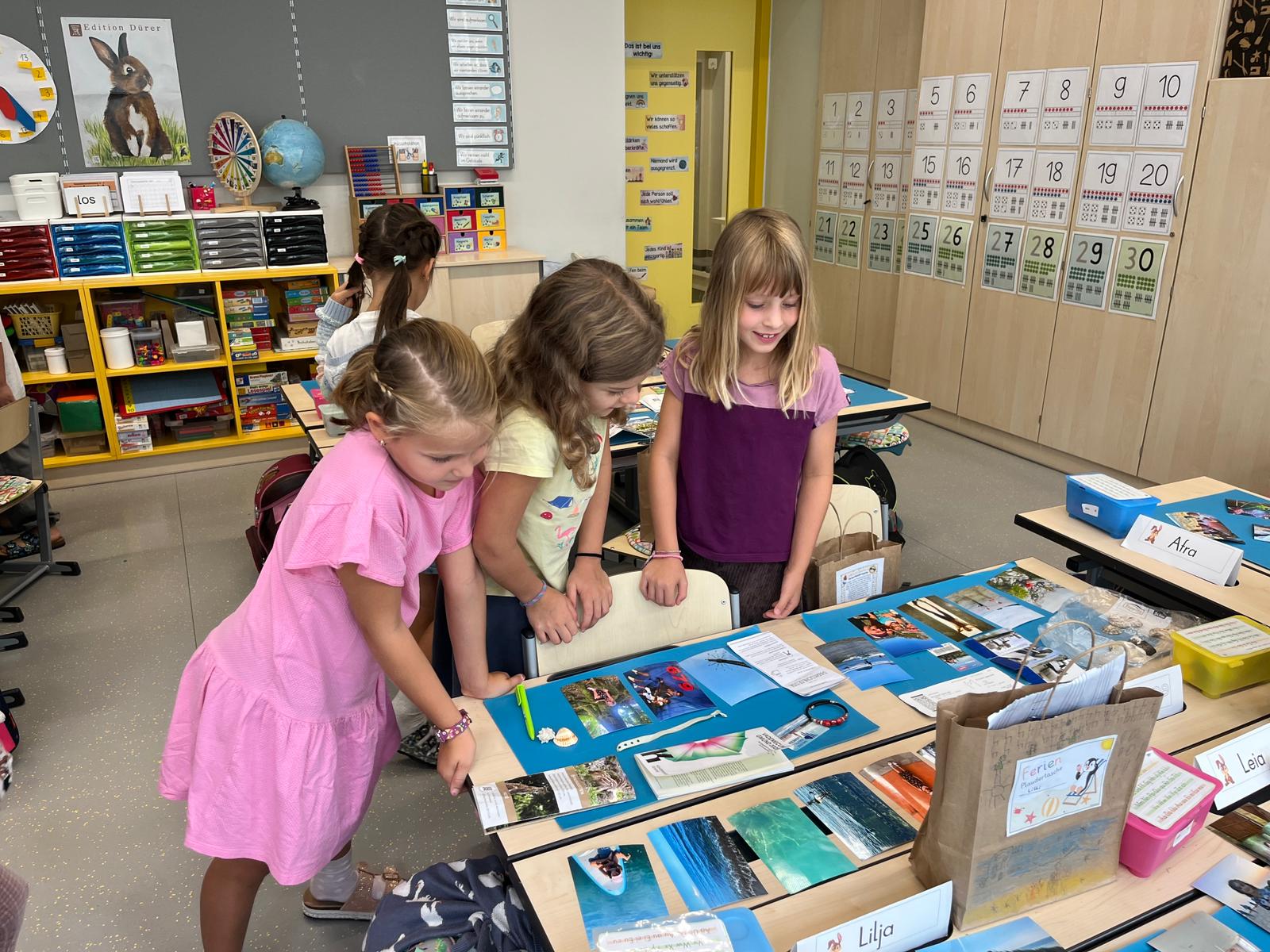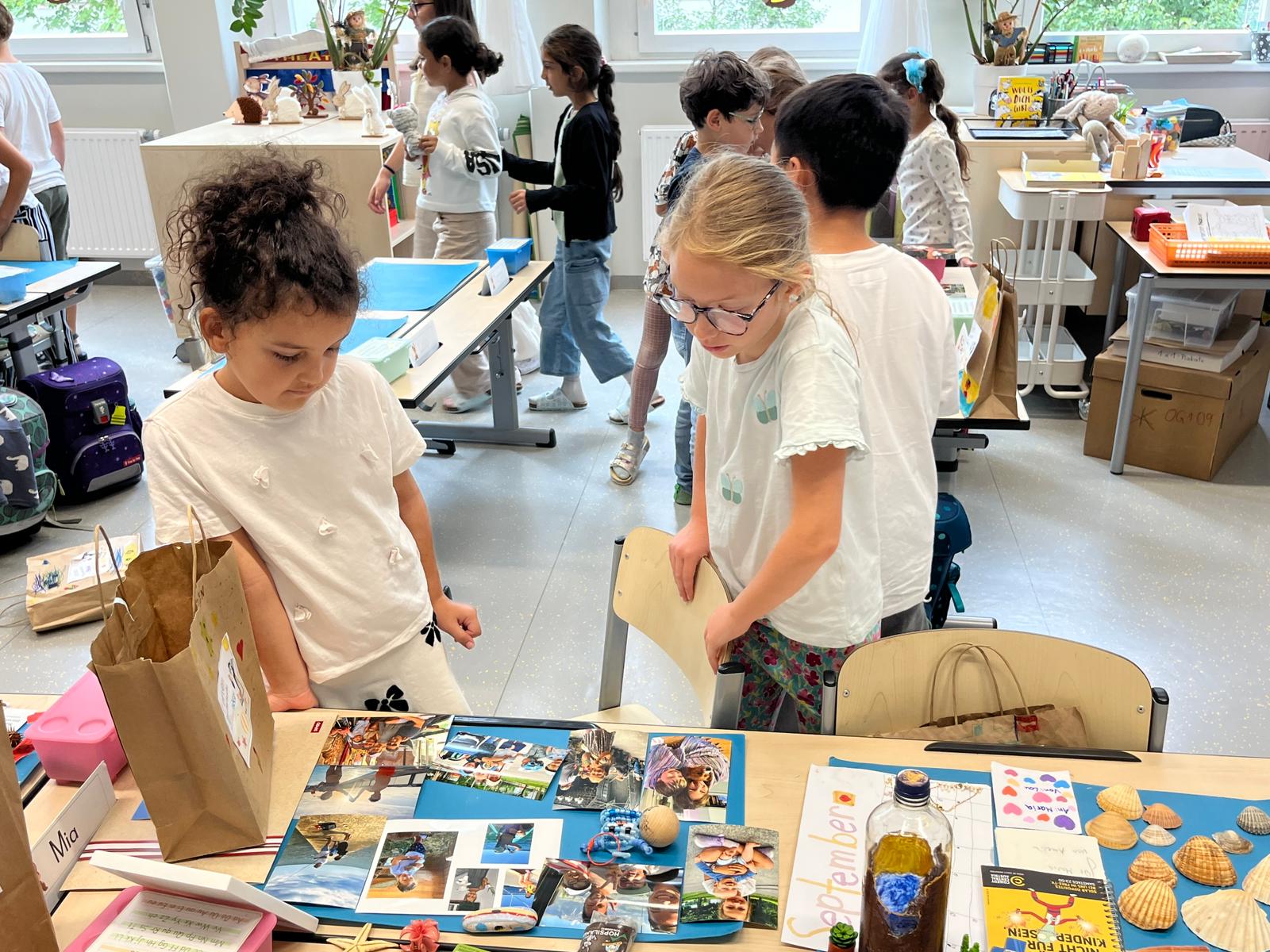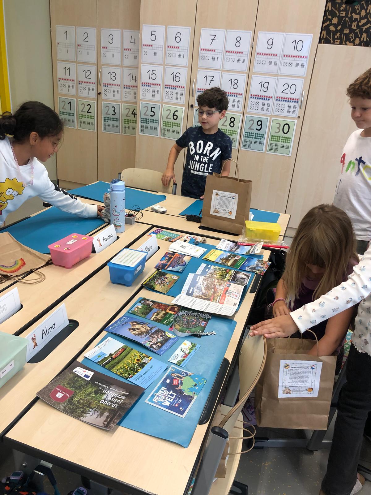 In der Ferienplaudertasche haben die Kinder die schönsten Erinnerungsstücke aus den Sommerferien gesammelt. Mithilfe der vielen gesammelten Gegenstände wie z.B. Postkarten, Eintrittskarten, Muscheln, Fotos oder Fundstücken konnten die Kinder uns jeden Tag im Morgenkreis von ihren Ferien berichten. Am Freitag gab es zum Abschluss noch eine kleine Ausstellung, in der alle mitgebrachten Materialien bewundert werden konnten.