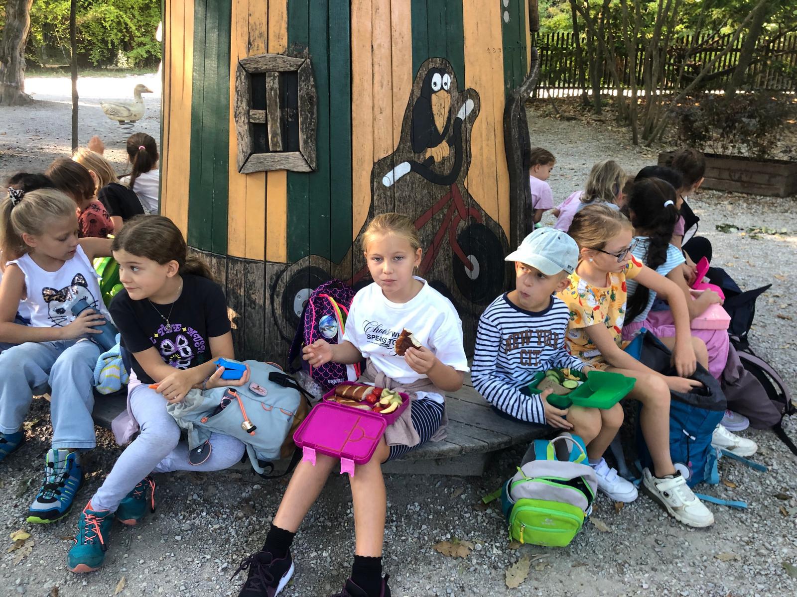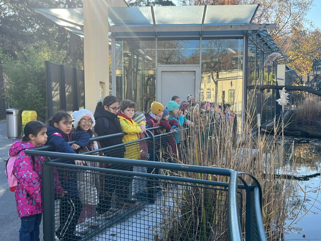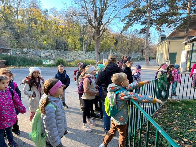 Unser erster Ausflug führte uns in den Tiergarten Schönbrunn. Während einer spannenden Führung zum Thema „Tiere auf dem Bauernhof“ lernten wir verschiedene Nutztiere wie Kühe, Schafe, Ziegen und Hühner kennen. Die Kinder konnten die Tiere aus nächster Nähe beobachten und erfuhren viel über ihre Lebensweise und Bedeutung für den Menschen.