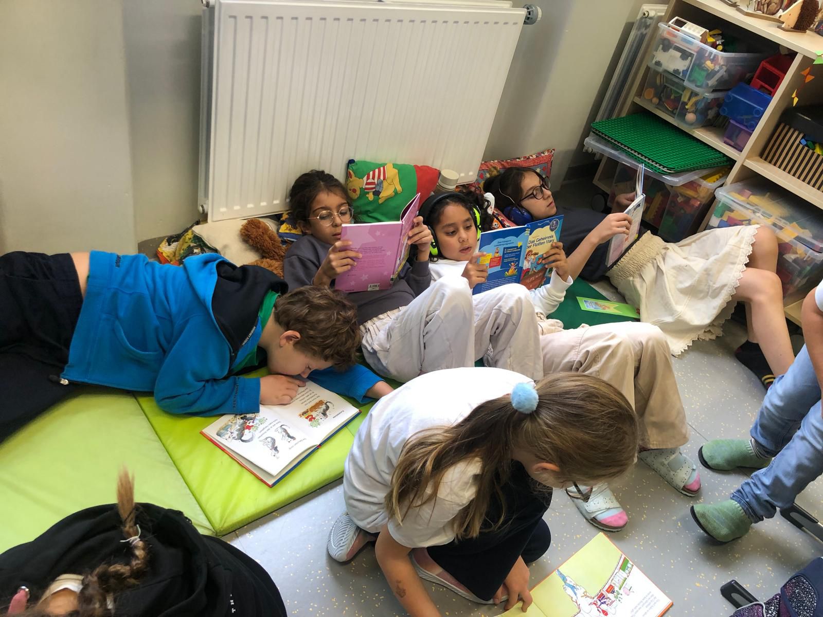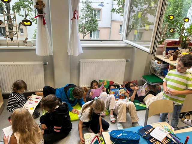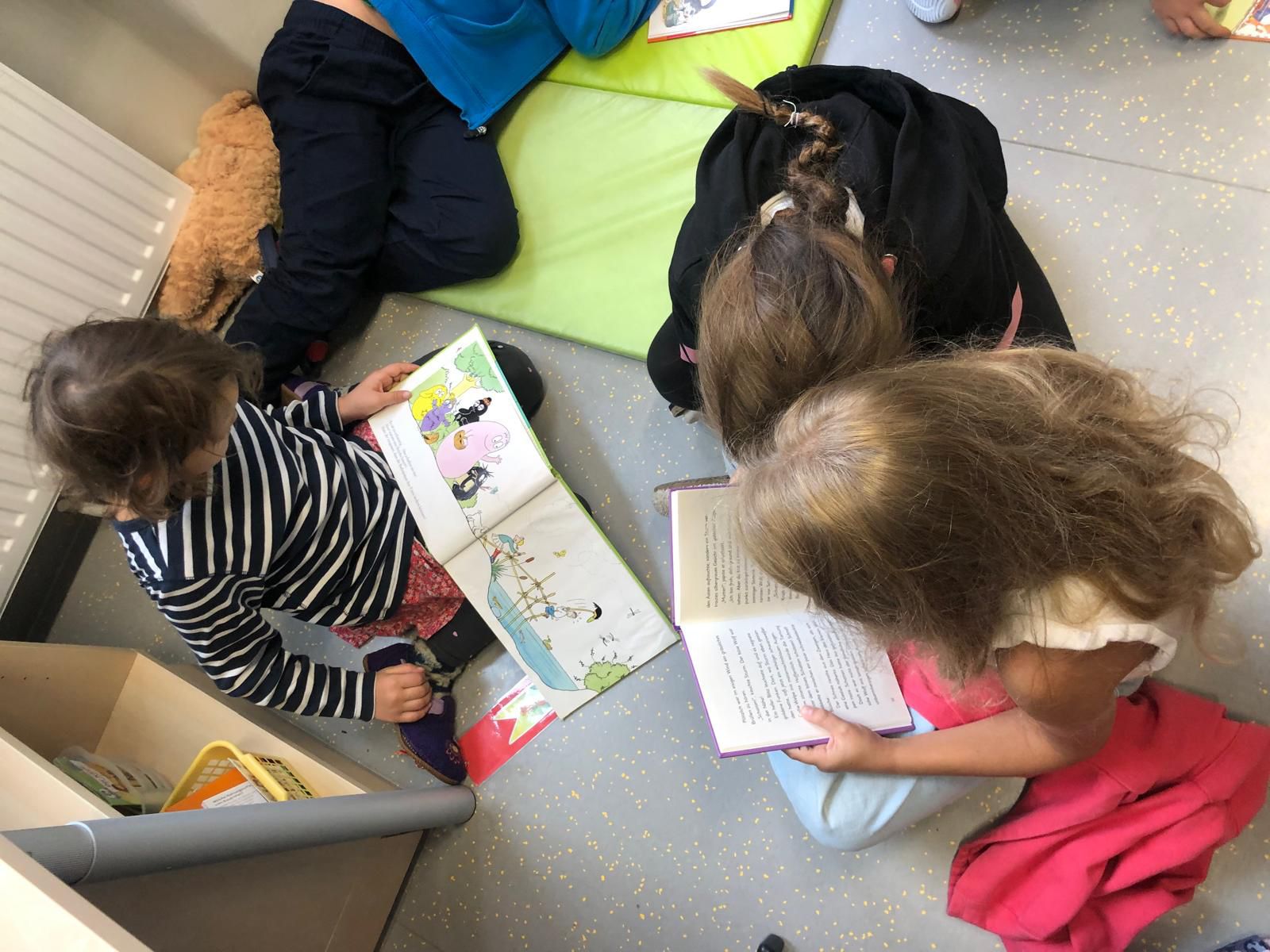 Ob auf dem Teppich, in der Leseecke oder beim Tisch – wir lesen gern und überall!