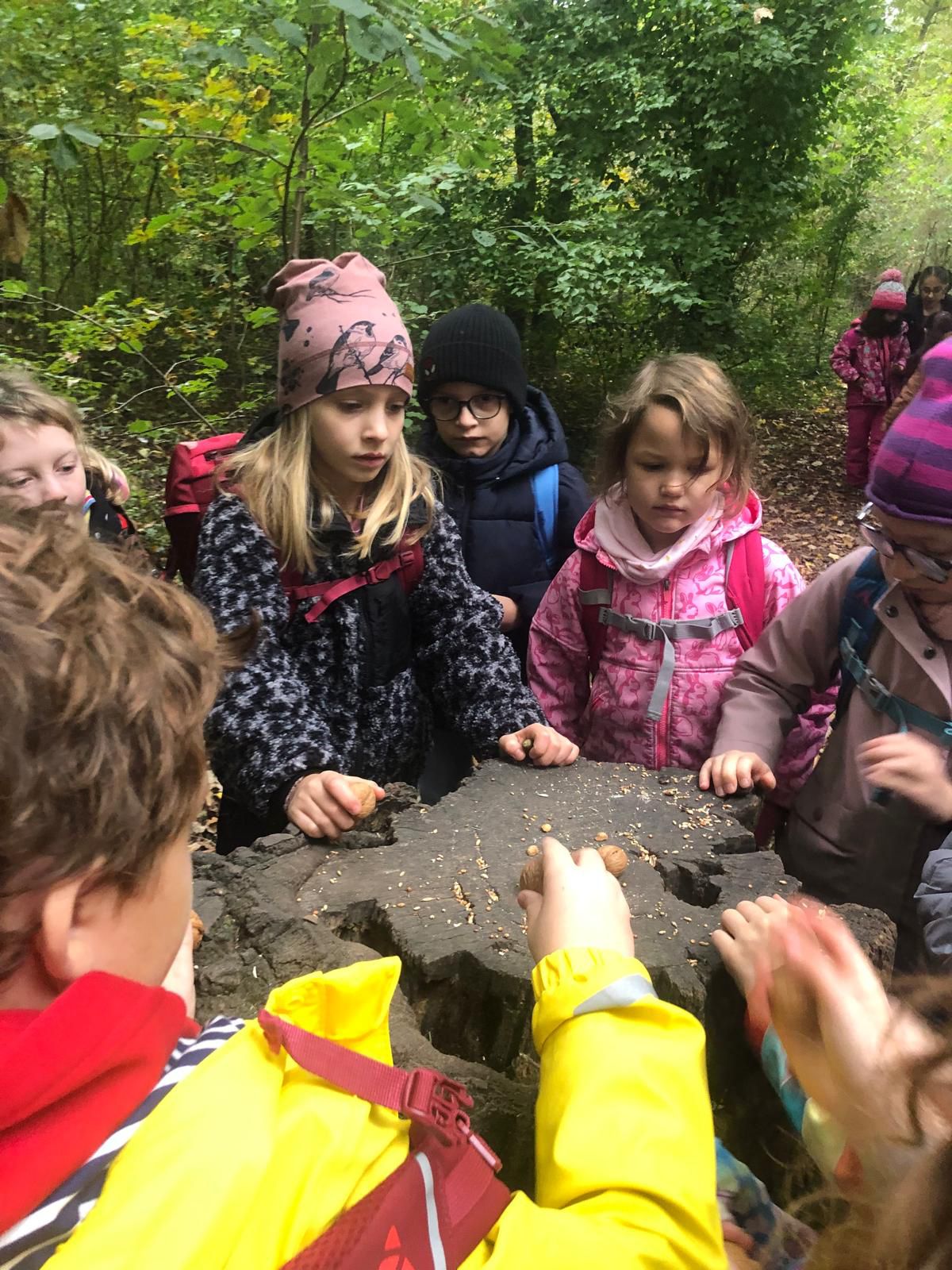 Unser Ausflug nach Schönbrunn stand ganz im Zeichen der Eichhörnchen. Die Kinder hatten viele Nüsse im Rucksack und gingen sehr behutsam vor, um die Tiere zu füttern. Es war eine besondere Erfahrung, denn wir wussten nicht, ob und wie viele Eichhörnchen sich zeigen oder füttern lassen würden. Einige waren neugierig, andere eher scheu.