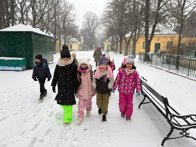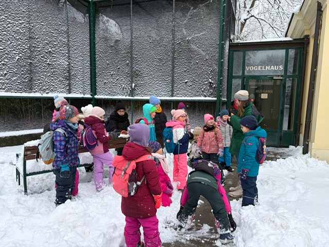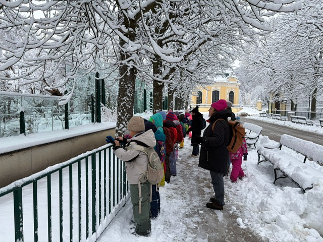 Der erste Ausflug im neuen Jahr führte uns an einem winterlichen Tag mit Schneefall in den Tiergarten Schönbrunn. Die verschneite Umgebung sorgte für eine besondere Atmosphäre und troße Begeisterung bei den Kindern. Passend zum Thema „Polare Tiere“ konnten de Kinder zahlreiche Tiere beobachten und ihr Wissen vertiefen. Mit viel Freude, Neugier und Spaß erkundeten die Kinder den Zoo. Der Ausflug war für alle ein gelungener und schöner Start ins neue Jahr!