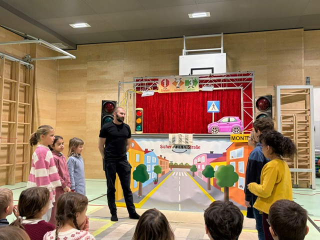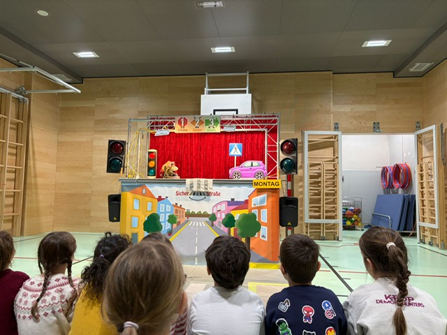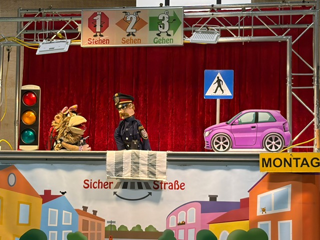 Im Rahmen der Verkehrserziehung beschäftigten wir uns mit dem Thema „Sicher über die Straße“. Mithilfe eines anschaulichen Puppenspiels wurden typische Verkehrssituationen dargestellt. Gemeinsam besprachen wir dabei mögliche Fehler und überlegten, wie man sich richtig verhält. Dabei konnten die Kinder das Gelernte selbst üben und so mehr Sicherheit für den Schulweg gewinnen.