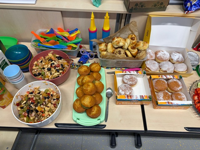 Gekrönt wurde die Feier durch das tolle Büfett mit selbstgemachten Speisen wie Obstsalat, Muffins und Kuchen.