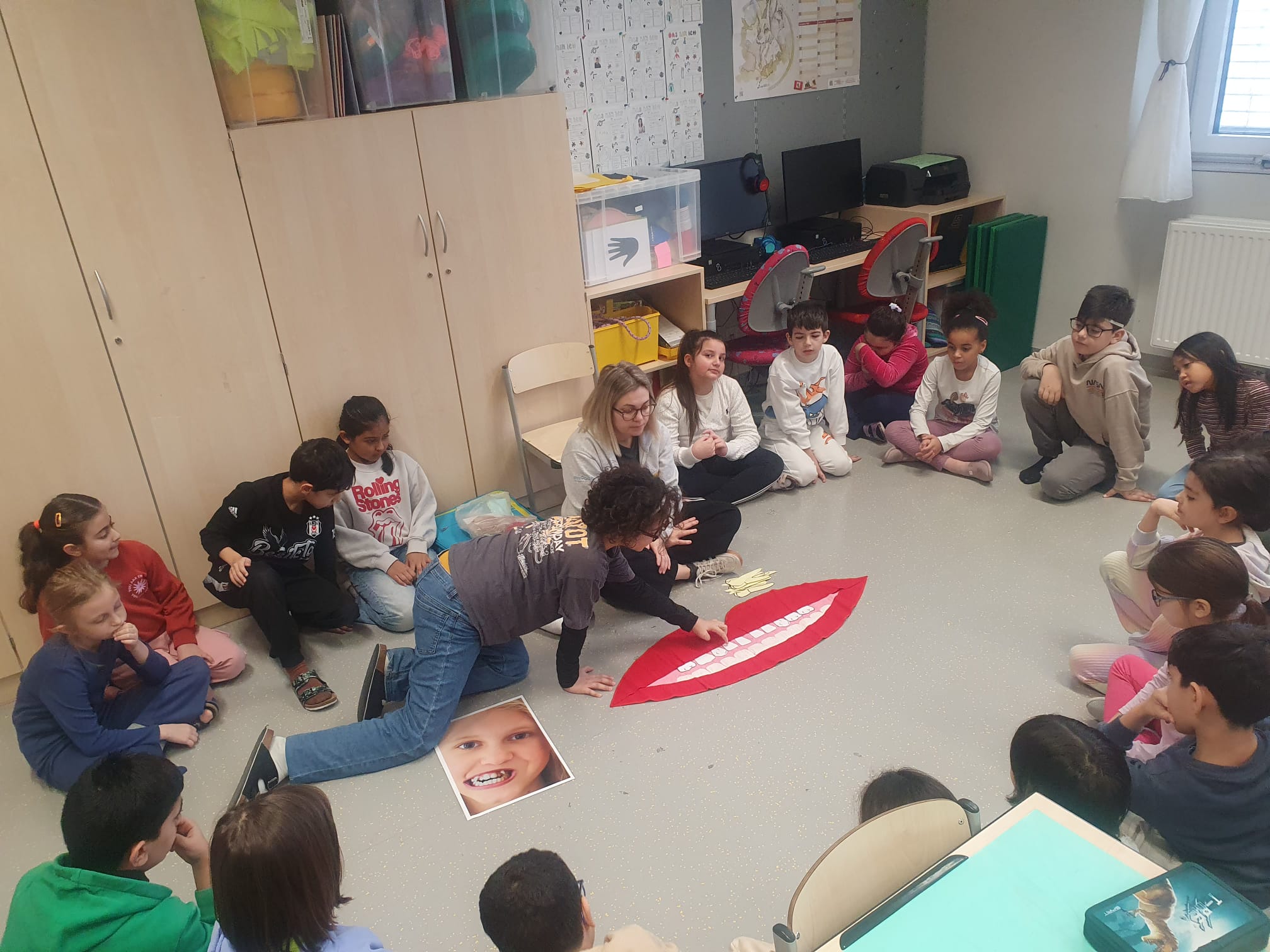 Am selben Tag erfuhren wir von Klaudia alles über Milchzähne und bleibende Zähne und wann man eine Zahnspange bekommt.