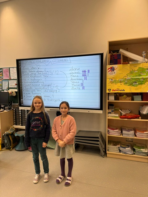 Bei einer geheimen Wahl wurde gewählt, was den Kindern am wichtigsten ist und auch zwei Abgeordnete der Klasse wurden gewählt, die bald vor der BV ihren Wunsch präsentieren dürfen!