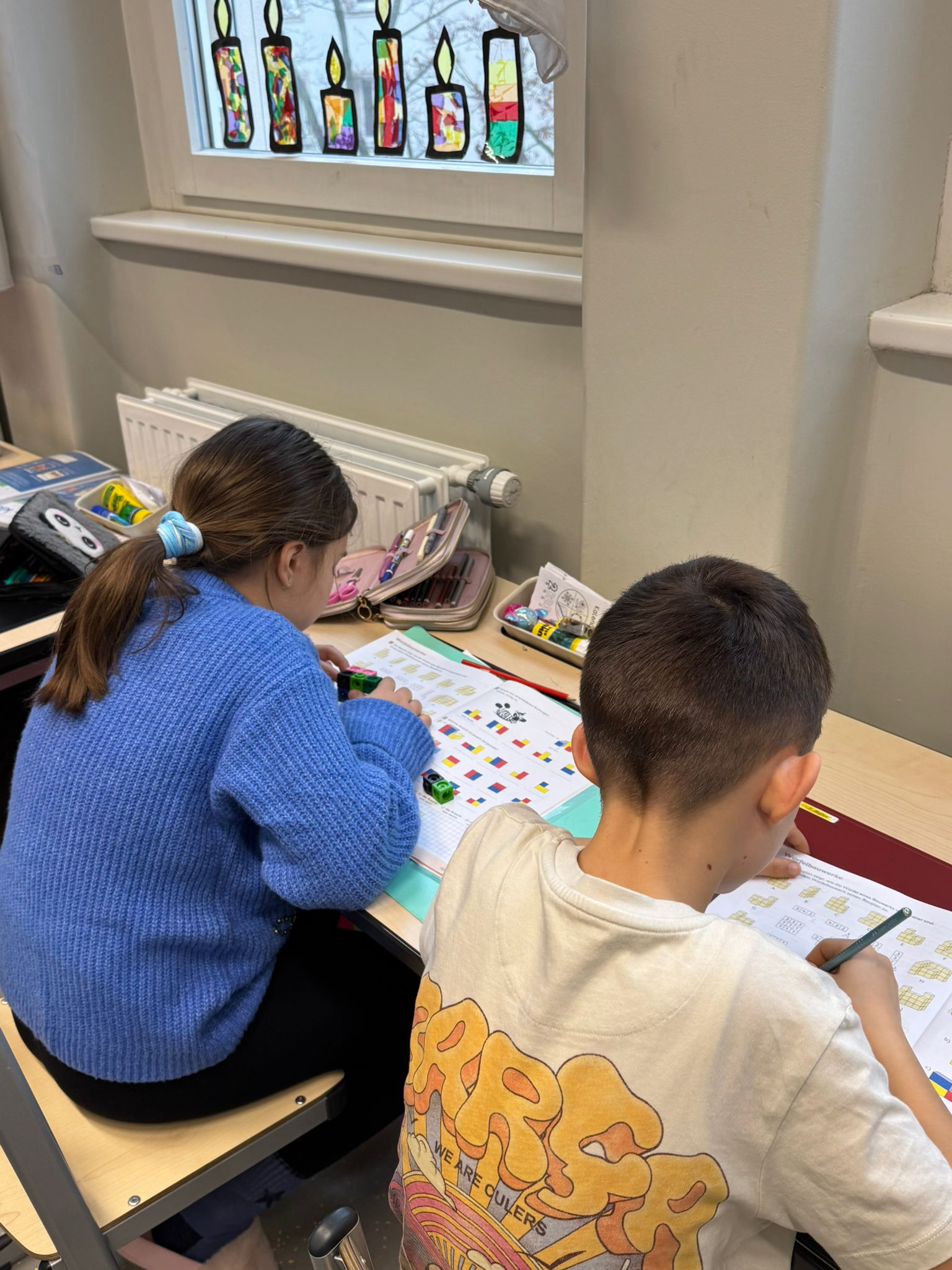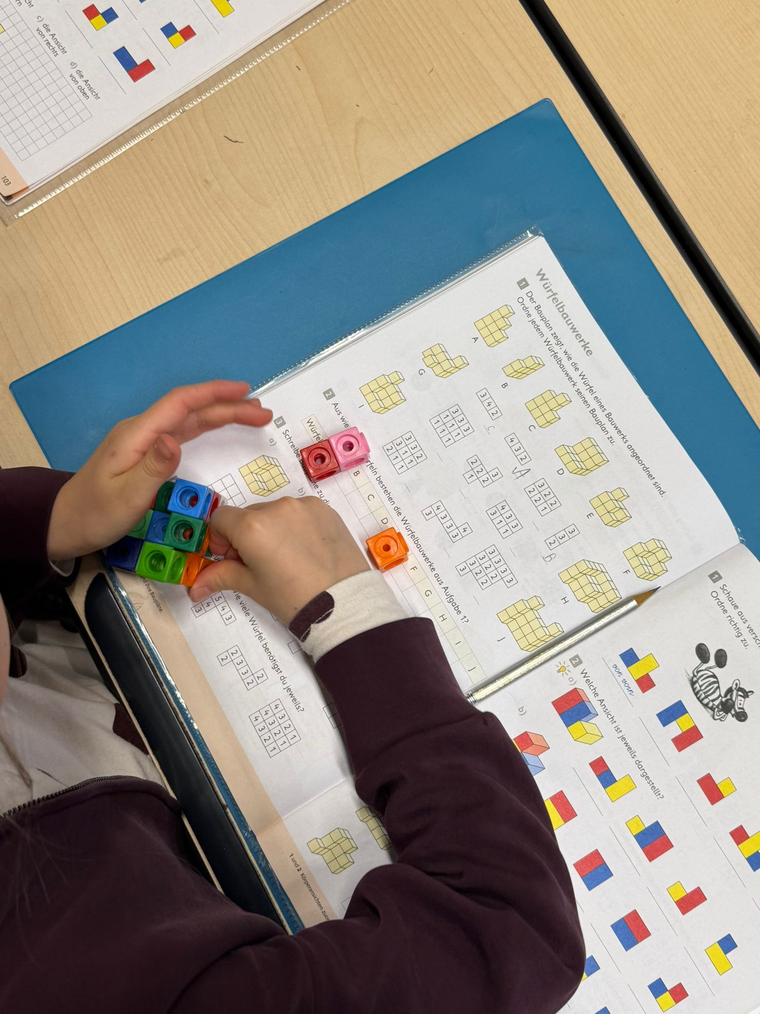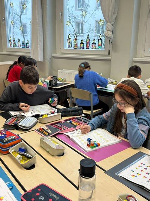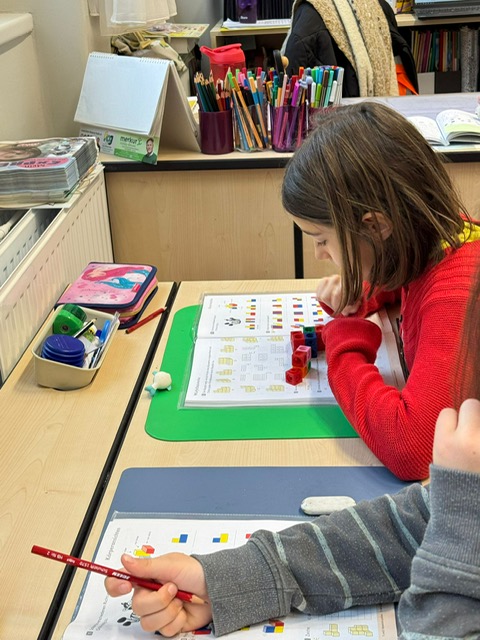 Zu Mathematik gehört auch das Forschen, Entdecken, Ausprobieren, Bauen, Messen, Überprüfen, Erklären, das Finden von mehreren Lösungswegen! Diese Woche lag unser Fokus auf dem Bauen von Würfelbauwerken. Die Kinder zeichneten Grundrisse, stellten Überlegungen zu Grundflächen auf, bauten verschiedene Bauwerke und betrachteten diese aus verschiedenen Perspektiven! Die Köpfe rauchten, aber alle waren sehr zufrieden mit den Ergebnissen!
