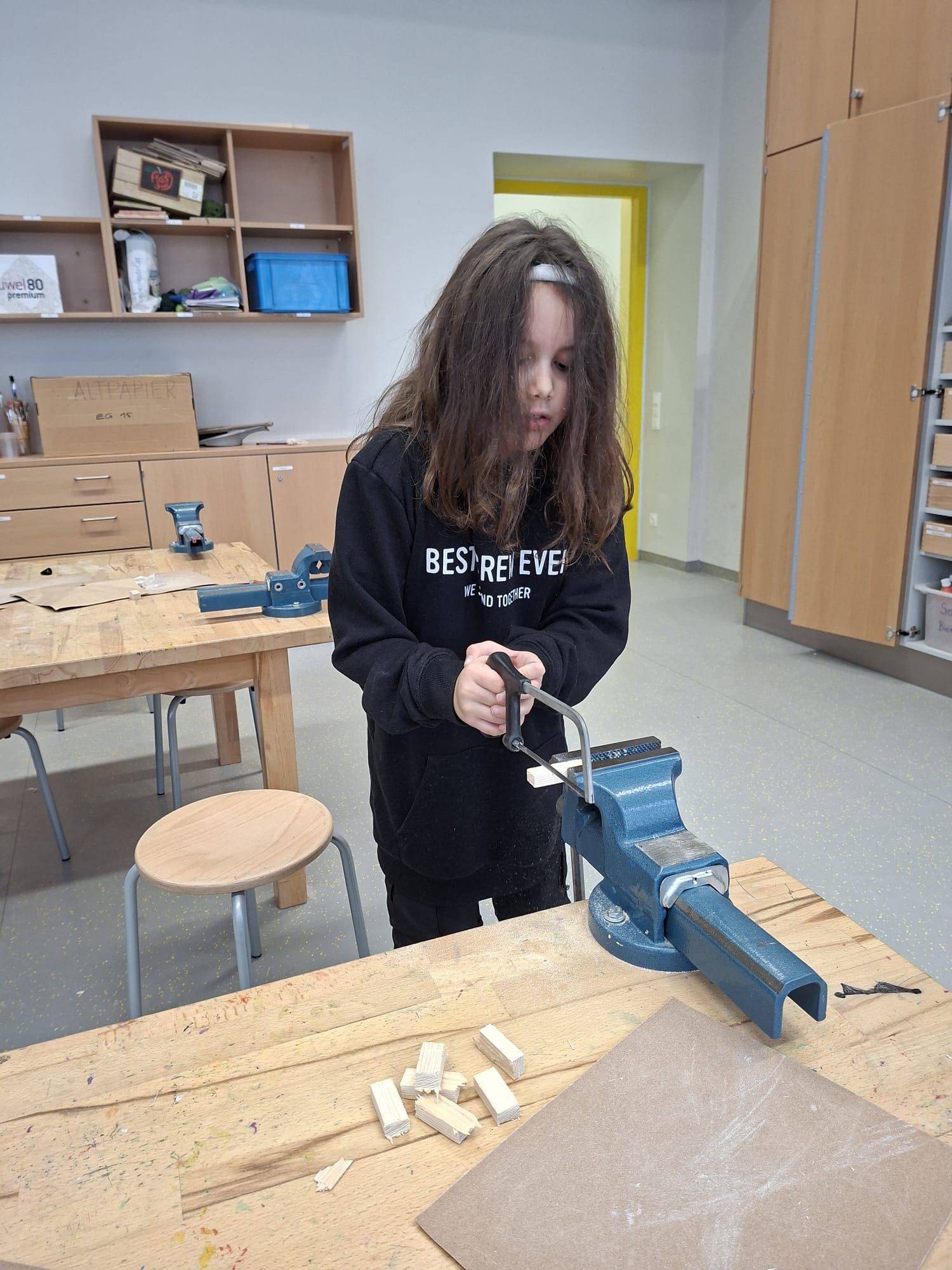 2 Stunden später waren wunderbare Kunstwerke der Kinder fertig und zum Trocknen aufgelegt.