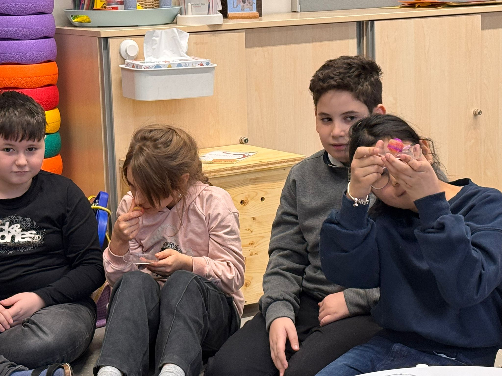Nachdem unser Waldtag zum zweiten Mal redlich ins Wasser gefallen ist, haben wir es uns in der Schule gemütlich gemacht.