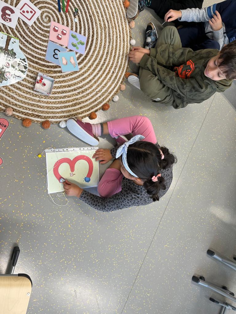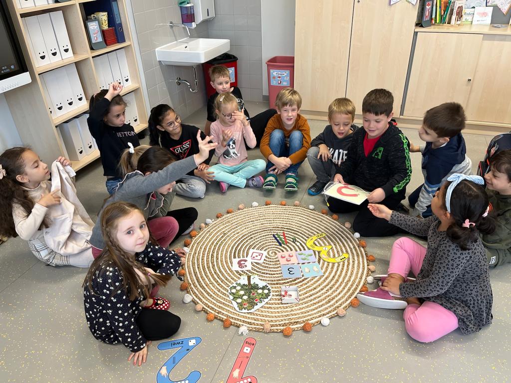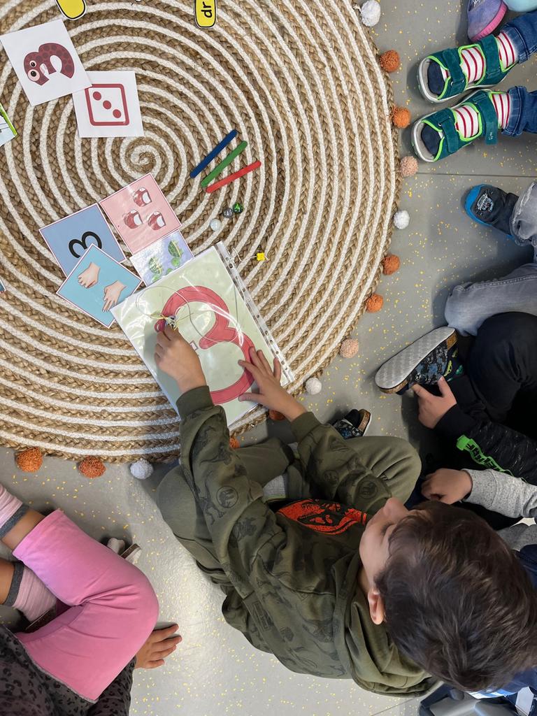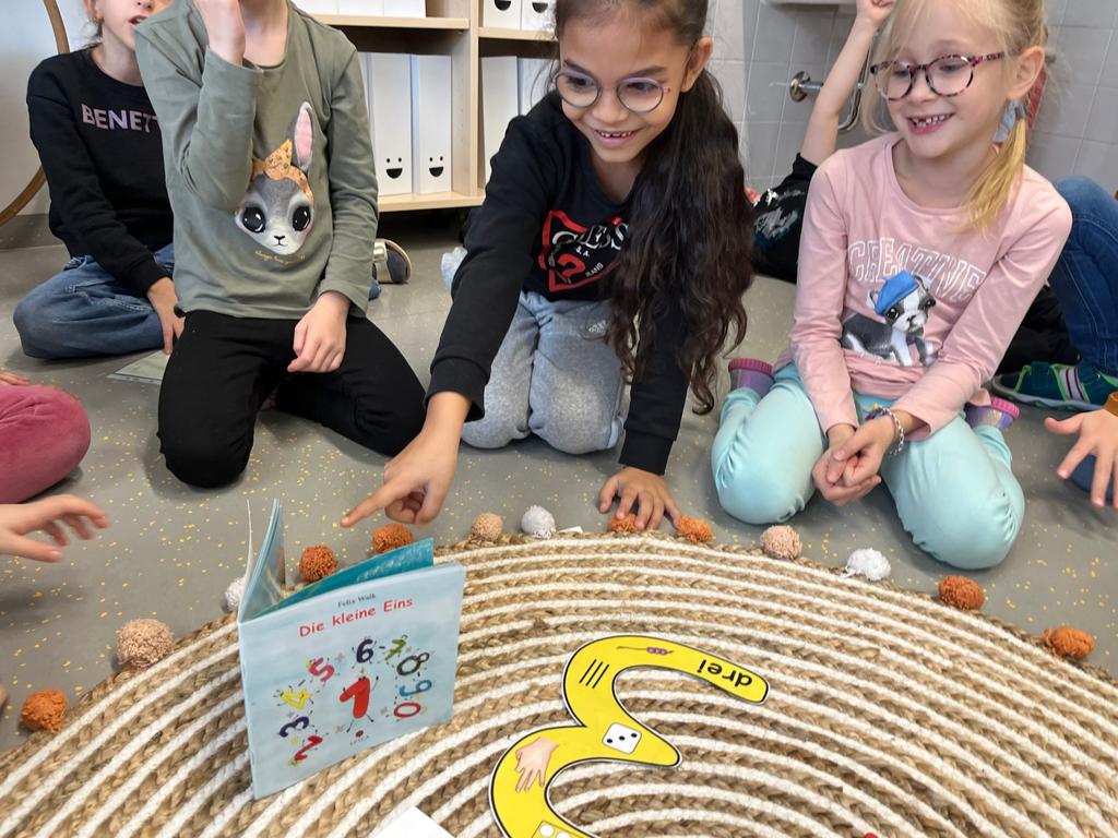 Mit der „Kleinen Eins“ erarbeiten wir uns die Zahlen. Thamar liest uns vor. Heute lernen wir die Drei. Die Ziffernrutsche mit Friedrich macht besonders viel Spaß.