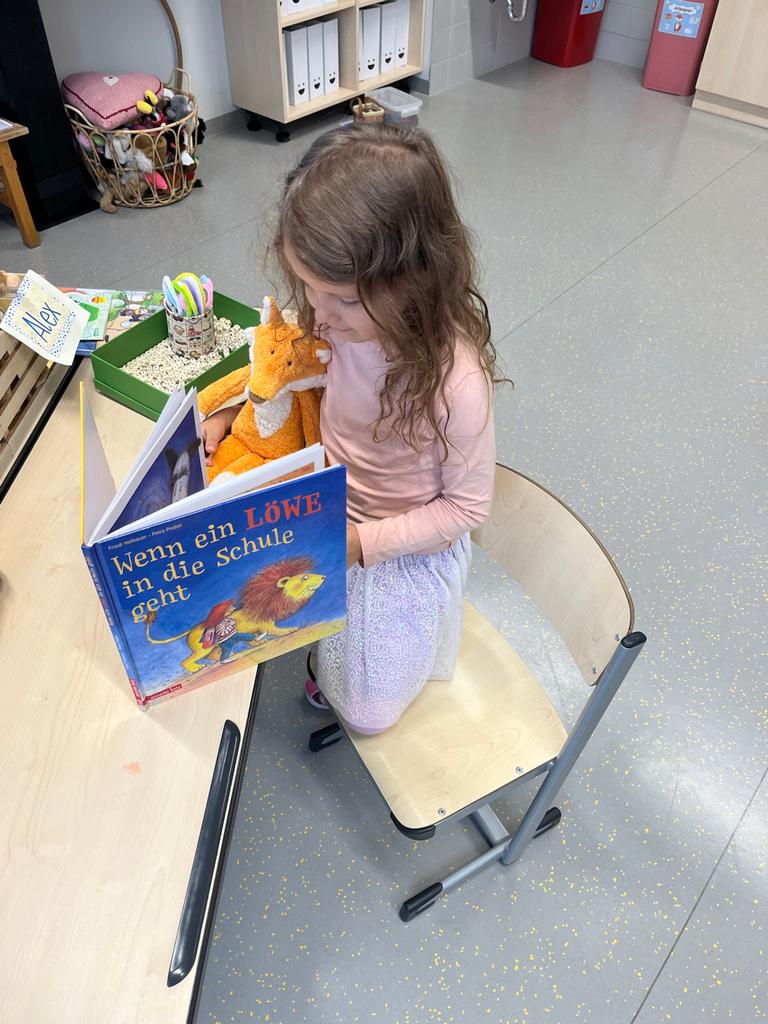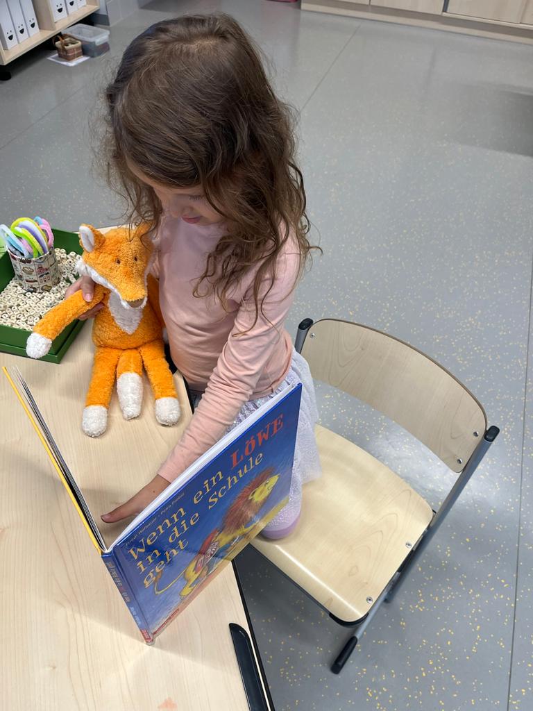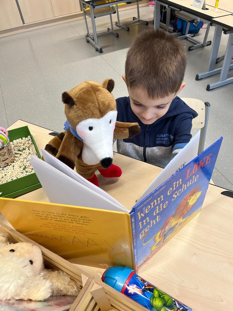 In der Pause wird dem Klassenfuchs „Ilvi“ und unserem „Fibeltier“ Friedrich fleißig vorgelesen.