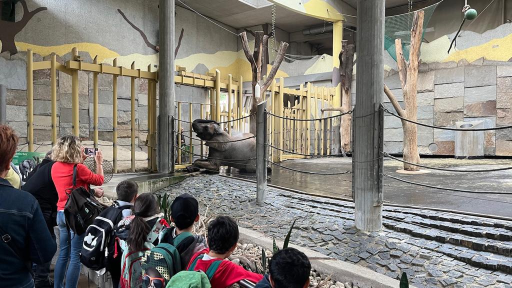 Bei unserem 2. Besuch im Tiergarten bekamen wir eine Führung und lernten viel über Giraffen, Elefanten, das Flusspferd und den Löwen.