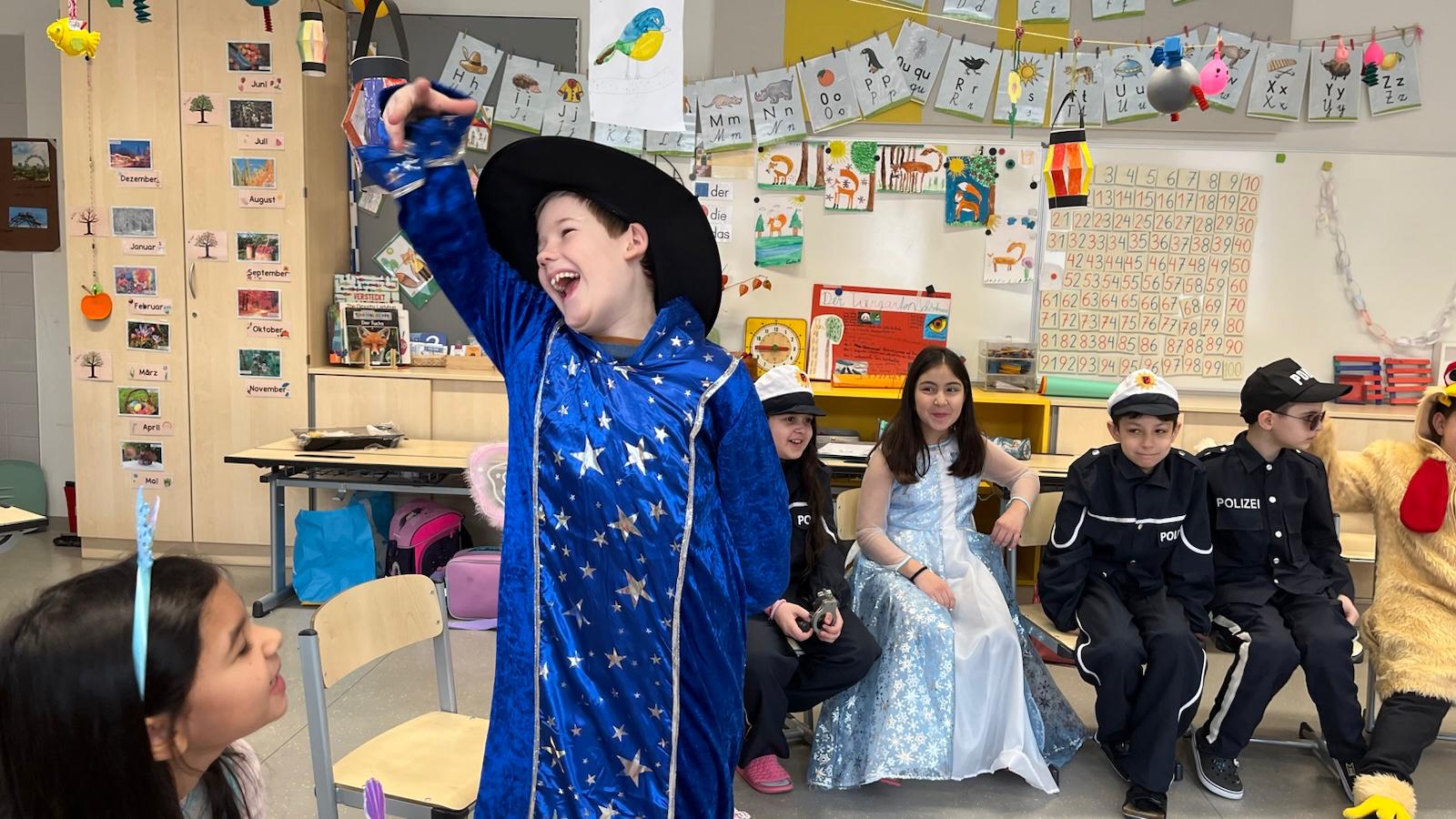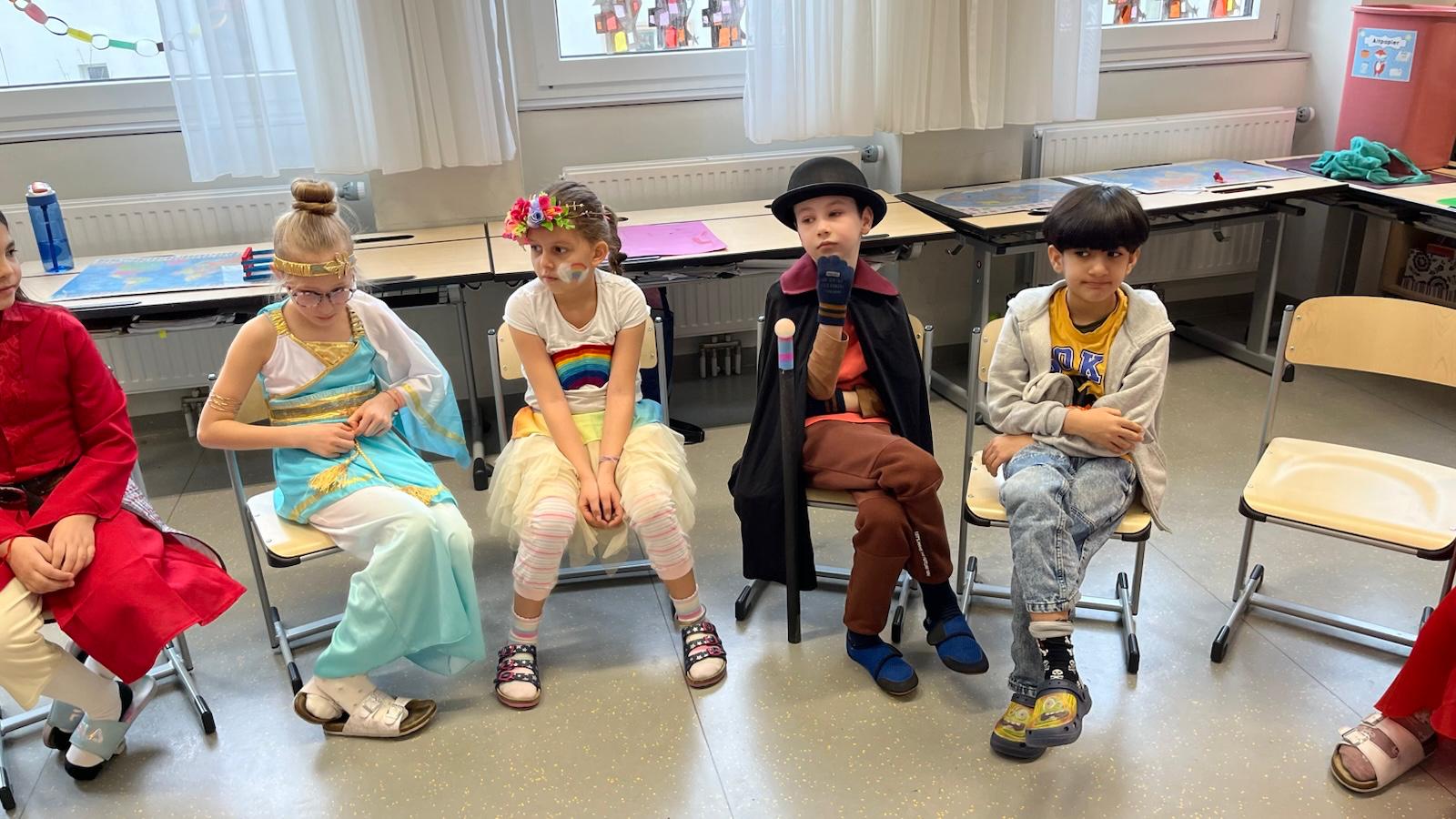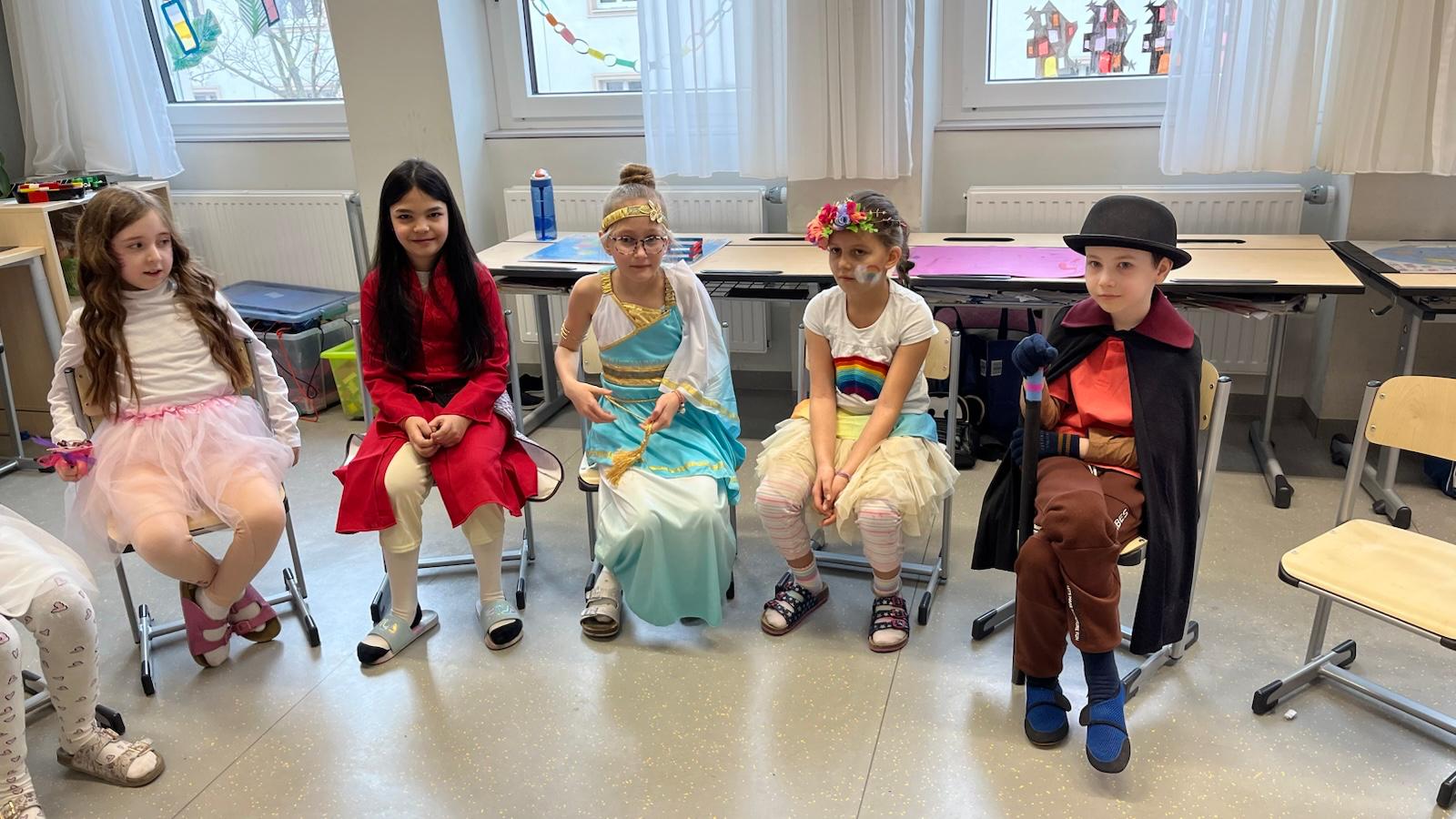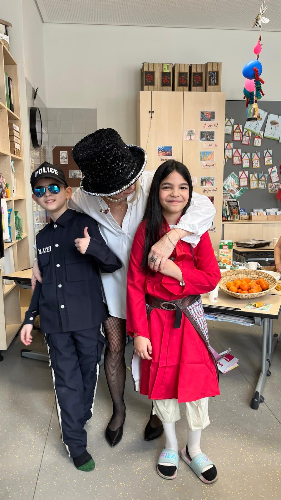 Februar 2025 …ein ausgelassenes Faschingsfest mit Prinzessinnen, einem Zauberer, Sherlok Holmes, Superman, ein paar Polizisten und einem Huhn.