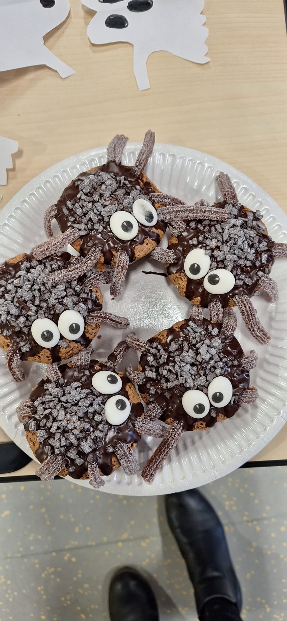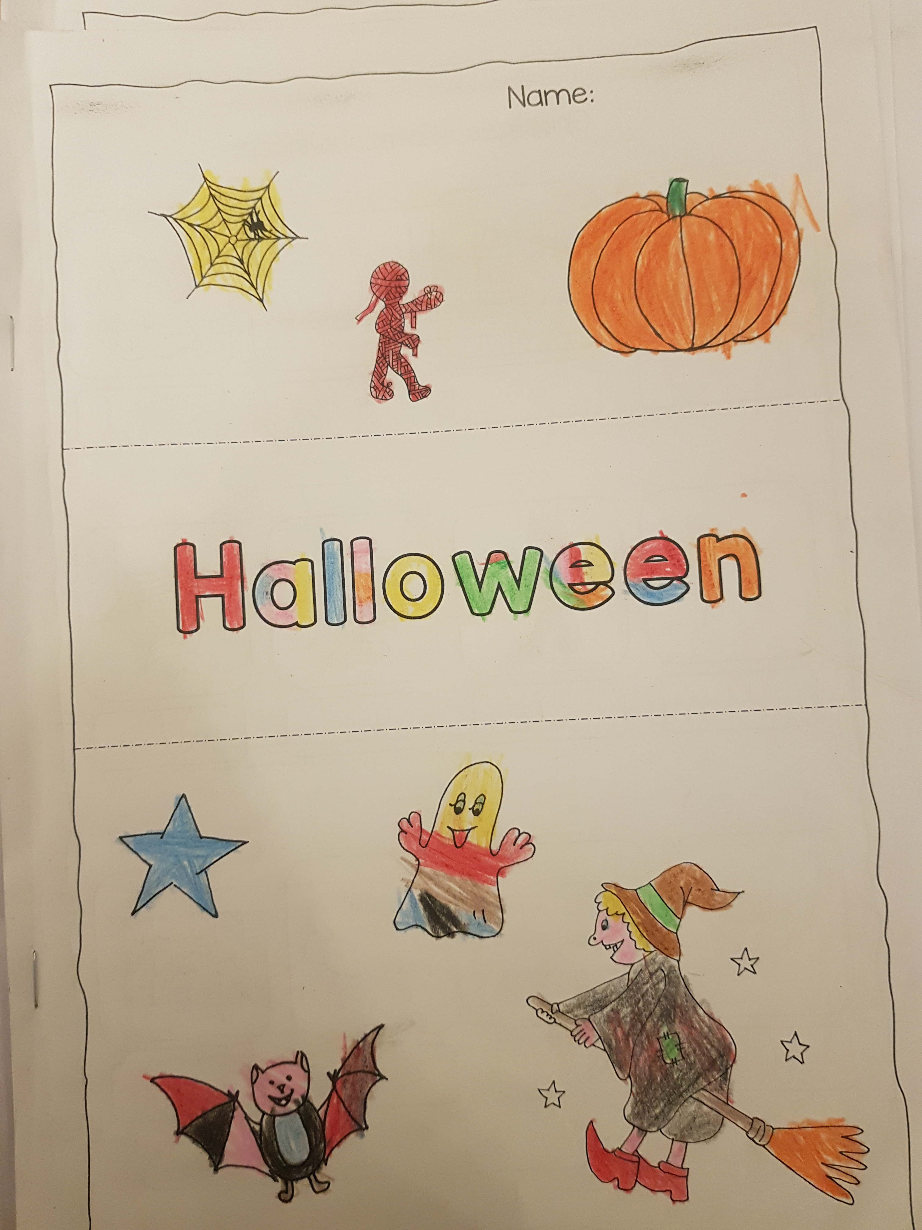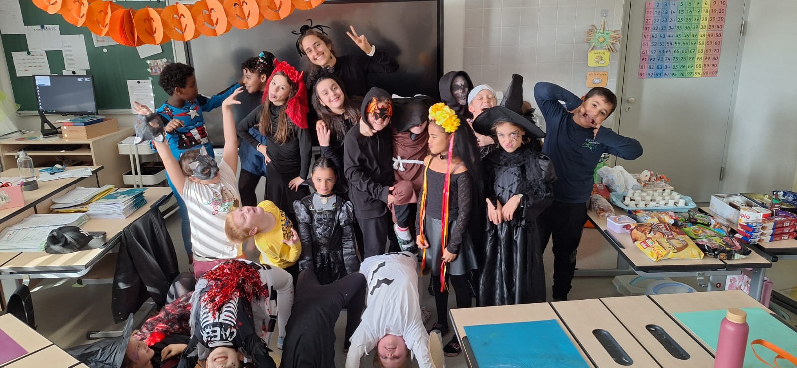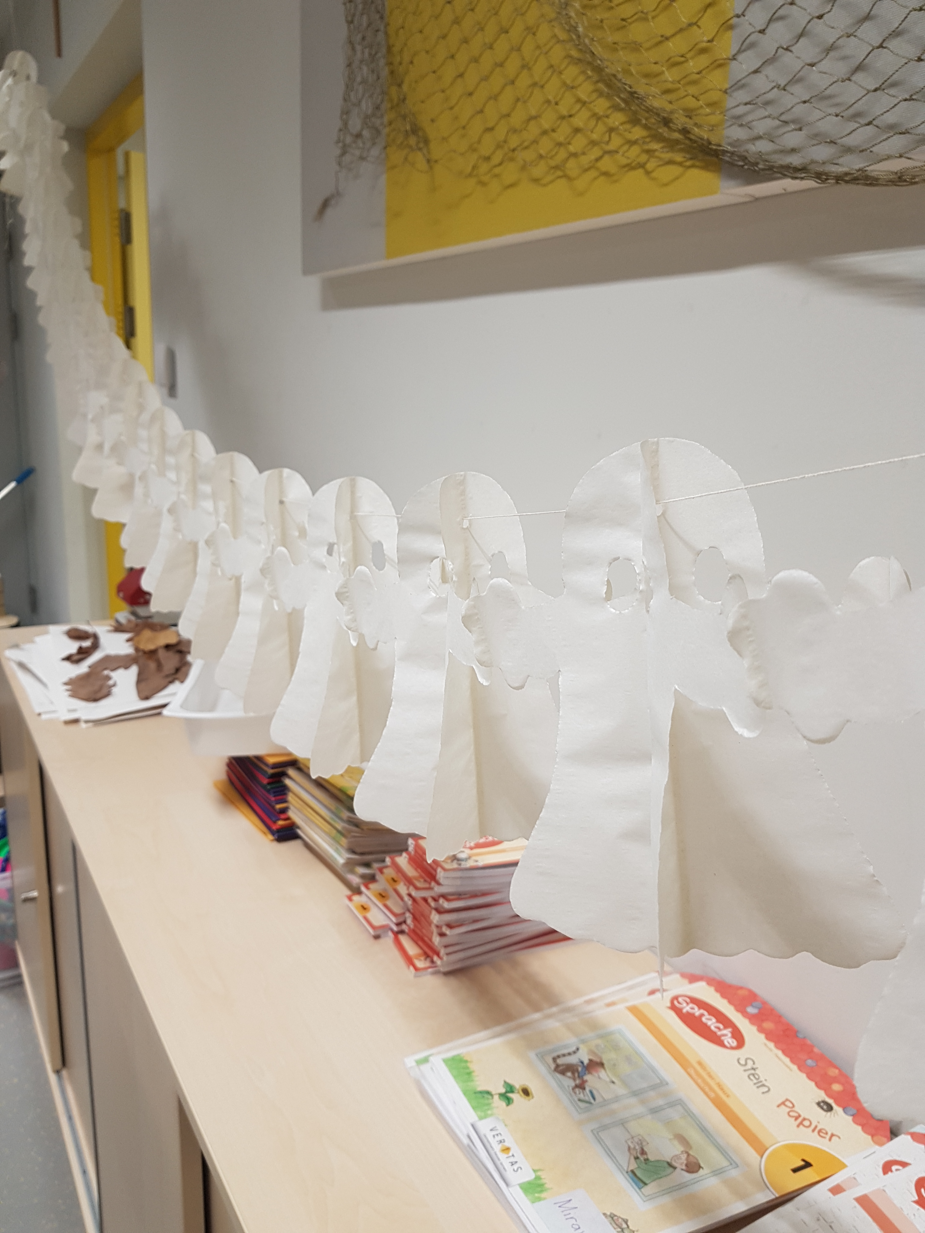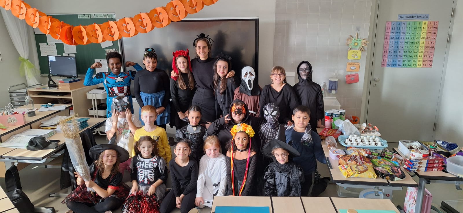 Wir haben heute einen Geburtstag und Halloween gefeiert. Dafür haben wir uns alle verkleidet, die Klasse dekoriert, super gruselige Geburtstagsmuffins gegessen und verschiedene Aufgaben in unserem Halloweenheftchen gelöst.
