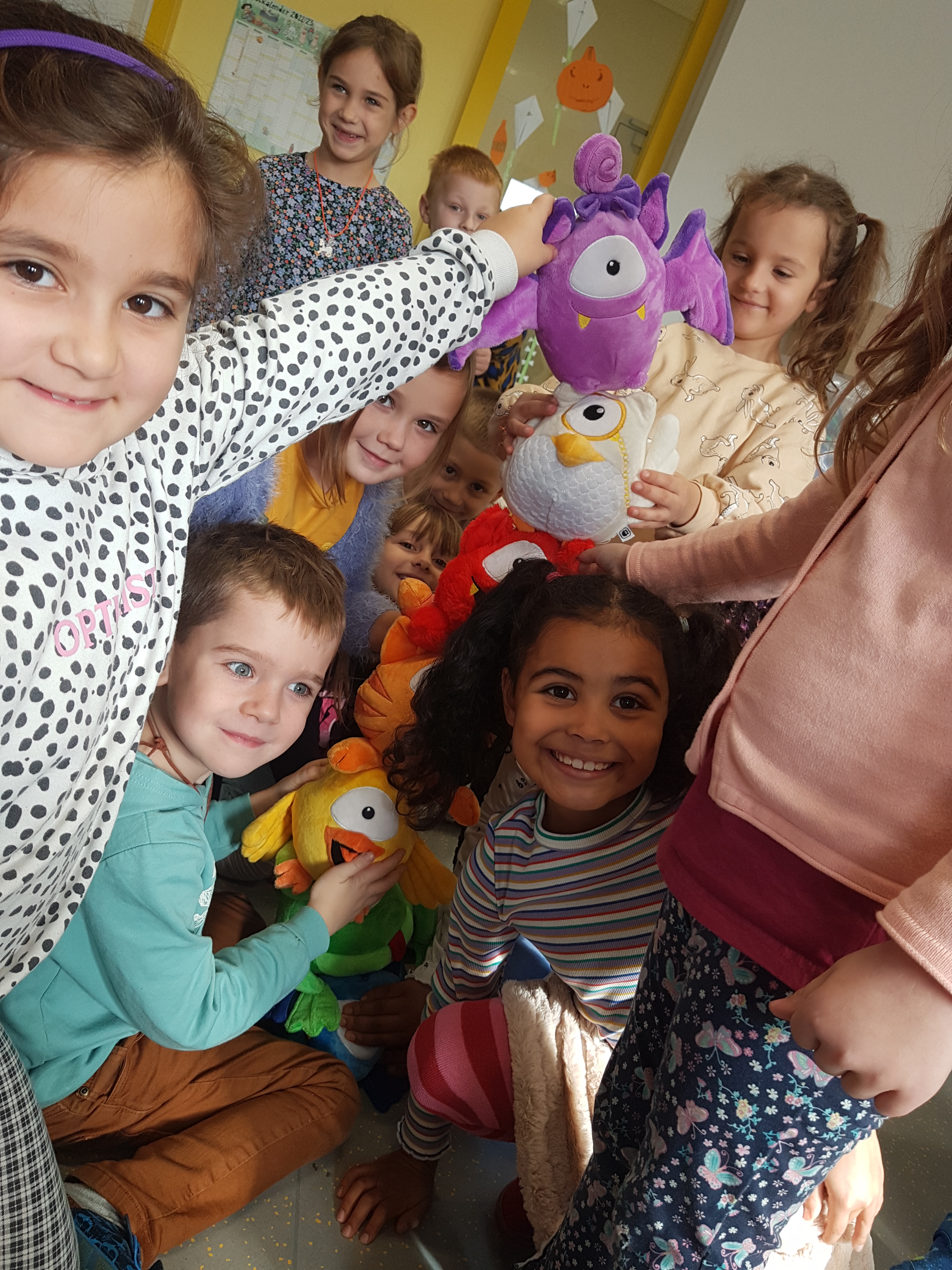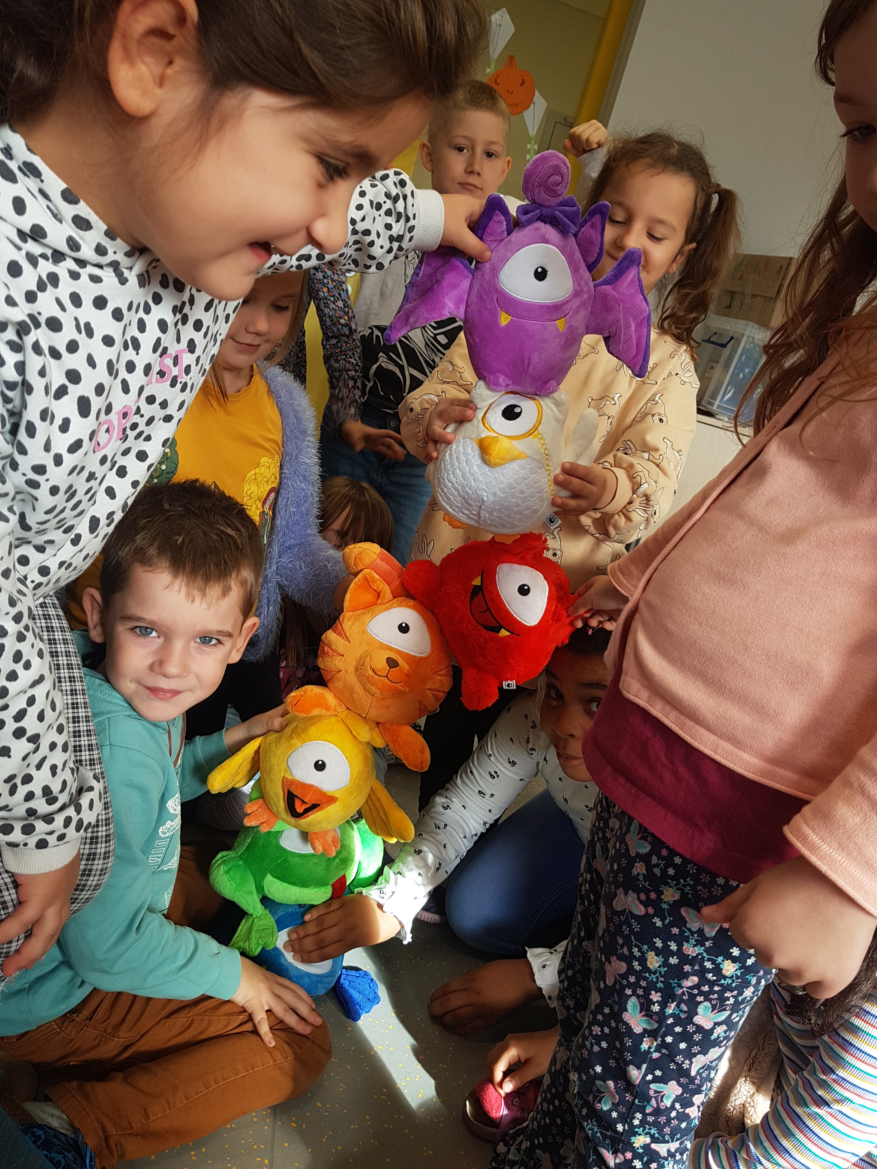 Die Monsterfreunde lieben wir sehr. Wir haben sie als Lernbegleiter auf unseren Tischen sitzen, singen mit ihnen und lernen viel Neues. Jedes Kind hat auch schon eine eigene tolle Monsterfreunde-Geschichte in sein Geschichtenheft gezeichnet.