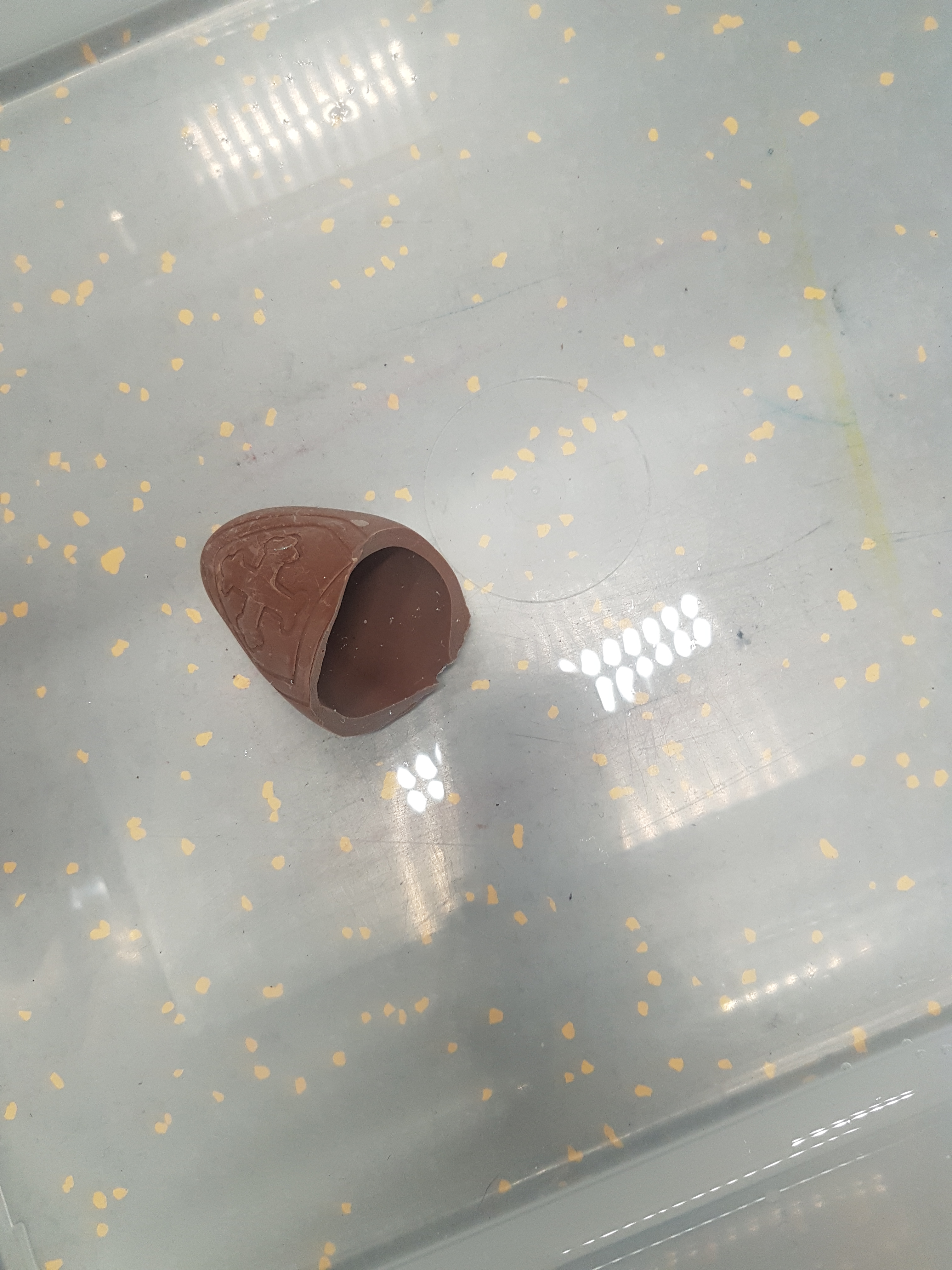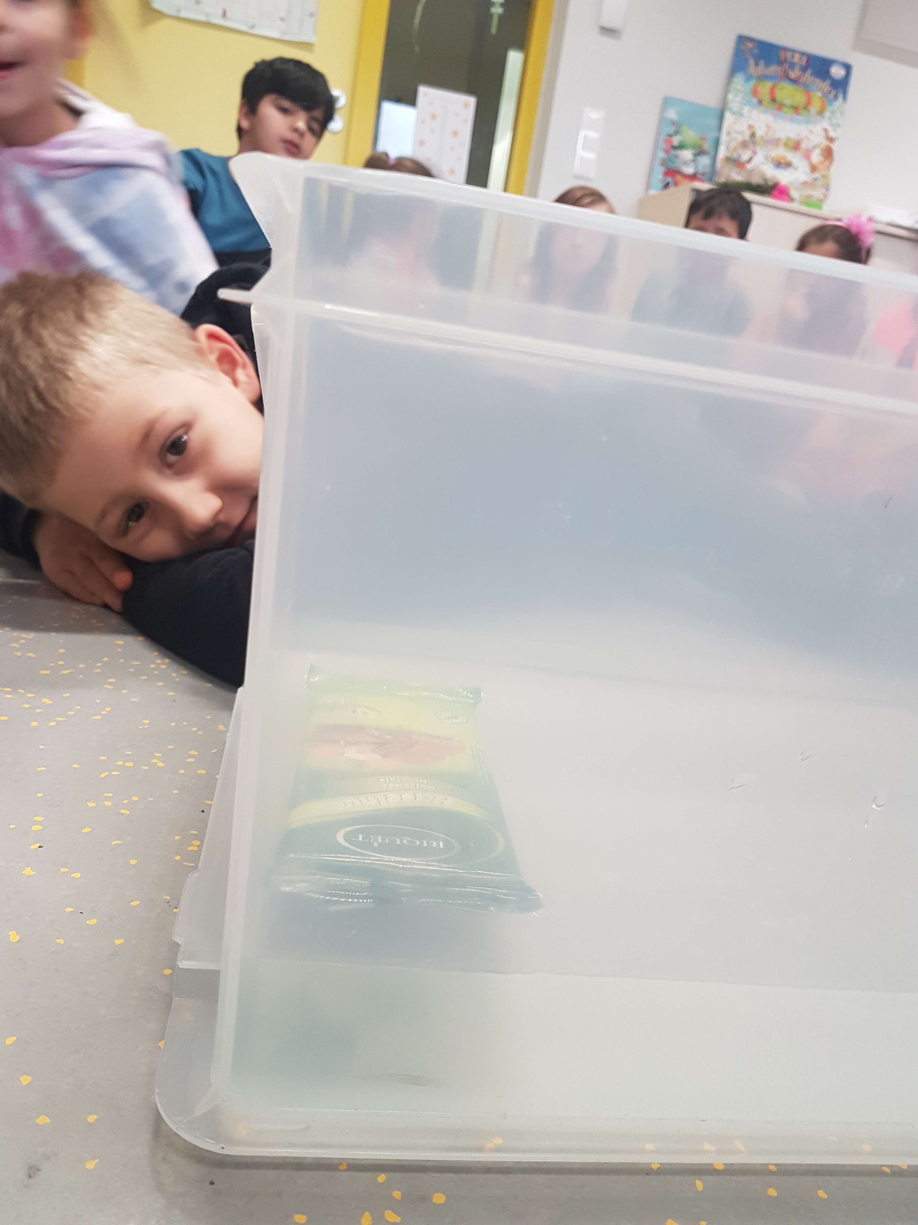 Hinter dem 6. Türchen steckte ein richtig spannender Versuch. Wir überlegten, ob ein Schoko-Nikolo und eine Schokoladentafel im Wasser schwimmen oder sinken. Wir besprachen unsere Vorannahmen im Sitzkreis und stimmten ab, welches Objekt sinken oder schwimmen wird. Die Kinder waren der Meinung, dass die Schokoladentafel schwimmt, weil sie so flach ist und der Nikolo untergehen wird, weil er dick und nicht so dicht eingepackt ist. Als wir die verpackten Versuchsobjekte in das Wasser legten, schwammen beide… Da die Kinder ganz verwundert waren und sich das nicht erklären konnten, probierten wir den Versuch mit einem ausgepackten Stück Schokolade. Dieses sank, zur Verwunderung der Kinder. Nach einigem Überlegen kamen die Kinder auf die richtige Lösung: Die verpackte Tafel Schokolade schwamm, da in der Verpackung Luft war und der Nikolo schwamm, da er innen hohl war und deswegen auch Luft beinhaltete. Um unsere „Luft-Theorie“ zu bestätigen, kamen die Kinder auf die Idee einen Teil des Nikolos mit Wasser zu füllen. Siehe da – er sank. Insgesamt verbrachten wir die ganze Stunde mit diesem Versuch, da die Kinder wahnsinnig motiviert waren, viele Ideen hatten und sich unglaublich freuten, die Lösung gefunden zu haben. Als Belohnung wurden unsere Versuchsobjekte verspeist. Wir freuen uns schon auf das nächste Experiment!