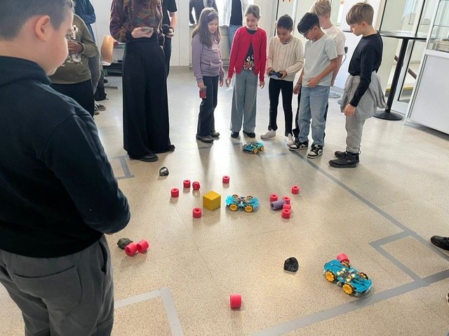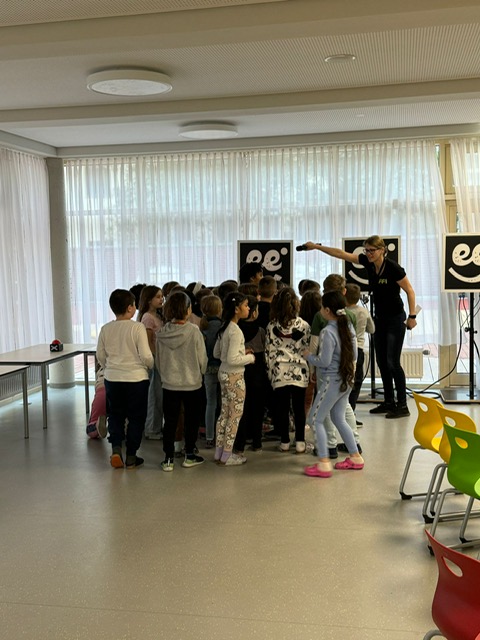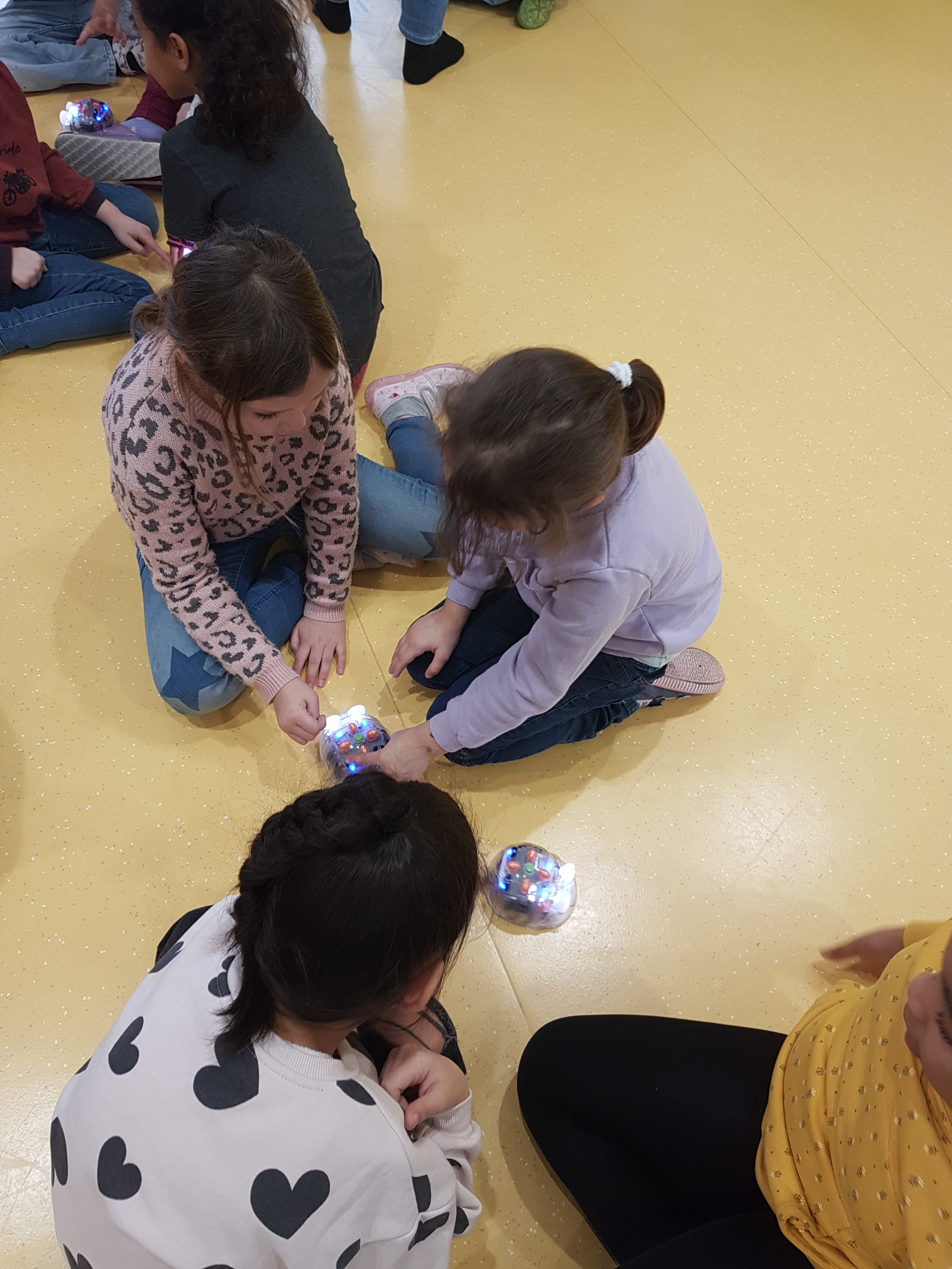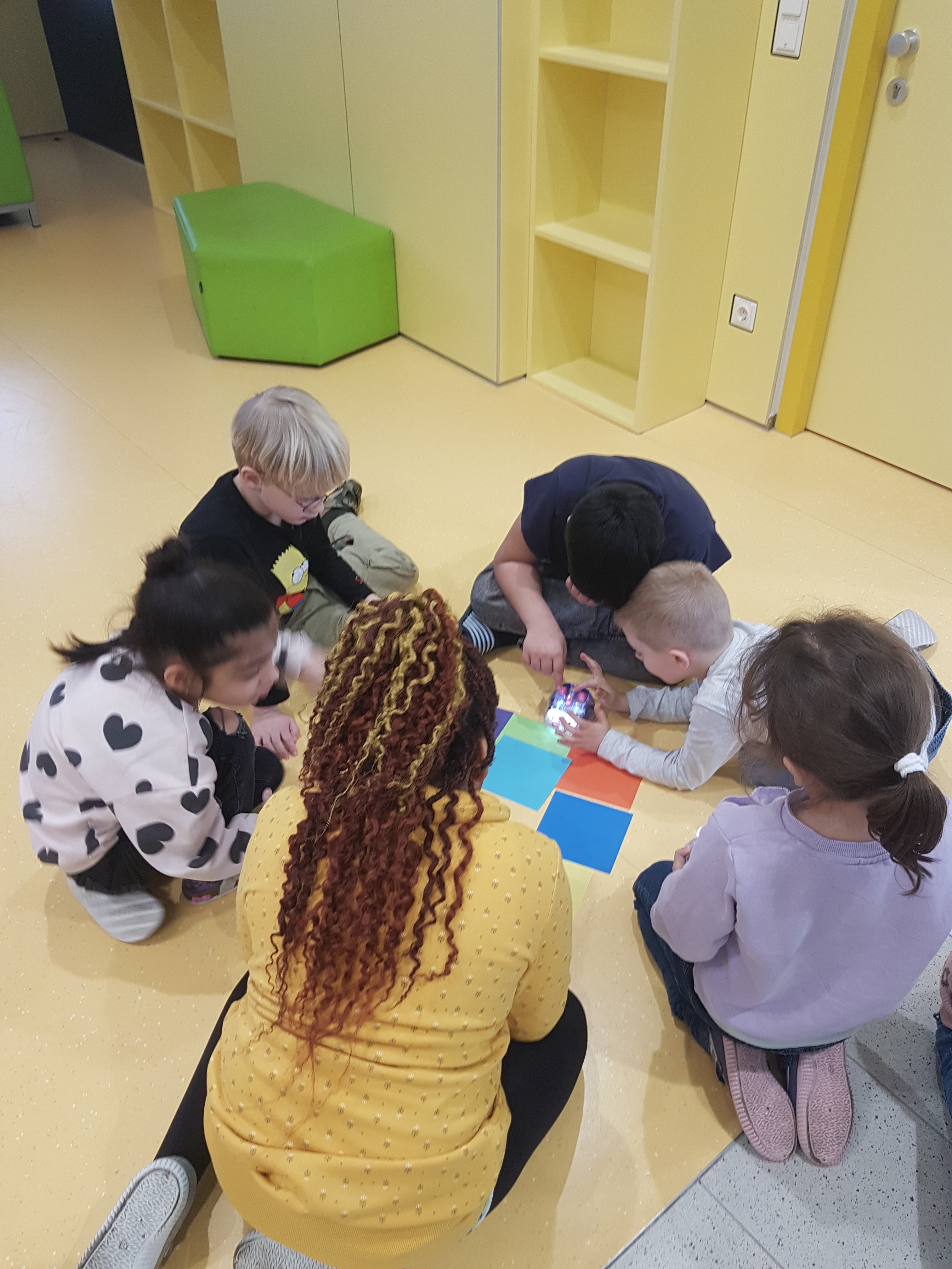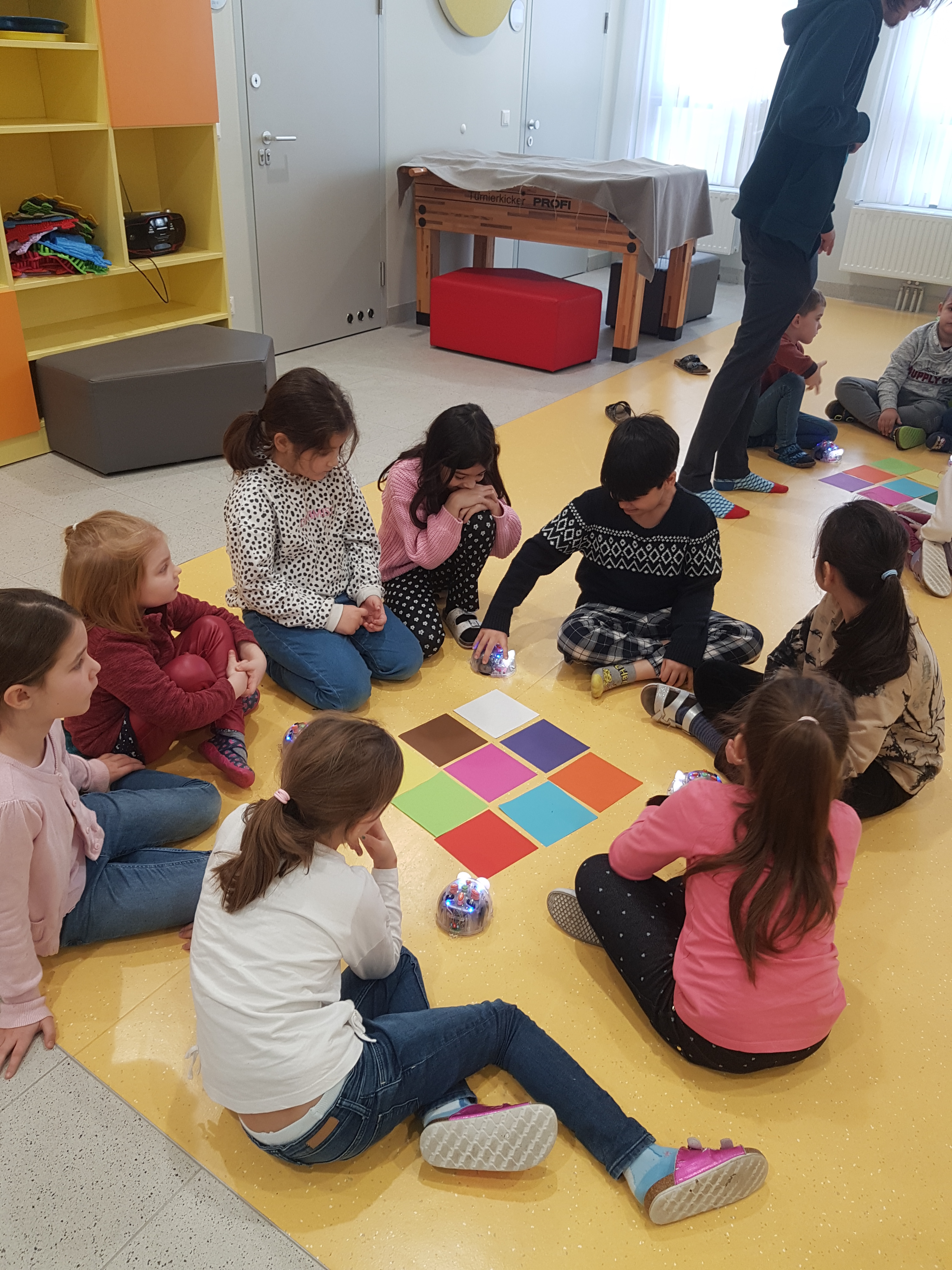 Heute haben wir die Bluebots kennengelernt. Wir hörten viel über Roboter und durften anschließend selbst unserem Bluebot Befehle geben. Das war gar nicht so einfach, machte aber großen Spaß.