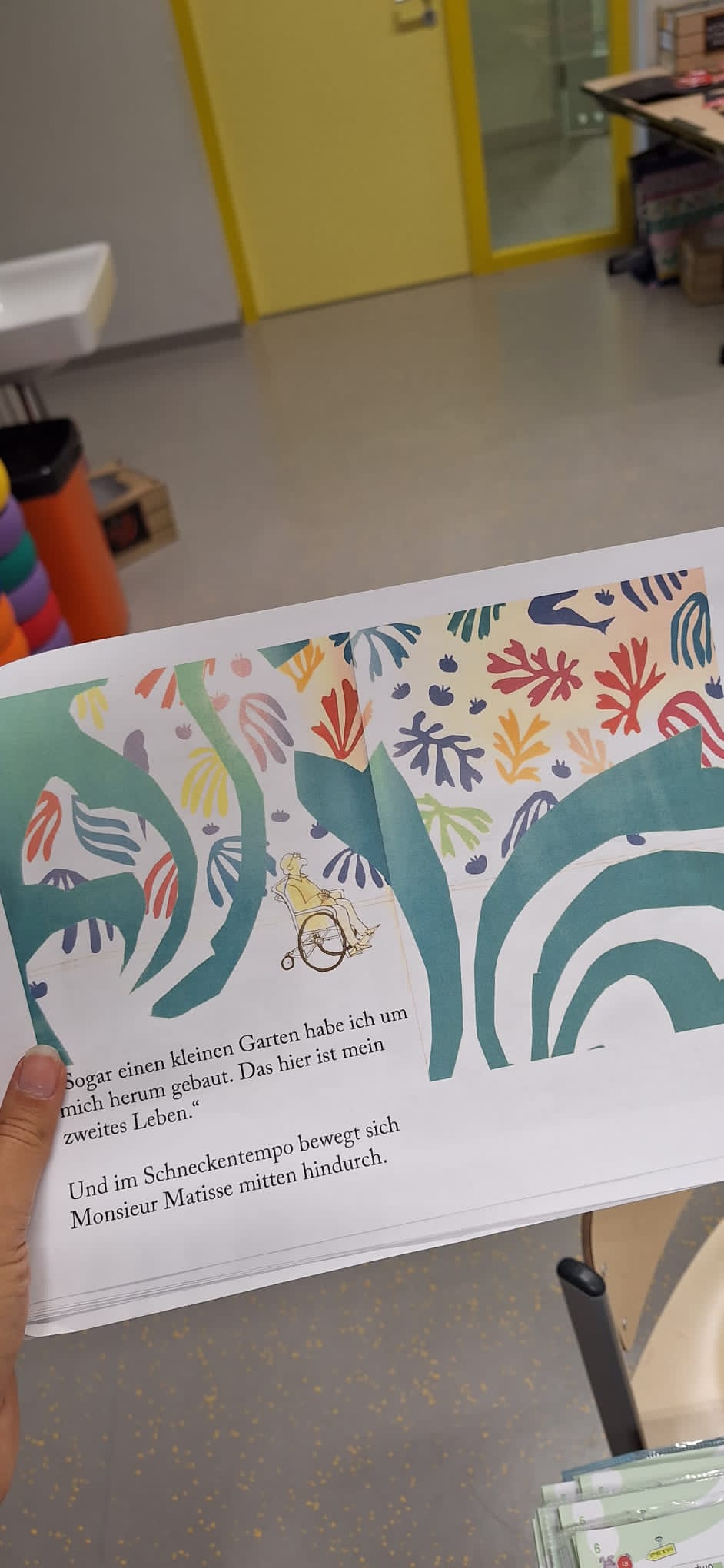 Wir haben heute das Buch “ Monsieur Matisse und seine fliegende Schere“ gelesen und die tollen Bilder bestaunt. Anschließend durften wir selber Kunstwerke zum Thema „Unterwasserwelt“ gestalten und dabei nur unsere Schere, einen Kleber und buntes Papier verwenden. Um so richtig in Stimmung zu kommen, hat uns ein Unterwasservideo mit Entspannungsmusik auf unserer Tafel begleitet.