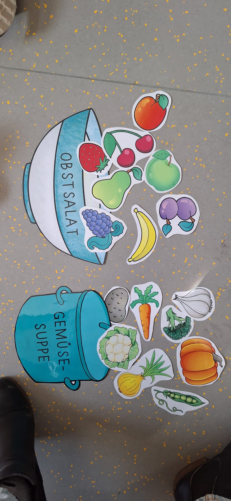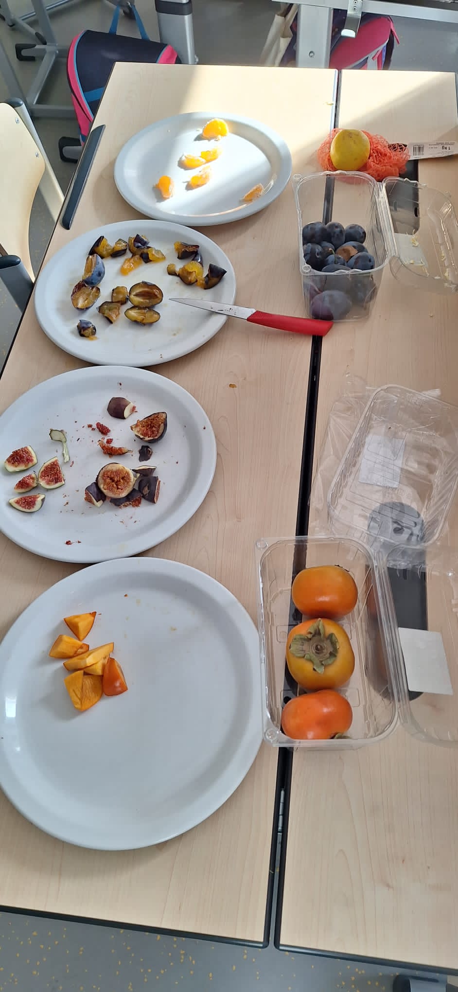 Wir haben uns diese Woche mit Obst und Gemüse beschäftigt. Hierfür haben wir mit Bildern eine Gemüsesuppe und einen Obstsalat gelegt, verschiede Früchte verkostet (Mandarinen, Feigen, Zwetschken, Kaki), in Deutsch und Mathematik Aufgaben passend zum Thema bearbeitet (Leseaufgaben, Hunderterfeld, Kreuzworträtsel) und zum Abschluss einen Rechenspaziergang durch den Klassenraum gemacht.