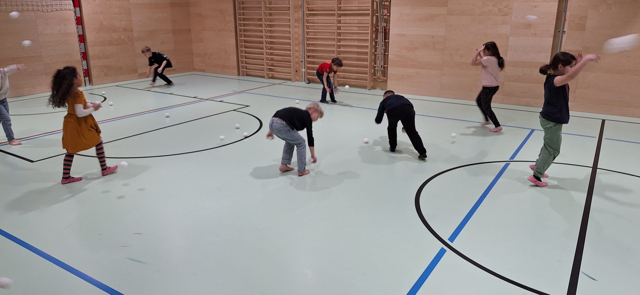 Wir lieben eine Schneeballschlacht! Da in Wien leider nicht so oft Schnee liegt, machen wir sie manchmal im Turnsaal, um uns ein wenig auszupowern. Die Schneebälle aus Watte fühlen sich erstaunlich echt an und bereiten uns viel Freude!
