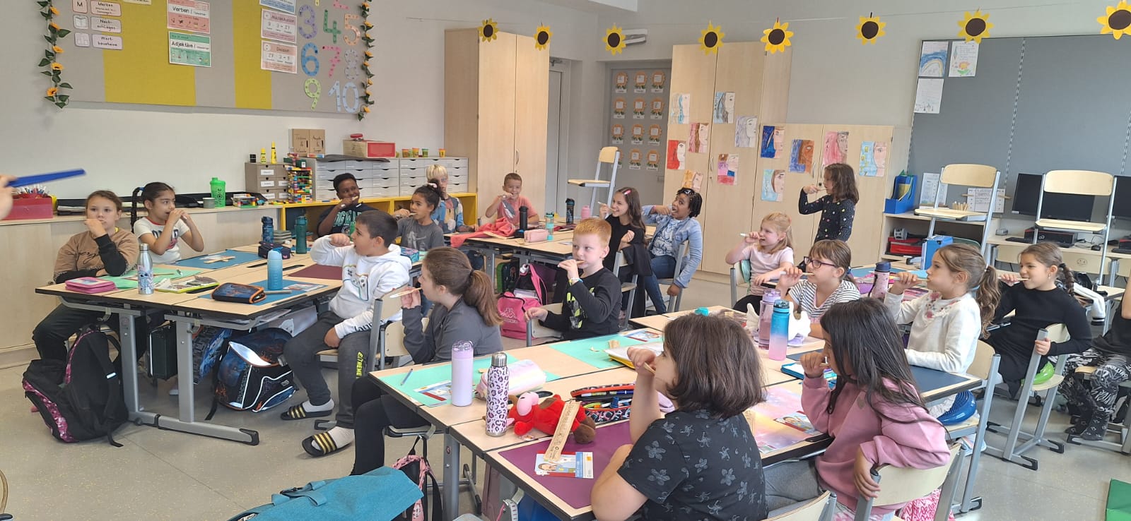 Heute wurde uns der Science Club vorgestellt. Um den Kindern zu zeigen, wie spannend Experimente sind, durften sie eigene Regenbogenbrillen basteln. Die Brillen waren faszinierend und alle hatten viel Spaß.