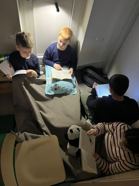 Beim Österreichischen Vorlesetag gab es in der 4D ein (Vor)Lesekino. Eingekuschelt mit Decken, Taschenlampen und Popcorn konnten wir spannende und aufregende Geschichten lesen.