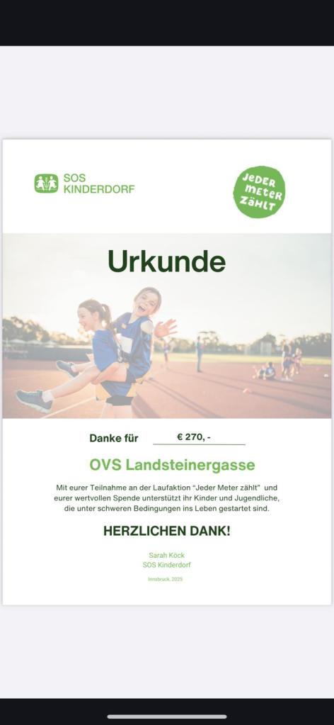 Jeder Meter zählt – Die 2A und die 4B laufen im Rahmen der Wiener Ehrenamtswoche für das SOS Kinderdorf.