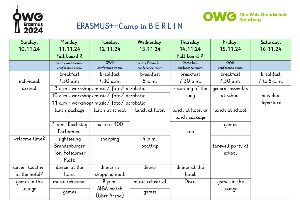 Vom 10. bis 16. November 2024 hatten 14 Kinder der 4b die Gelegenheit, an einem spannenden Erasmus-Camp in Berlin teilzunehmen. Unter dem Motto „Beyond Pink and Blue: A Journey to Gender Equality“ trafen sie auf Schülerinnen und Schüler aus Frankreich, Spanien und Deutschland. Gemeinsam erlebten die Kinder eine Woche voller Highlights, die Bildung, Kreativität und Kultur miteinander verband.