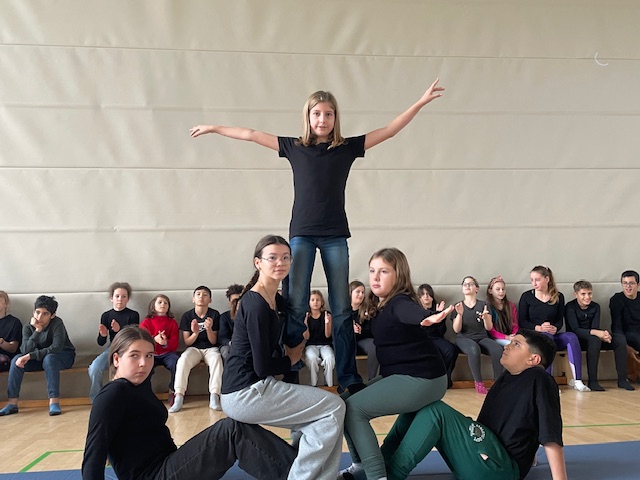 Den krönenden Abschluss bildete eine Feier in der Otto-Wels-Grundschule bei der die Kinder ihre neu gewonnenen Freundschaften feiern, ihre gelernten Akrobatik Übungen und den Song präsentieren konnten.