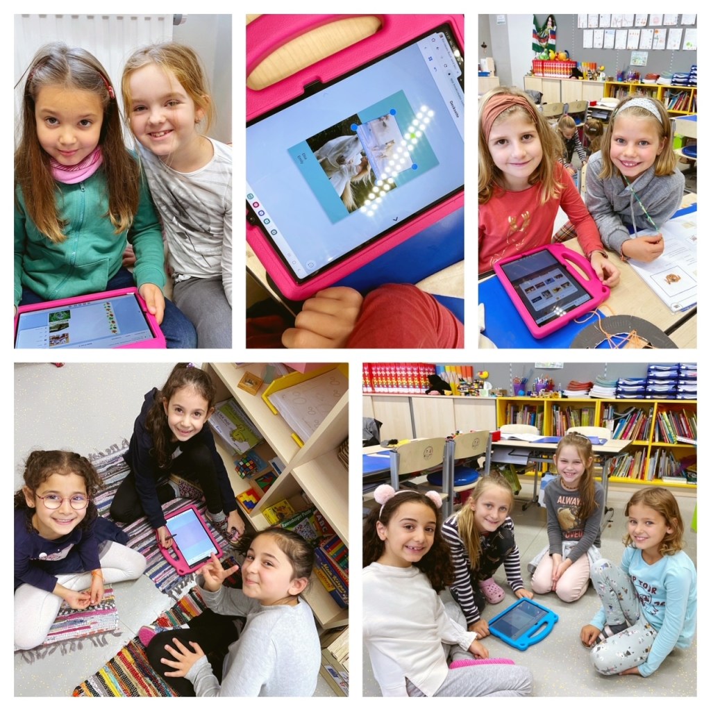 Nachdem wir uns eine Woche lang recht ausführlich mit Haustieren beschäftigt haben, kamen unsere Tablets zu Einsatz. Wir erstellten in Kleingruppen eBooks zu den verschiedensten Haustieren. Mit dem Book Creator lassen sich multimediale eBooks erstellen. Neben Texten können Zeichnungen, Fotos, Grafiken, Videos und Audioinhalte in ein eBook eingebettet werden. Aus dem Programm heraus lassen sich Audioaufnahmen erstellen, die in das eBook eingefügt werden. Auf diese Art und Weise können Bild- und Textinhalte von Schüler*innen erläutert und kommentiert werden. Die Einsatzmöglichkeiten sind äußerst vielfältig.
