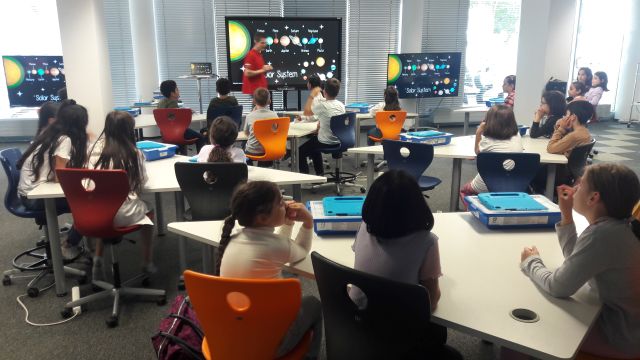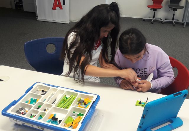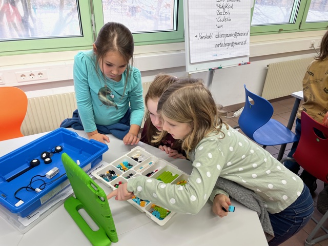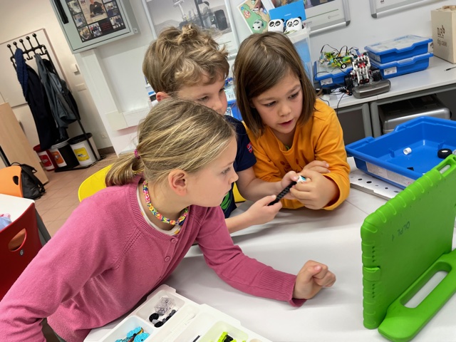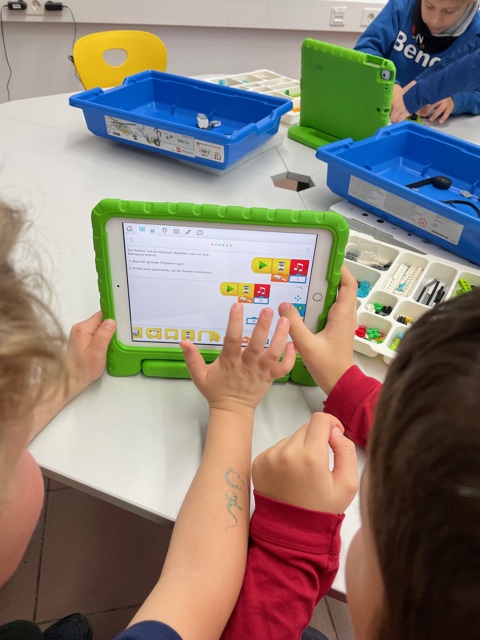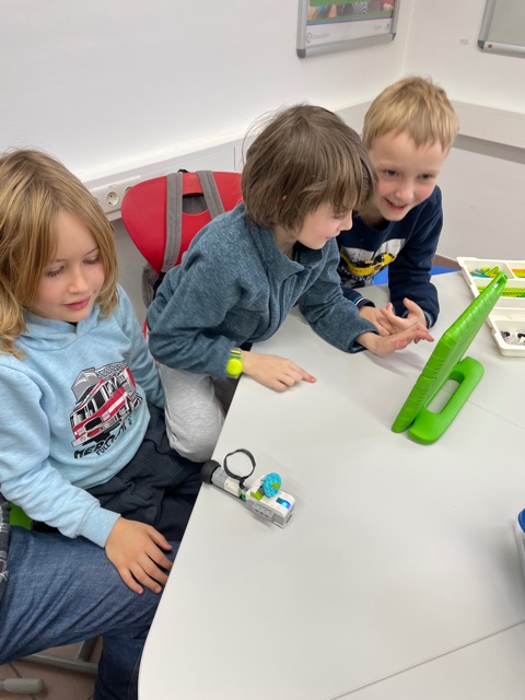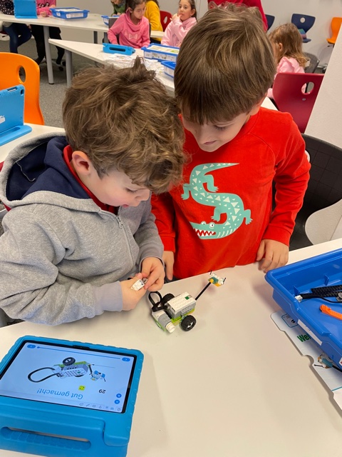 Zuerst erfuhren wir sehr spannende Dinge über den Mars und danach arbeiteten die Kinder in Zweierteams mit den Lego WeDo 2.0 Robotik Boxen. Die erste Aufgabe war es die Forschungssonde Milo mit Hilfe einer Anleitung zu bauen. Im nächsten Arbeitsschritt wurde Milos Bewegungssensor gebaut und zum Schluss bekam er noch einen Neigungssensor. Die Kinder waren einfach spitze und konstruierten und programmierten wie richtige Profis.