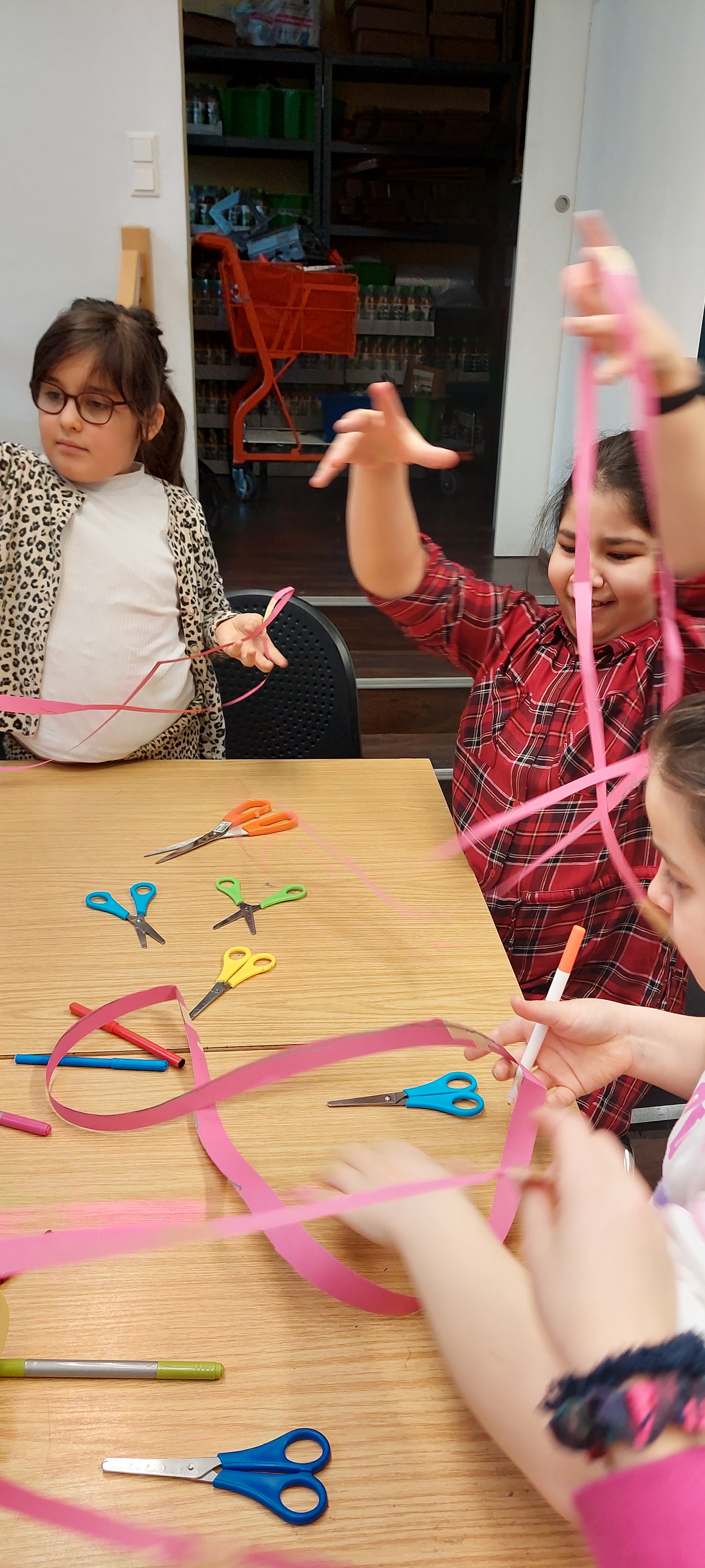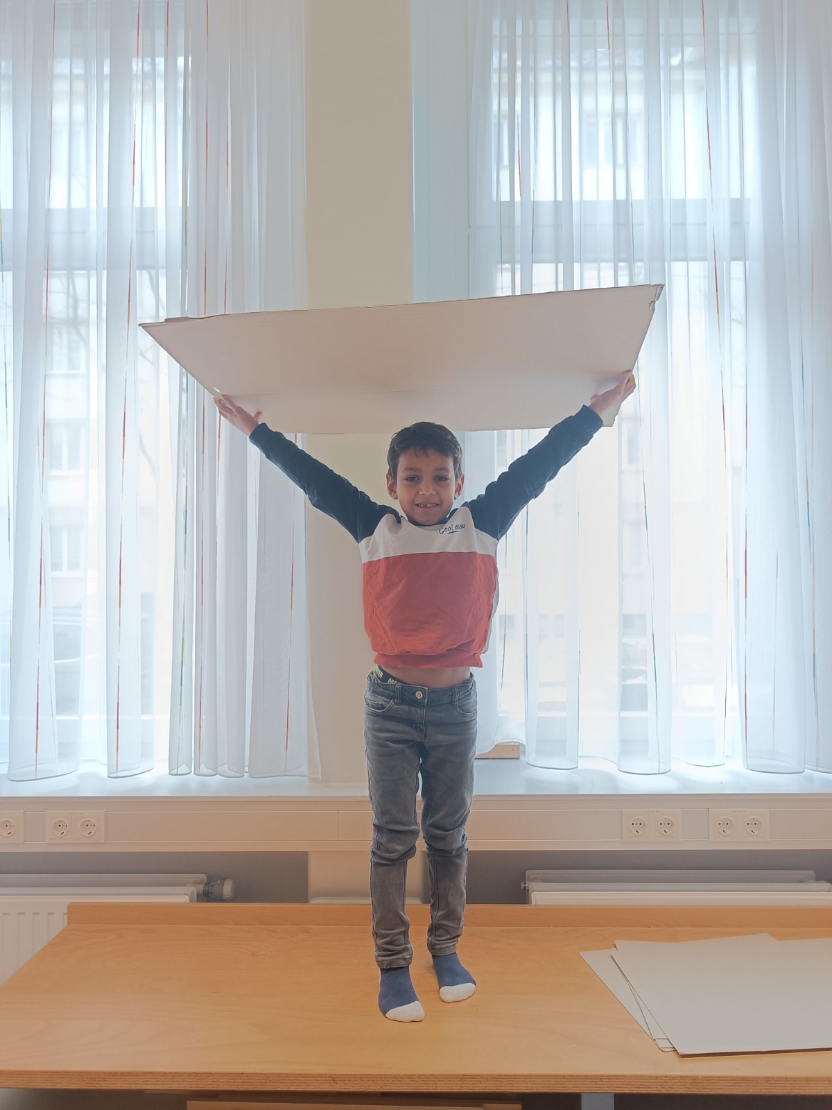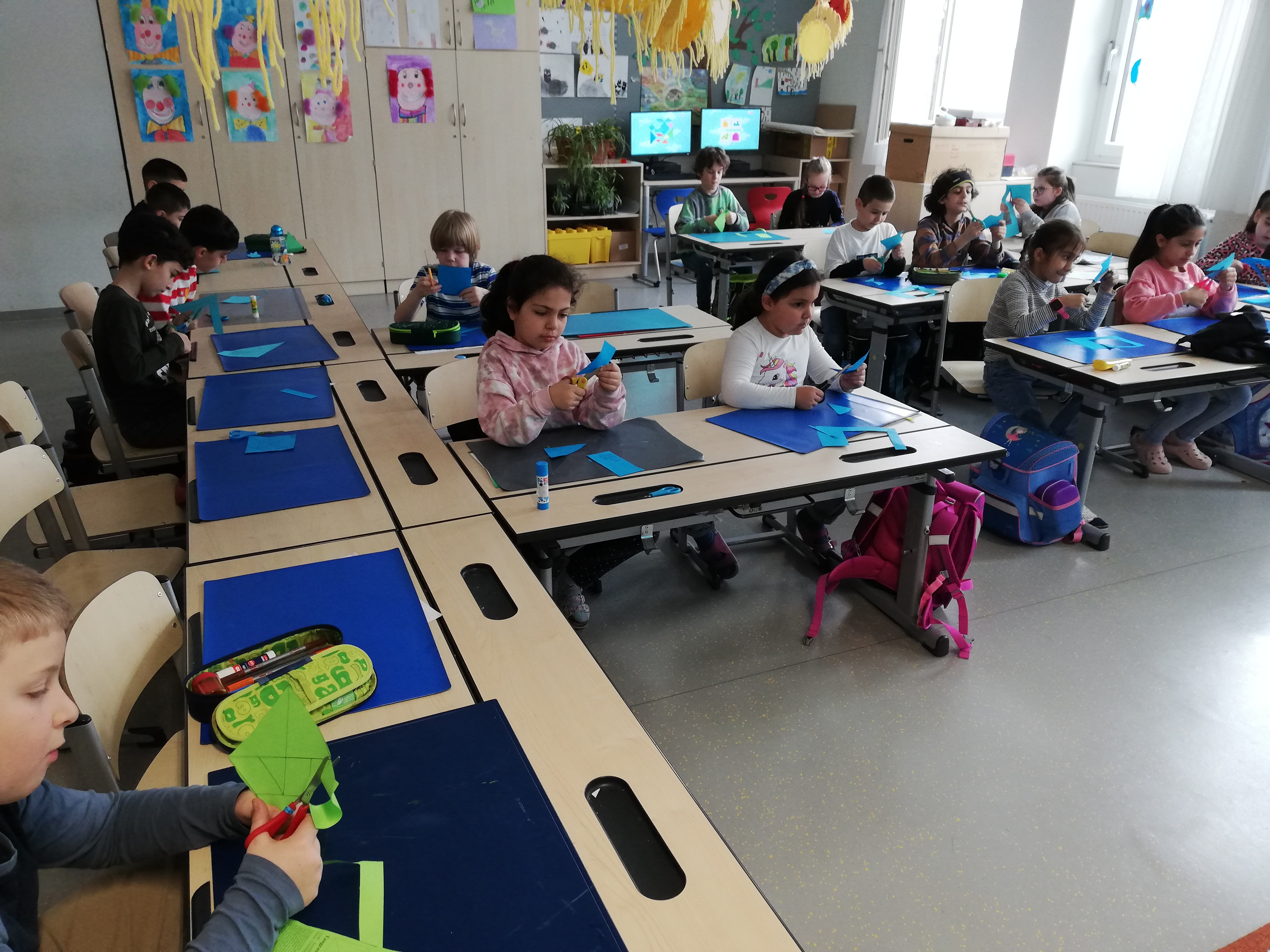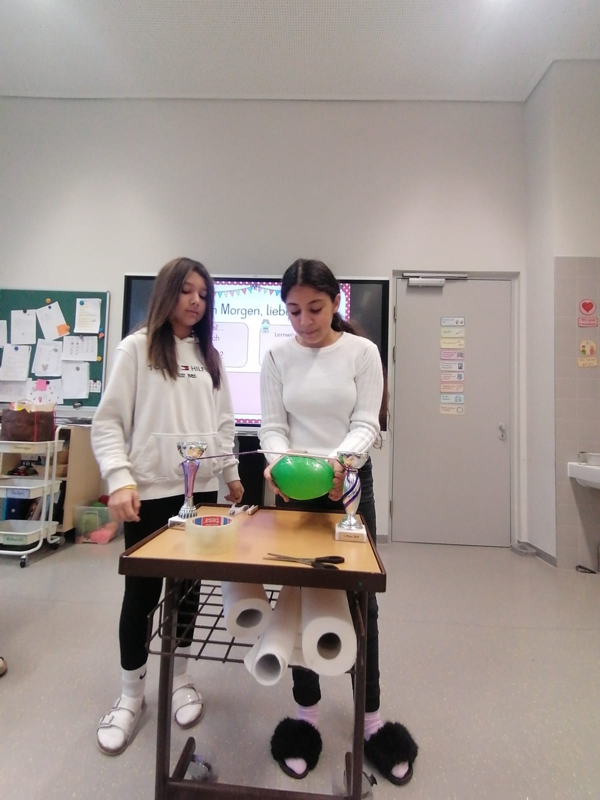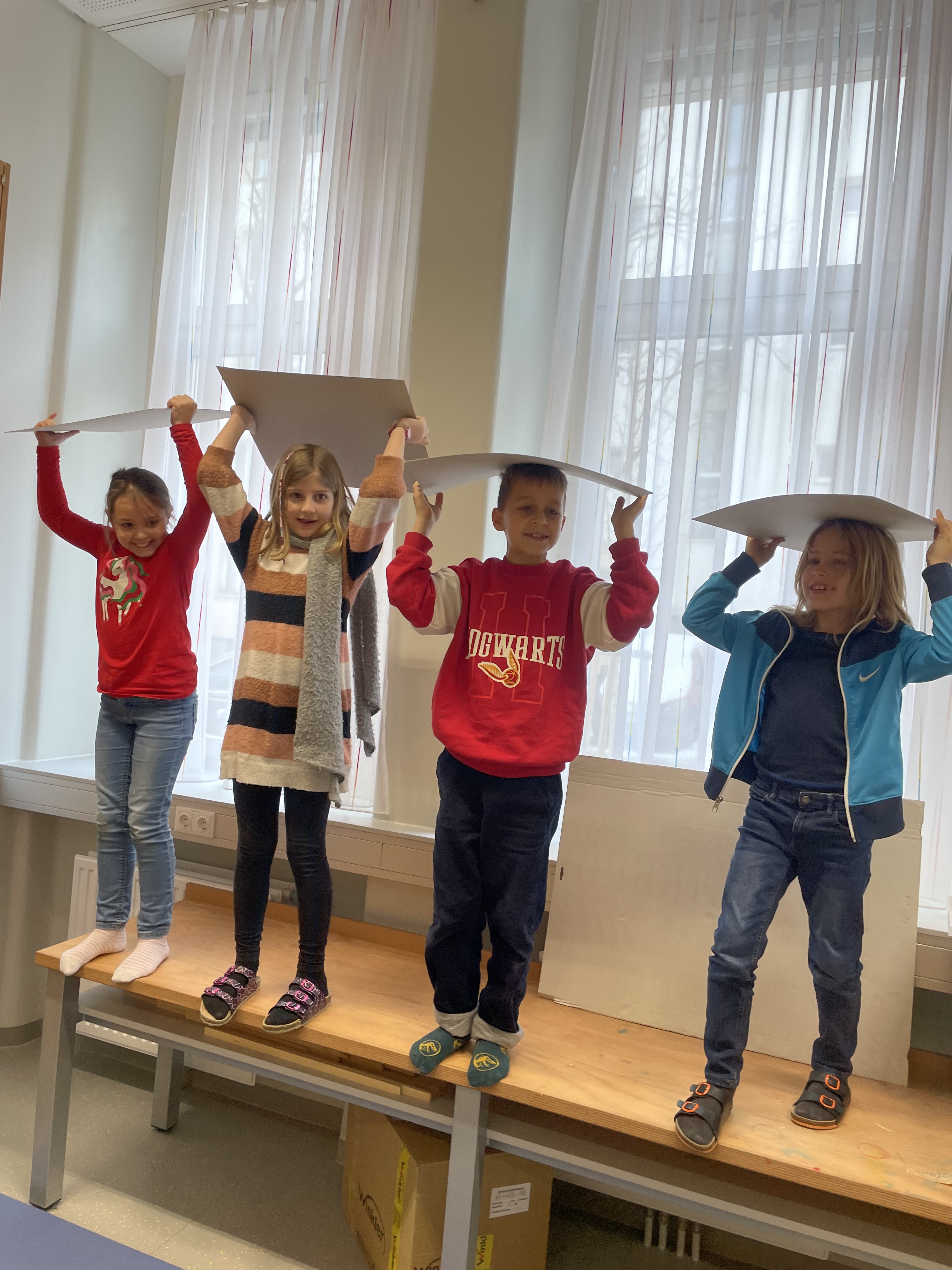 Die Kinder haben im Werkunterricht ihre erste Blasrakete aus Tonpapier mit Hilfe einer Anleitung gebastelt. Natürlich mussten alle am Ende auch ausprobieren, ob und wie weit die Rakete wirklich fliegen kann.