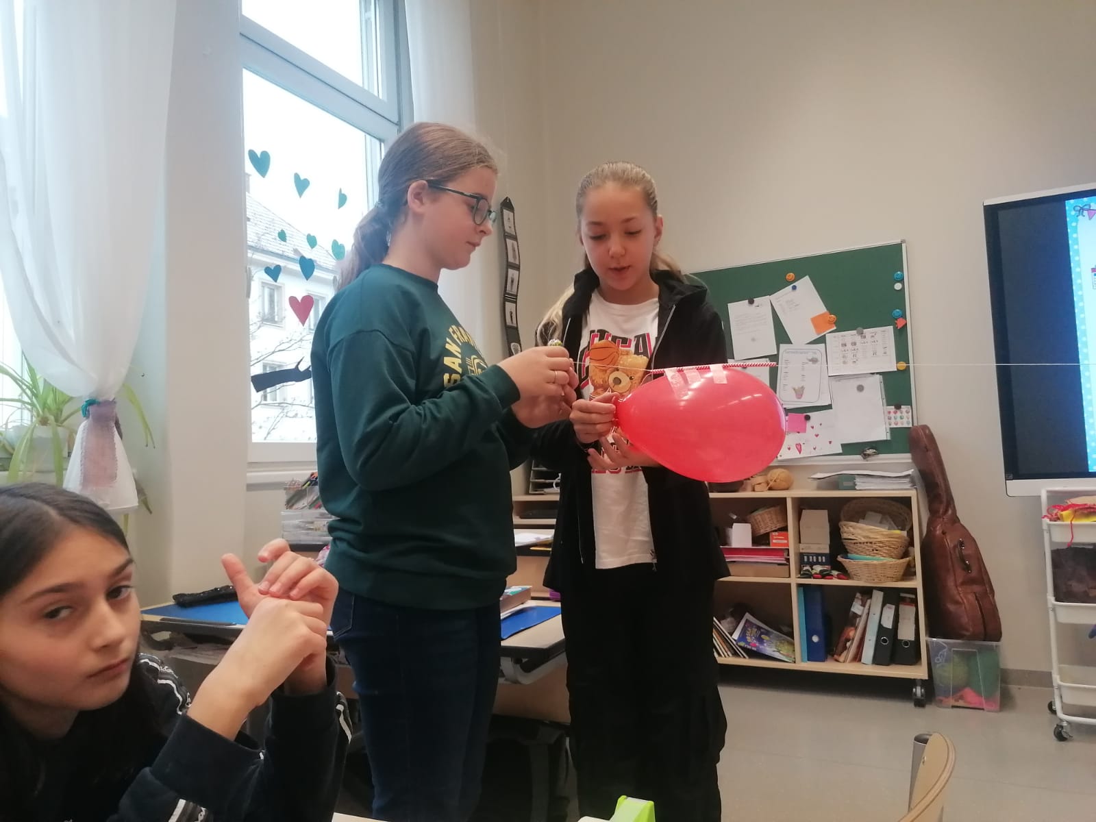 Den Höhepunkt unseres Themas bildeten aber die Experimente, welche die Kinder vorführten. So stellten die Kinder den Rückstoßeffekt vor, der auch im Video ersichtlich ist. Wir erfuhren, dass der Raketenantrieb durch diesen Effekt von den Kraken abgeschaut wurde.