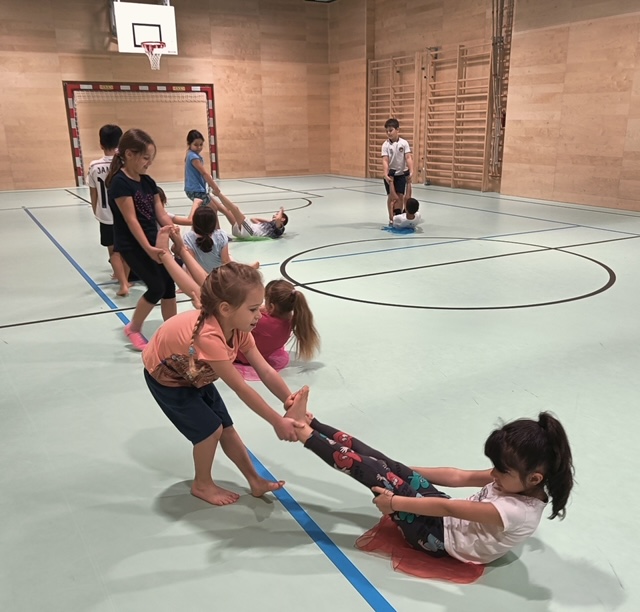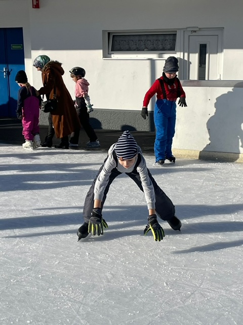 Ziehen, rutschen, schieben, gleiten,… – wir erforschen Bewegungsgrundformen mit dem eigenen Körper. Wie ist das mit der Kraft? Muss ich mich vorbeugen oder zurücklehnen? Soll ich die Arme strecken oder abbiegen? Welche Muskeln brauche ich? Vieles haben wir ausprobiert und es hat jede Menge Spaß gemacht. Es war aber auch ganz schön anstrengend. Zuerst im Turnsaal und dann auf der Eisfläche 😊.