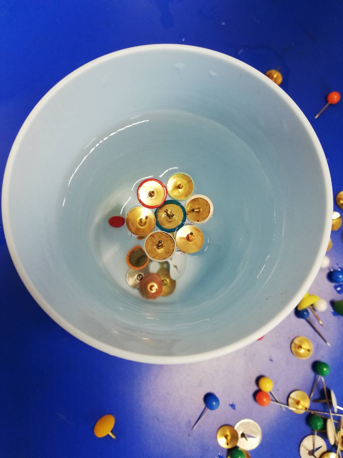 - Schwimmen Metallklammern und Reißnägel auf der Wasseroberfläche?