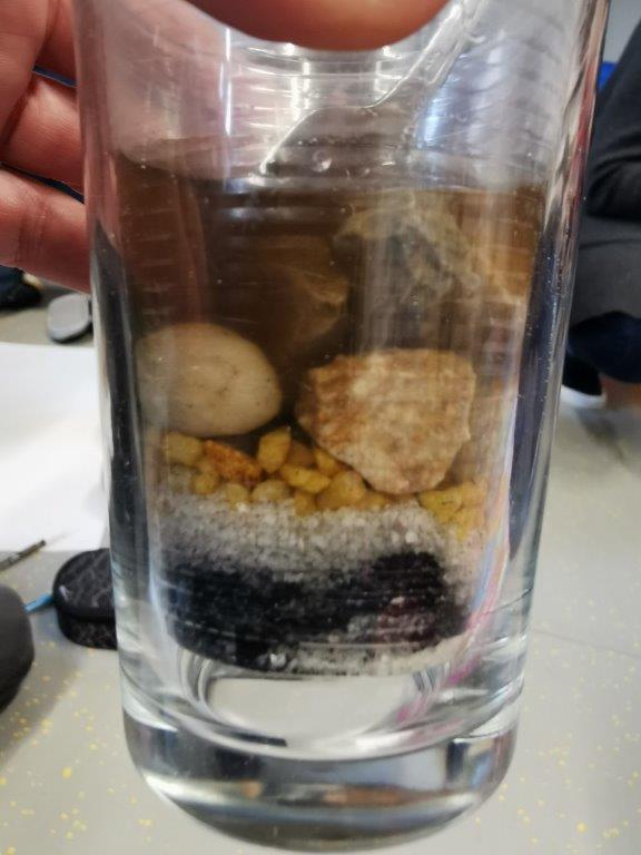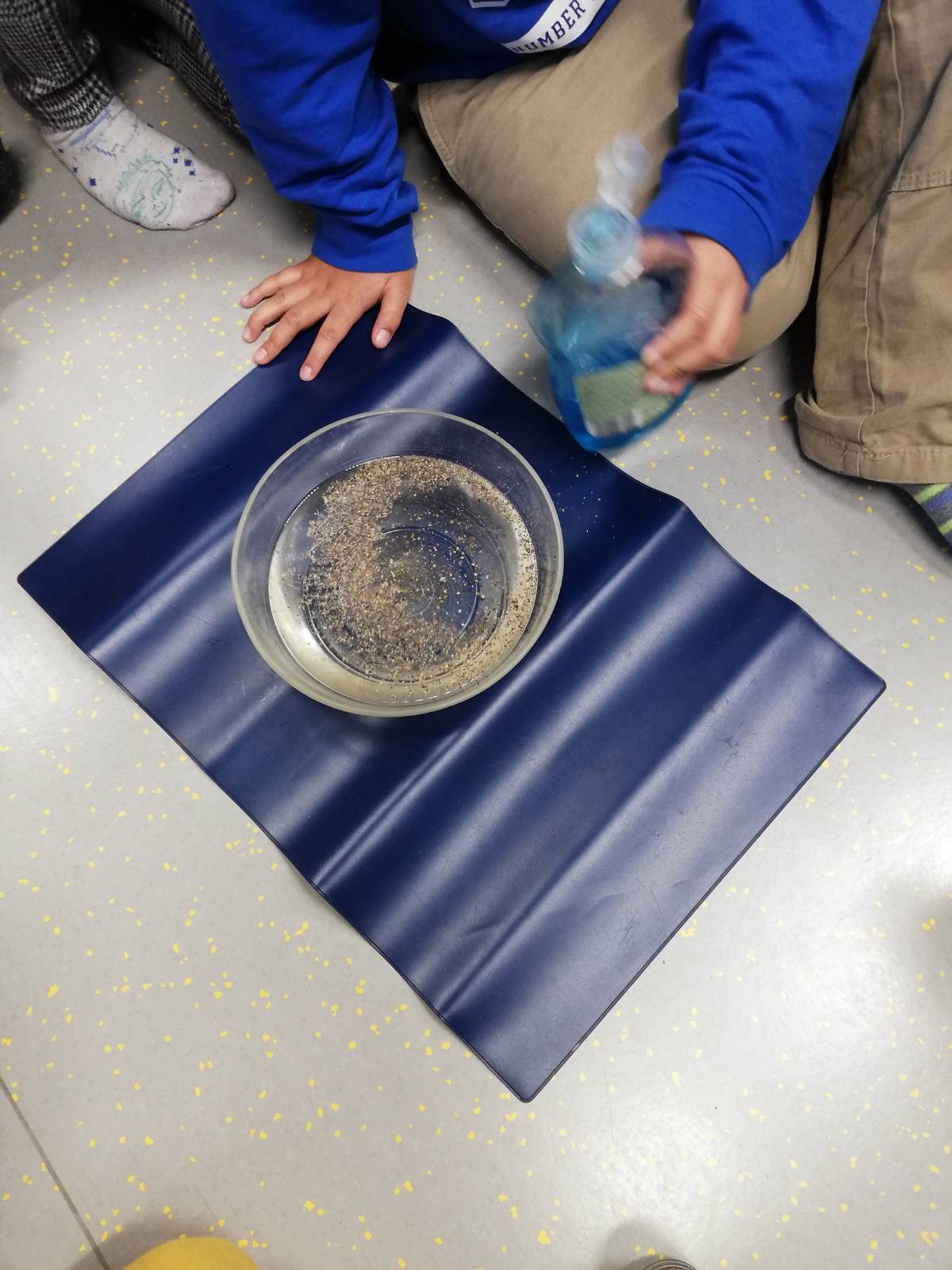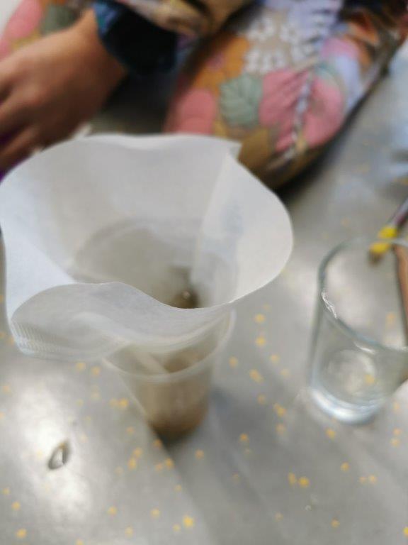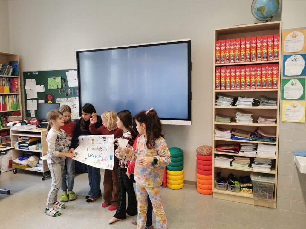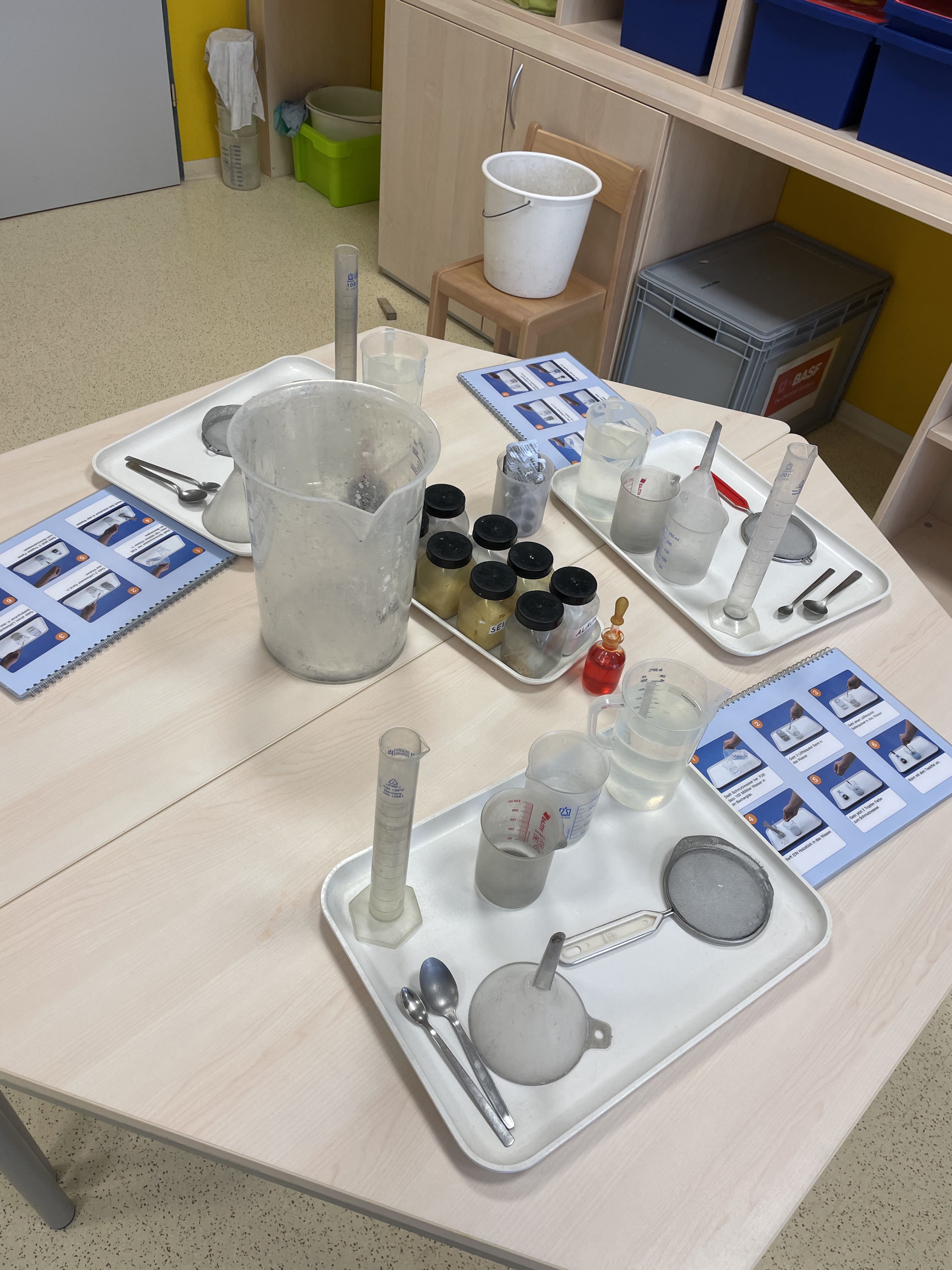 Die Kinder bekamen Materialien zur Verfügung gestellt und mussten mithilfe dieser versuchen, aus schmutzigem Wasser wieder saubereres Wasser zu. erhalten. Mit viel Ehrgeiz stürzten sich die Kinder in ihre Aufgaben hinein und hatten viel Spaß beim Entdecken und Erforschen der verschiedenen Möglichkeiten. Zum Abschluss wurden alle Schritte und Ergebnisse auf einem Plakat festgehalten und den anderen präsentiert.