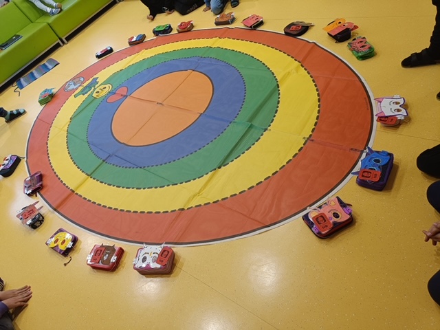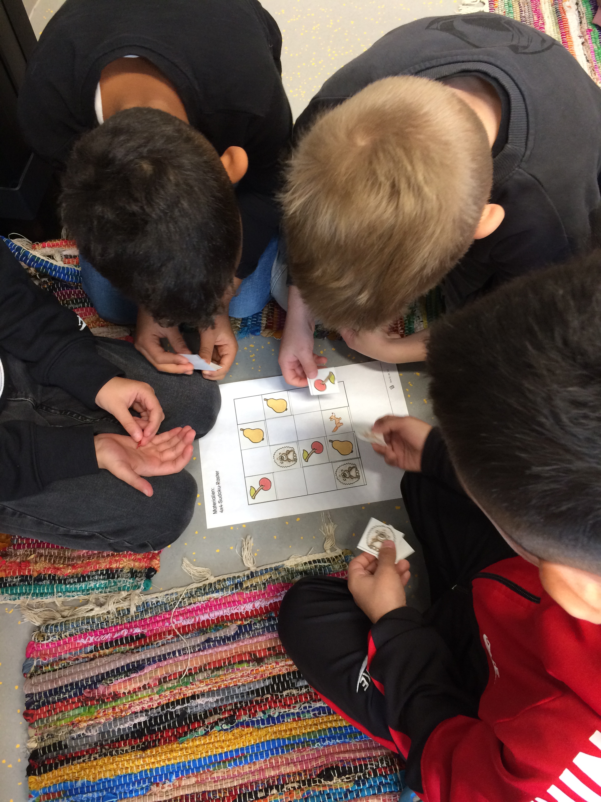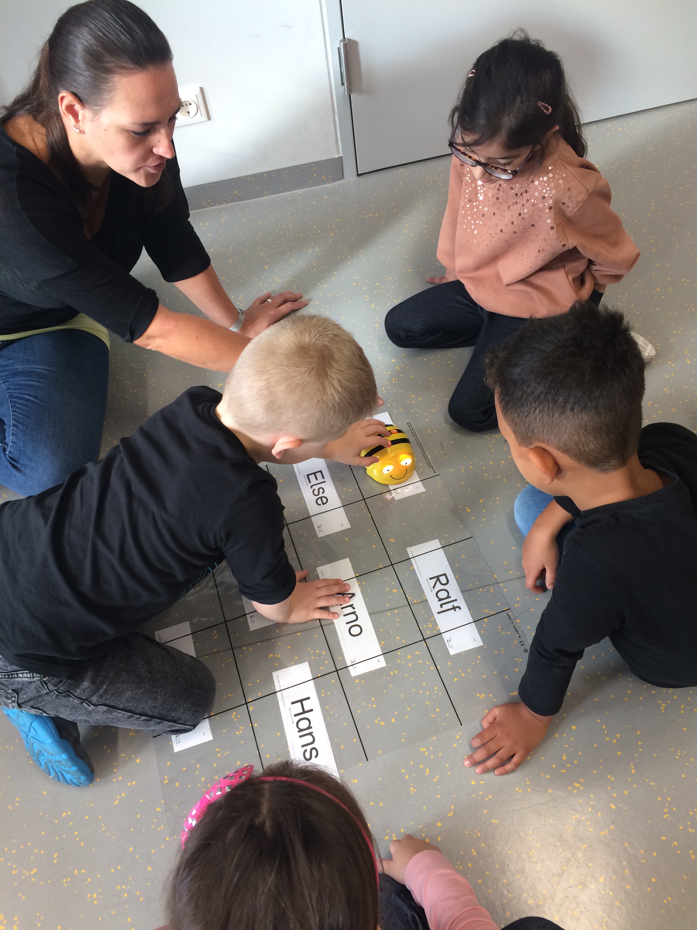 Wir verbinden große und kleine Silben und schicken unsere „Zauberbiene“ auf die Reise von einem Wort zum anderen. Ob sie das wohl schafft? Wir haben auf jeden Fall die Bee Bot richtig programmiert.
