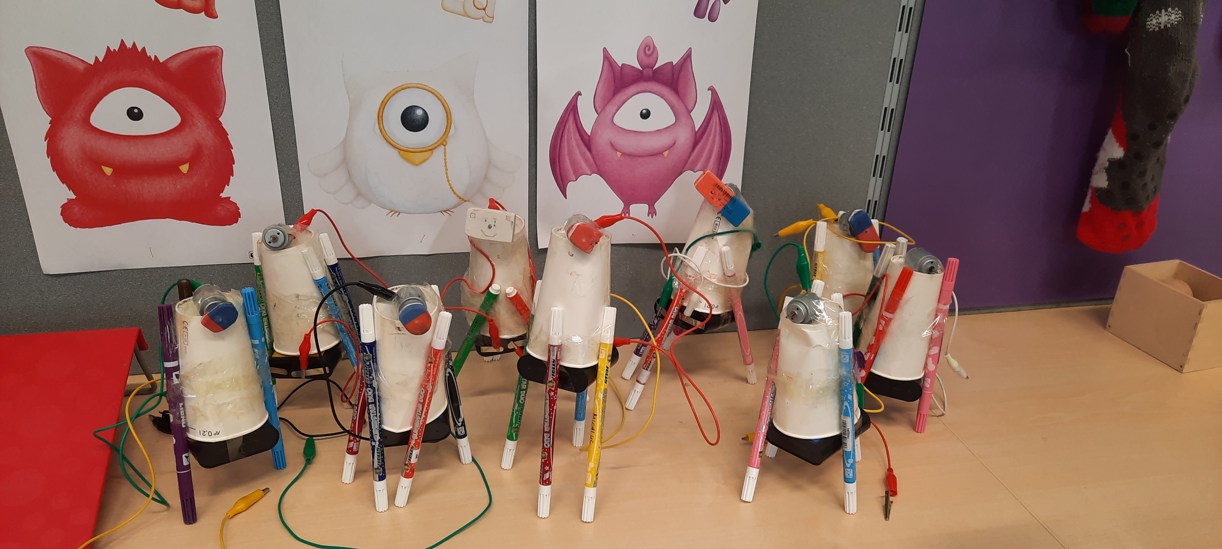 In dieser Woche beschäftigen wir uns intensiv mit Robotik. Nachdem wir bereits eine spannende Zeitreise in die Geschichte der Roboter gemacht haben, haben wir heute unsere eigenen Roboter gebaut. Durch den Motor und die große Batterie, hat er sich sogar bewegt.