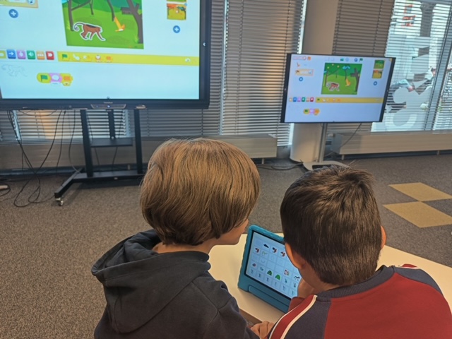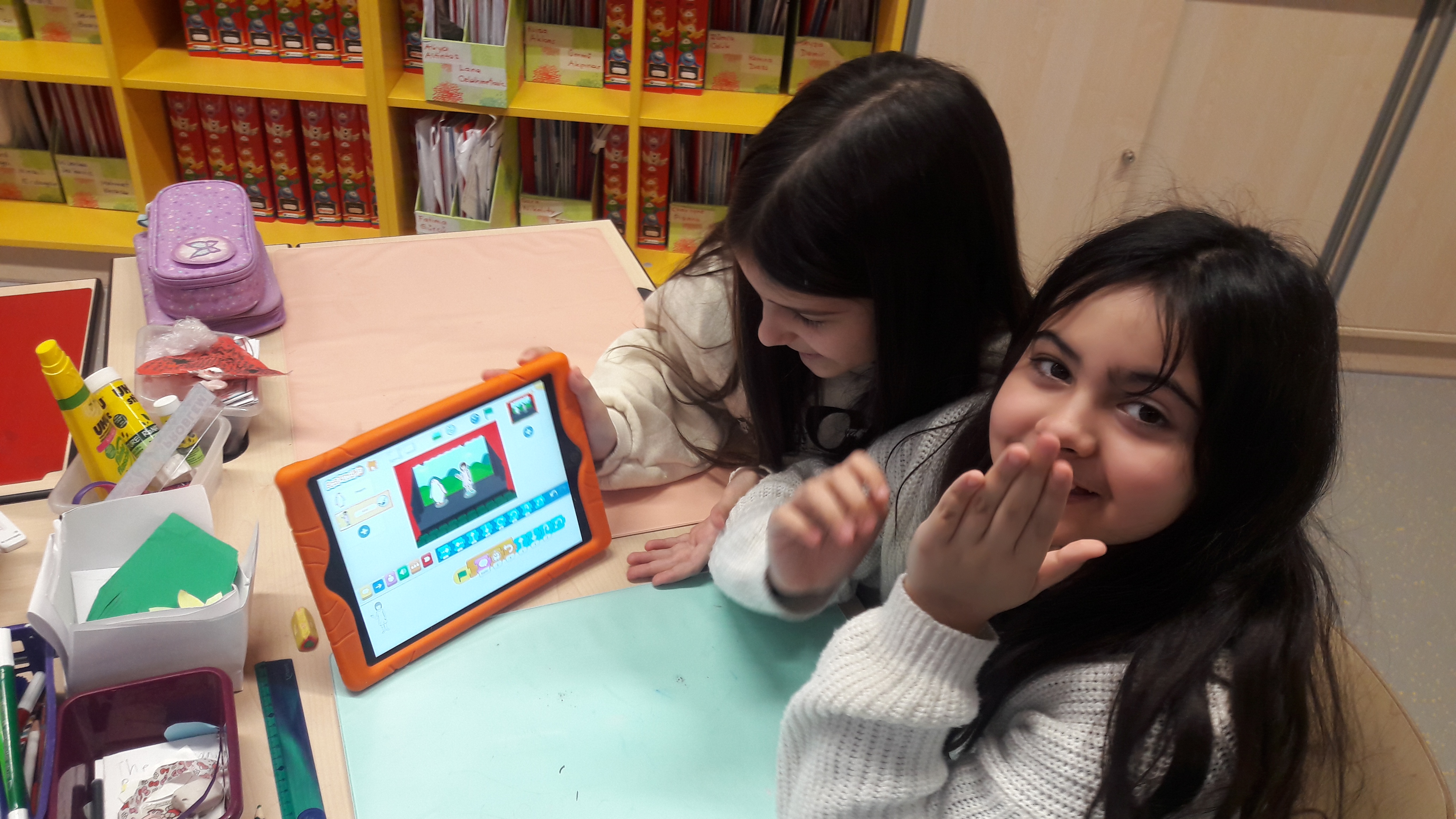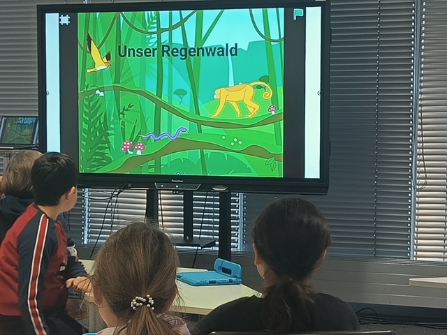 Heute durften wir selber kurze Geschichten erfinden und im Programm Scratch Junior programmieren. Wir haben über den Regenwald gelernt und warum er für Menschen und Tiere wichtig ist. Aber wir haben auch erfahren wie man Figuren sprechen lassen kann. Mit Audio-Aufnahme geht es allerdings wesentlich schneller als beim Schreiben – das haben wir ganz alleine herausgefunden!